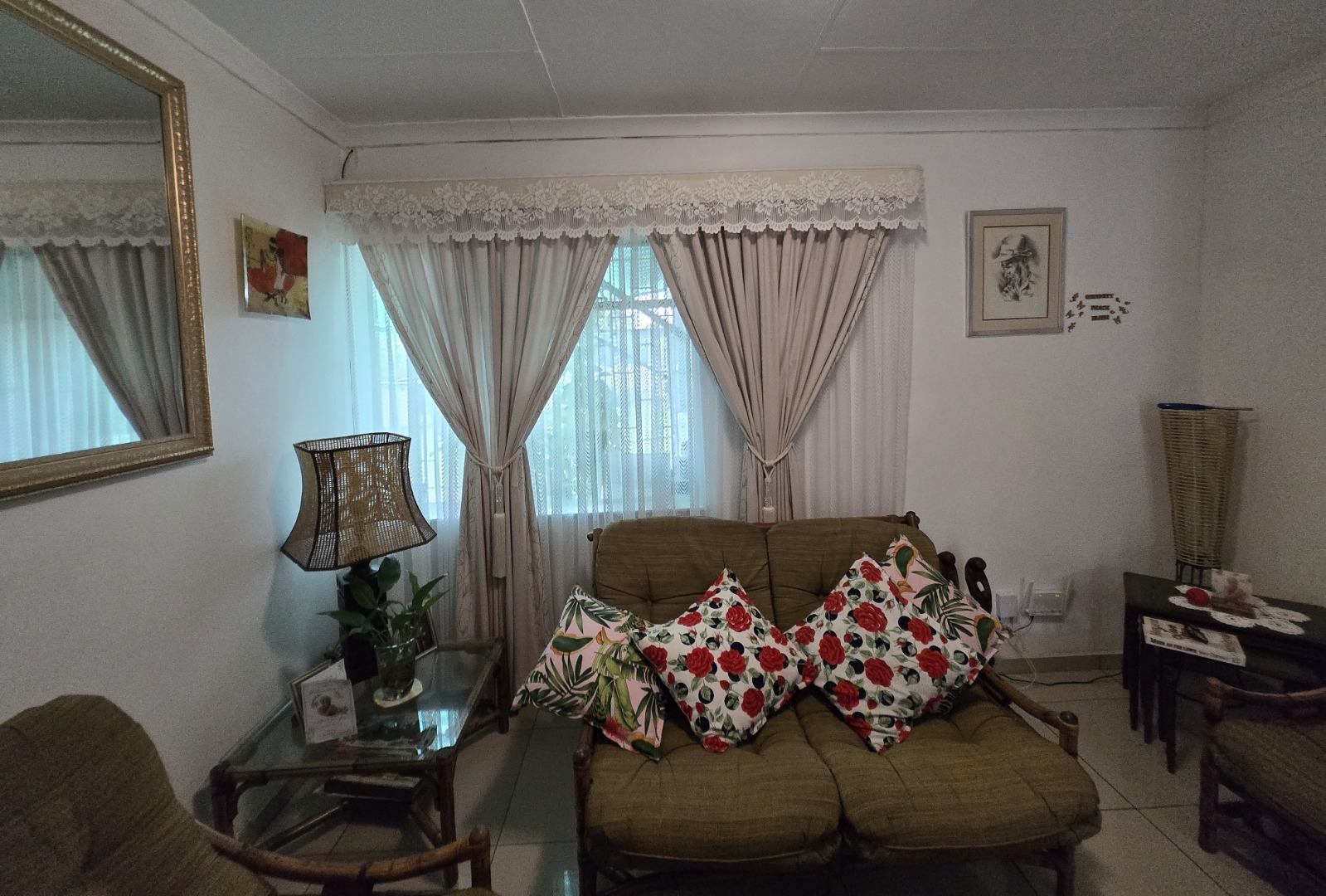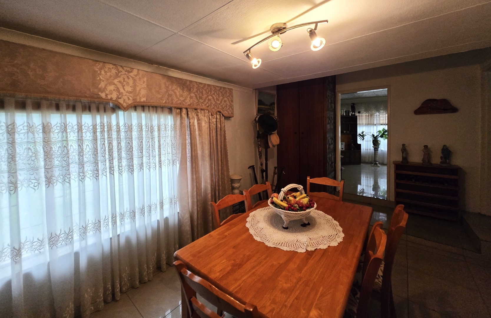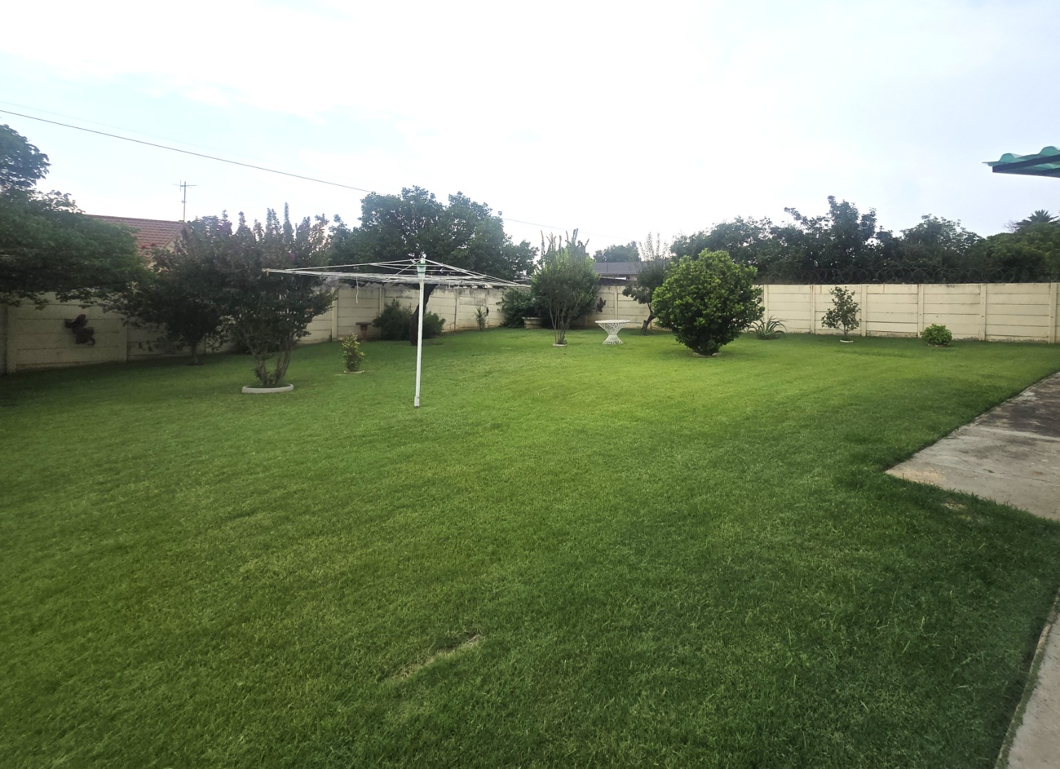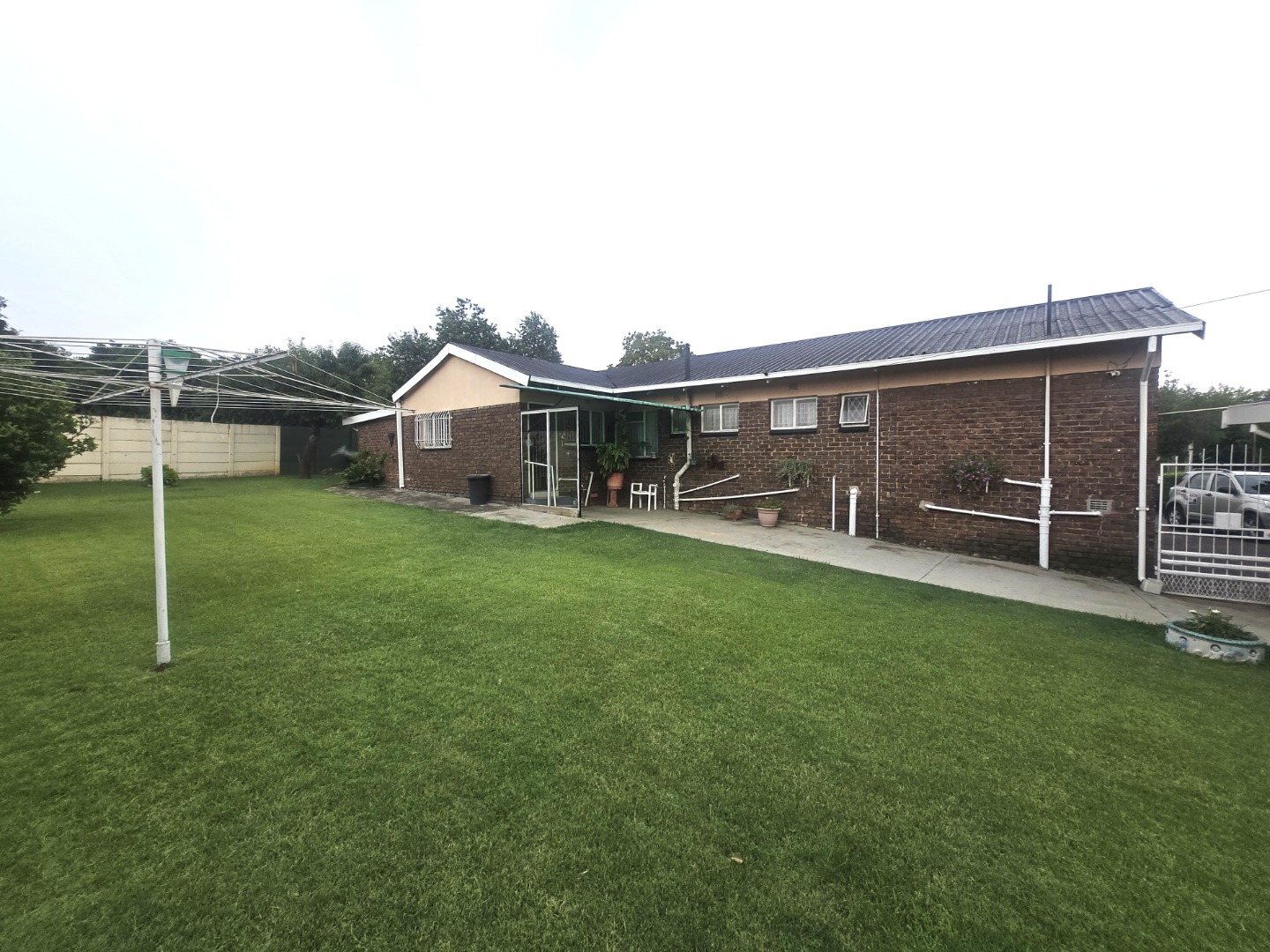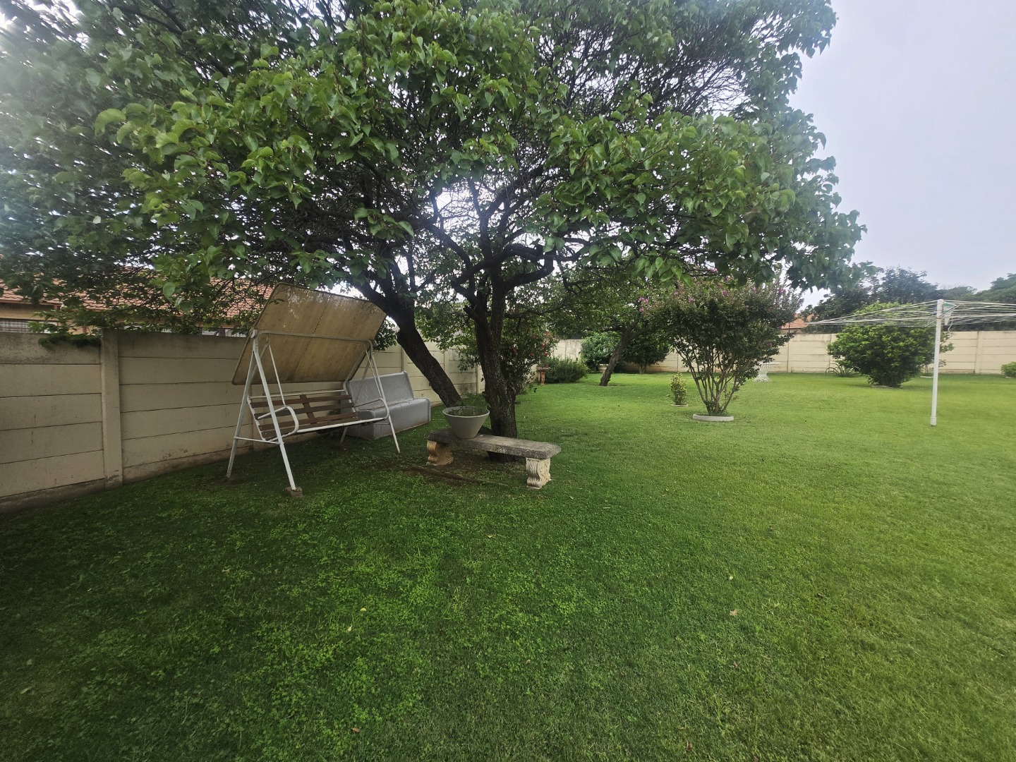 Outdoors, the generous erf size allows for a large, private garden with mature trees, perfect for relaxation and outdoor activities. Practical amenities include a double garage and additional parking space for four vehicles, ensuring ample secure parking for residents and guests. The property is situated in a suburban setting, offering a tranquil lifestyle.