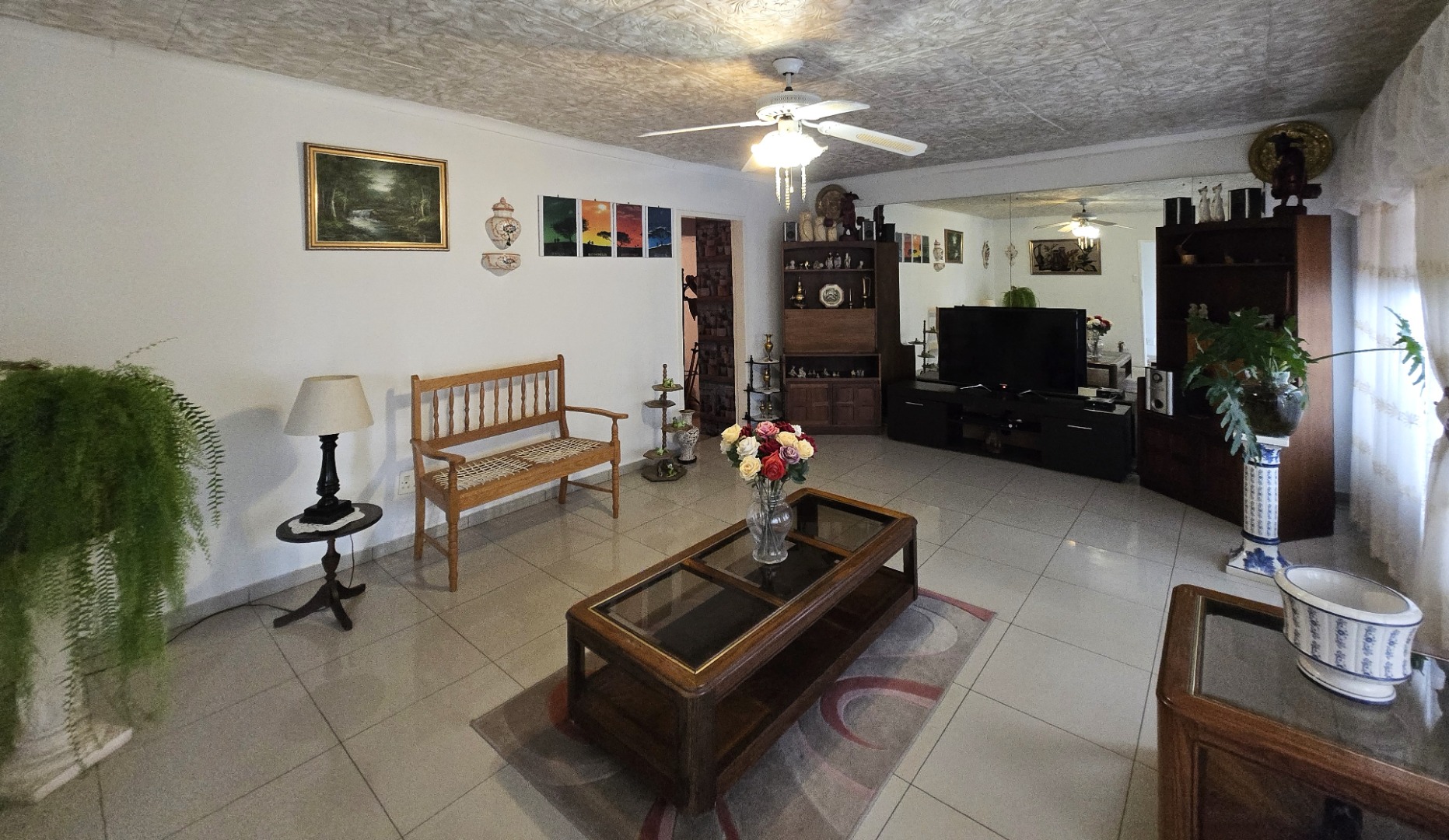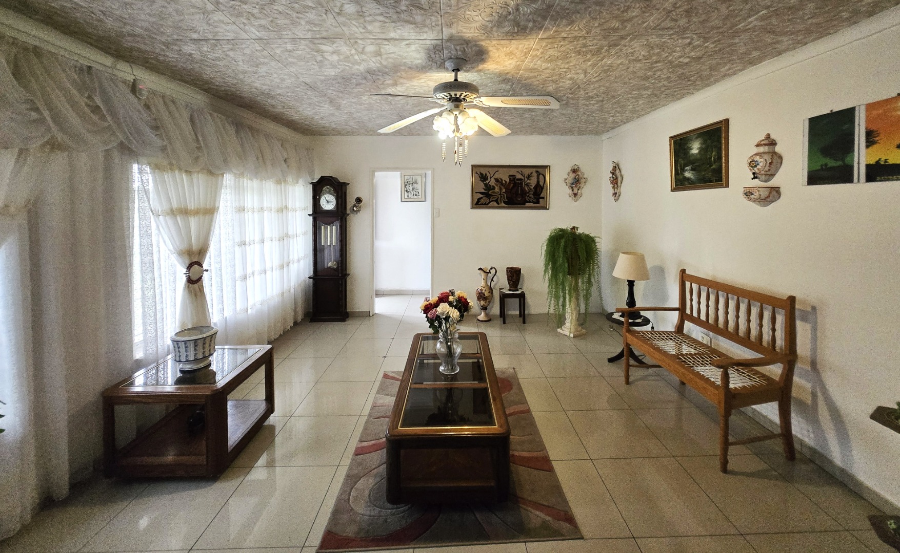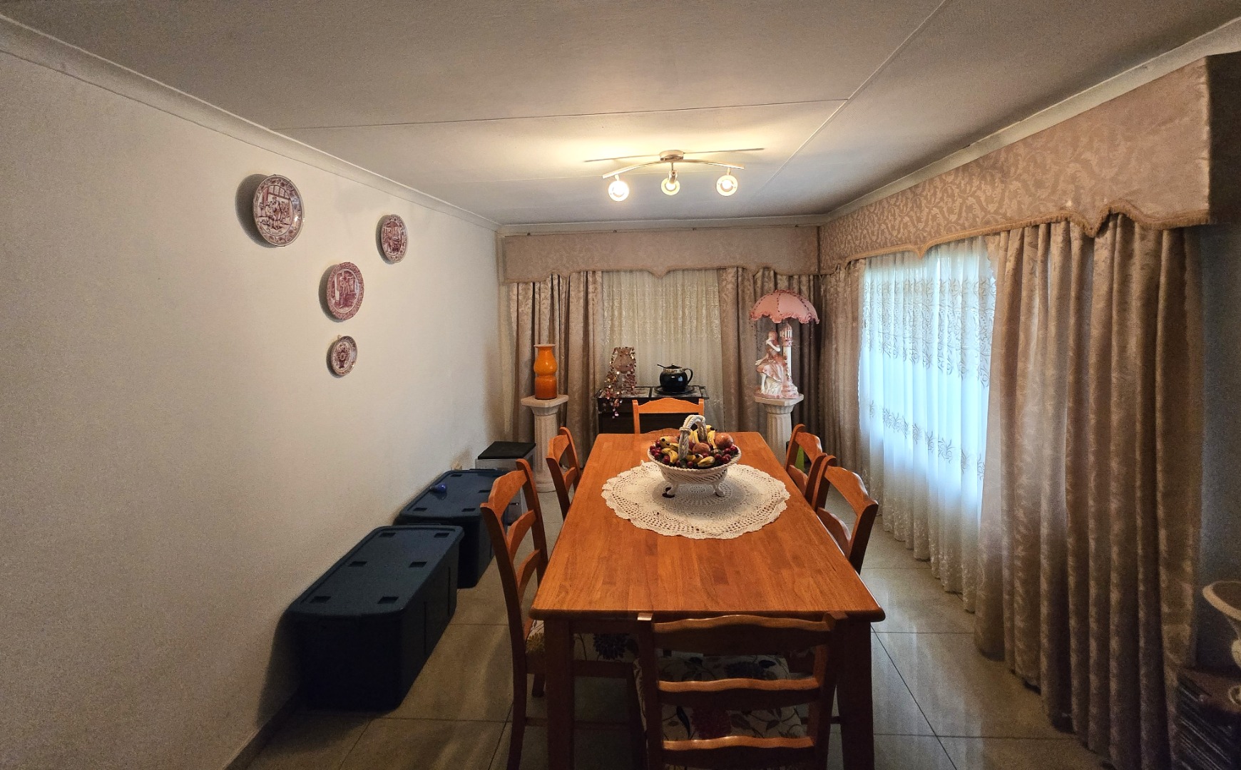 Step inside to discover a spacious dining room, bathed in natural light from a large window, offering an ideal setting for family gatherings. The functional kitchen boasts extensive storage with both upper and lower cabinets, durable tiled walls, and countertops, presenting a practical space ready for your personal touch. The layout includes one lounge and one dining area, ensuring distinct living zones.