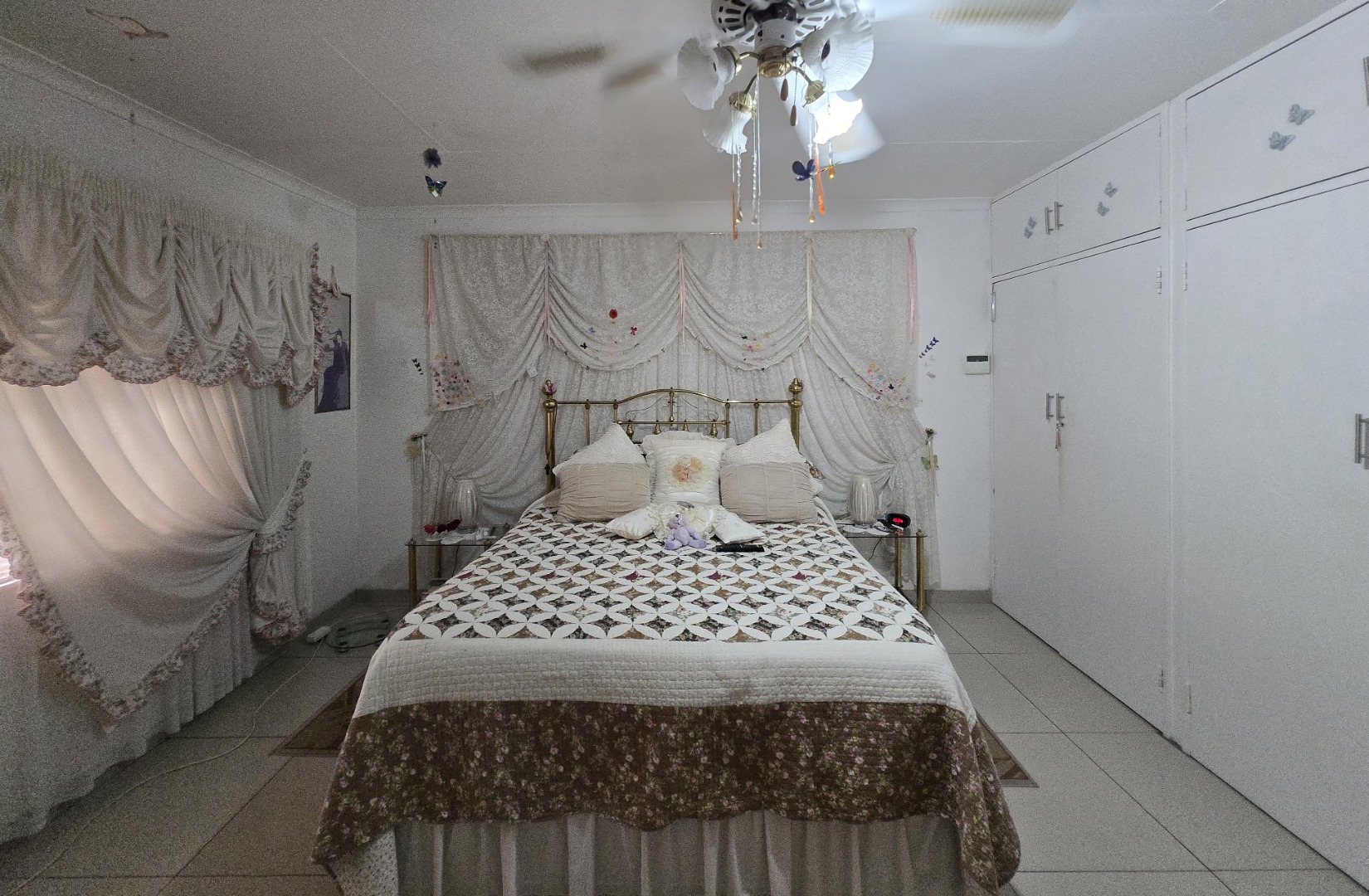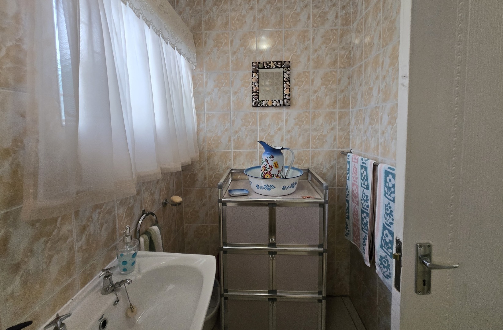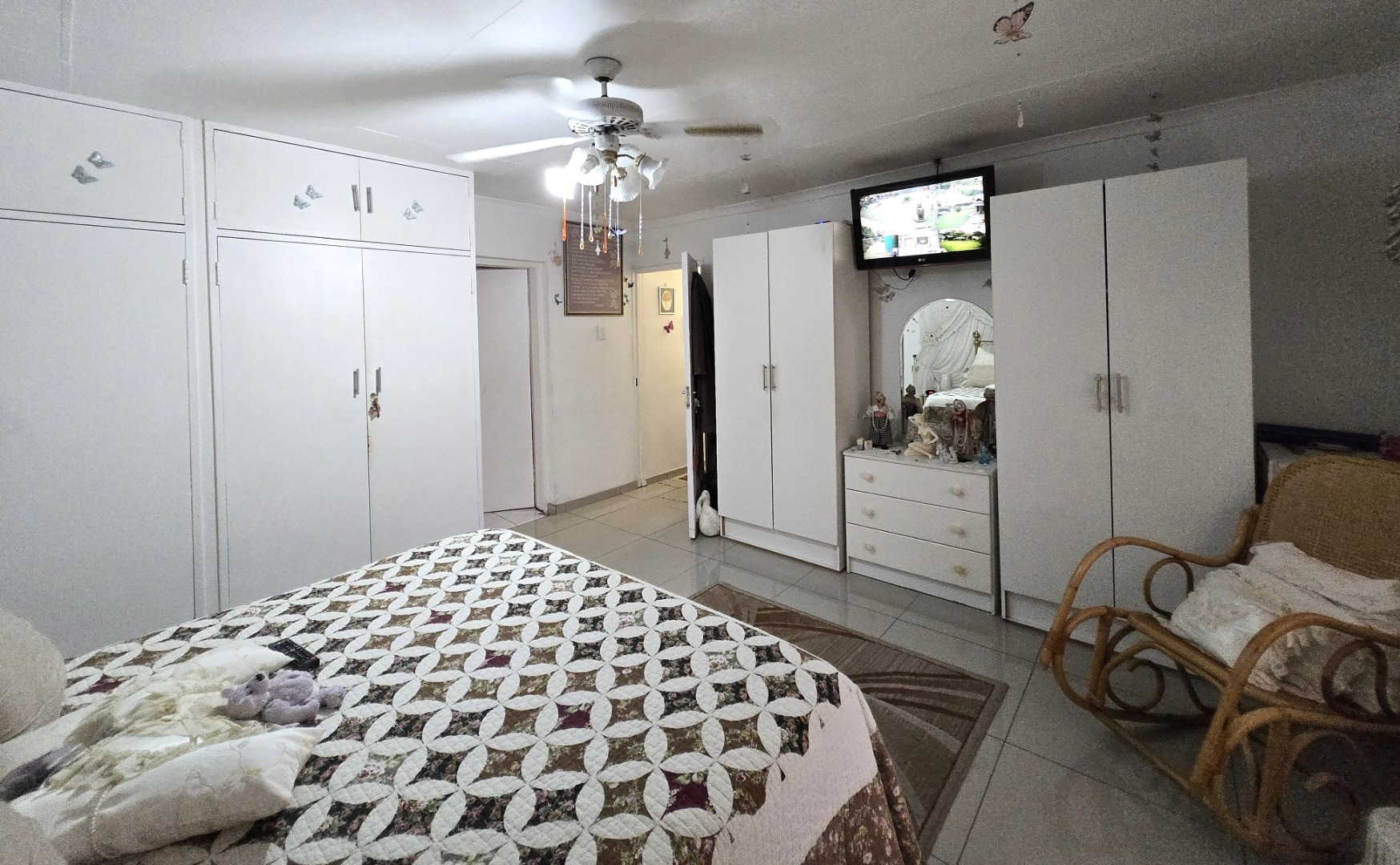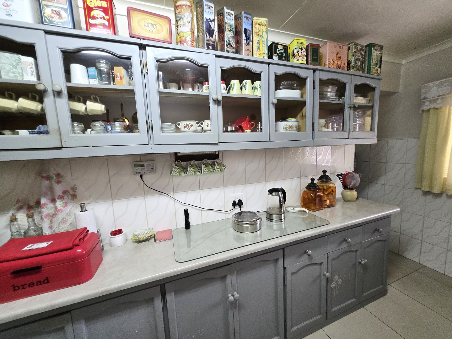 Step inside to discover a spacious dining room, bathed in natural light from a large window, offering an ideal setting for family gatherings. The functional kitchen boasts extensive storage with both upper and lower cabinets, durable tiled walls, and countertops, presenting a practical space ready for your personal touch. The layout includes one lounge and one dining area, ensuring distinct living zones.