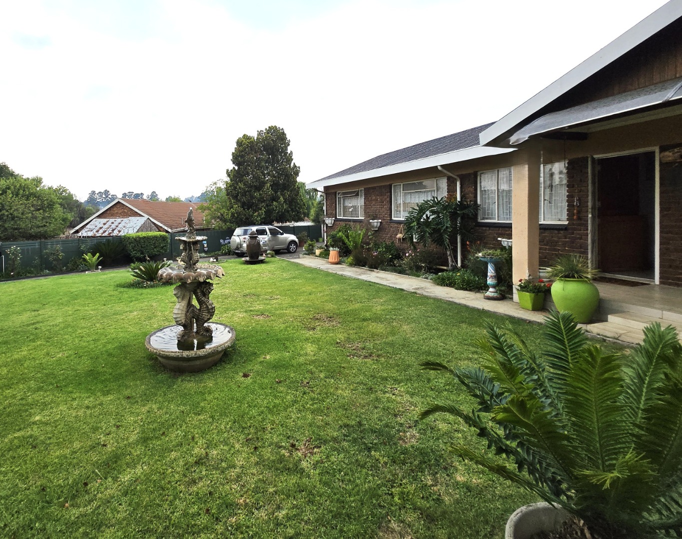 This beutiful residential property in Rensburg, Heidelberg, offers a welcoming facade with a well-maintained front lawn and an ornate water fountain, creating an inviting first impression. The neat brick exterior is complemented by an established garden and visible security features, including window bars, providing peace of mind. With an erf size of 1190 sqm and a floor size of 242 sqm, this home provides ample space for comfortable living.