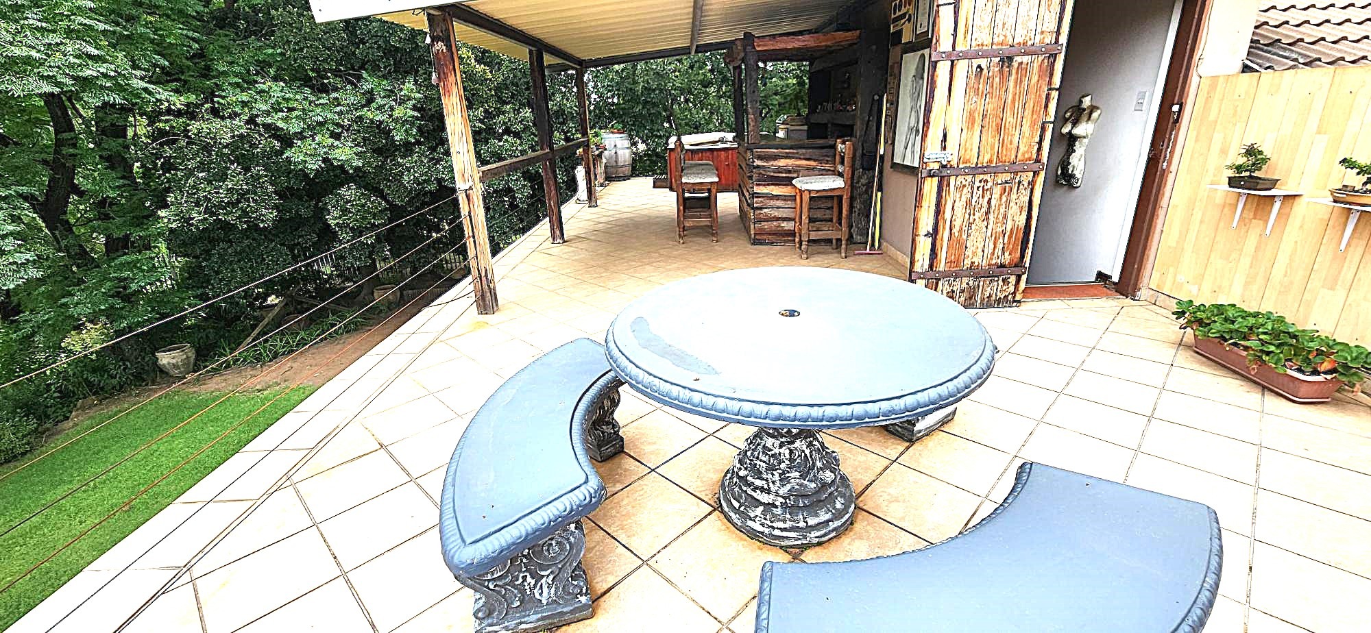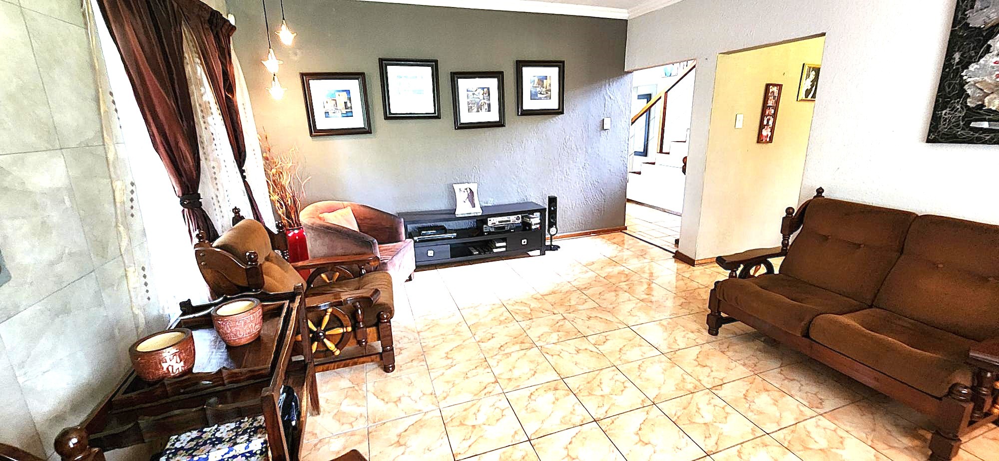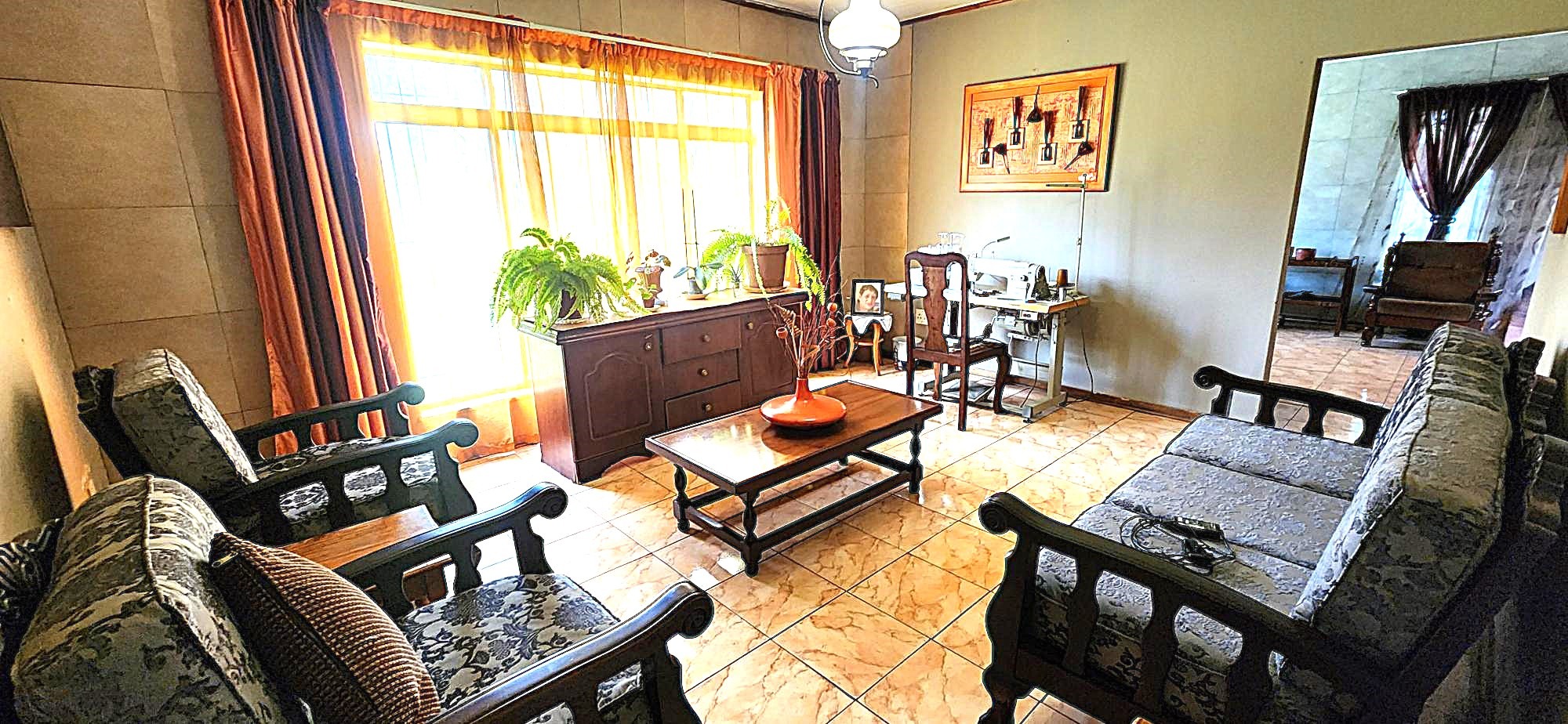 Discover this charming 3-bedroom, 1.5-bathroom family home nestled in the suburban and country living environment of Rensburg, Heidelberg. The property immediately impresses with its warm-toned exterior, two secure roller door garages, and a paved driveway . A lush, well-maintained garden, featuring mature cycads and vibrant greenery, enhances its kerb appeal, complemented by an inviting upper-level patio forming an entertainment area with built in braai, bar and jacuzzi, perfect for social gatherings