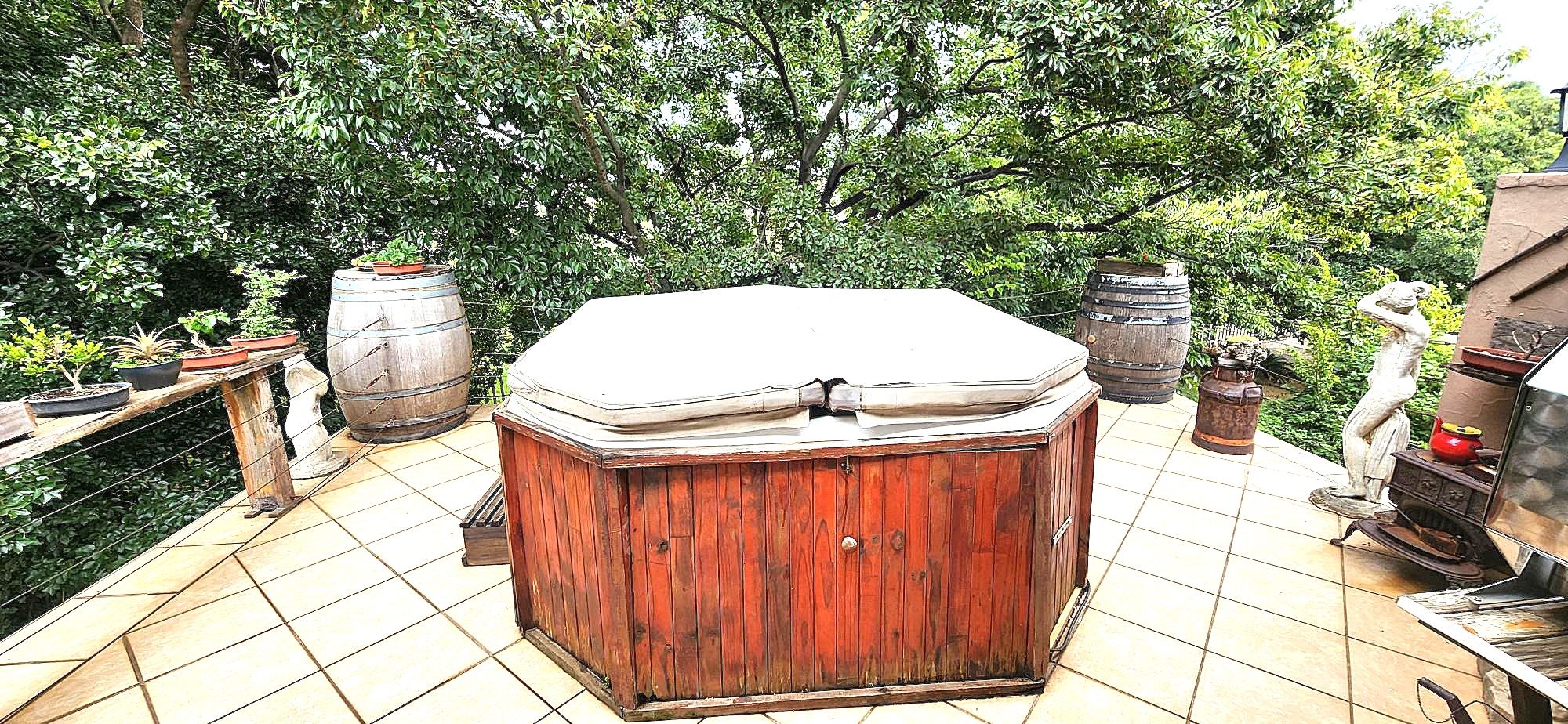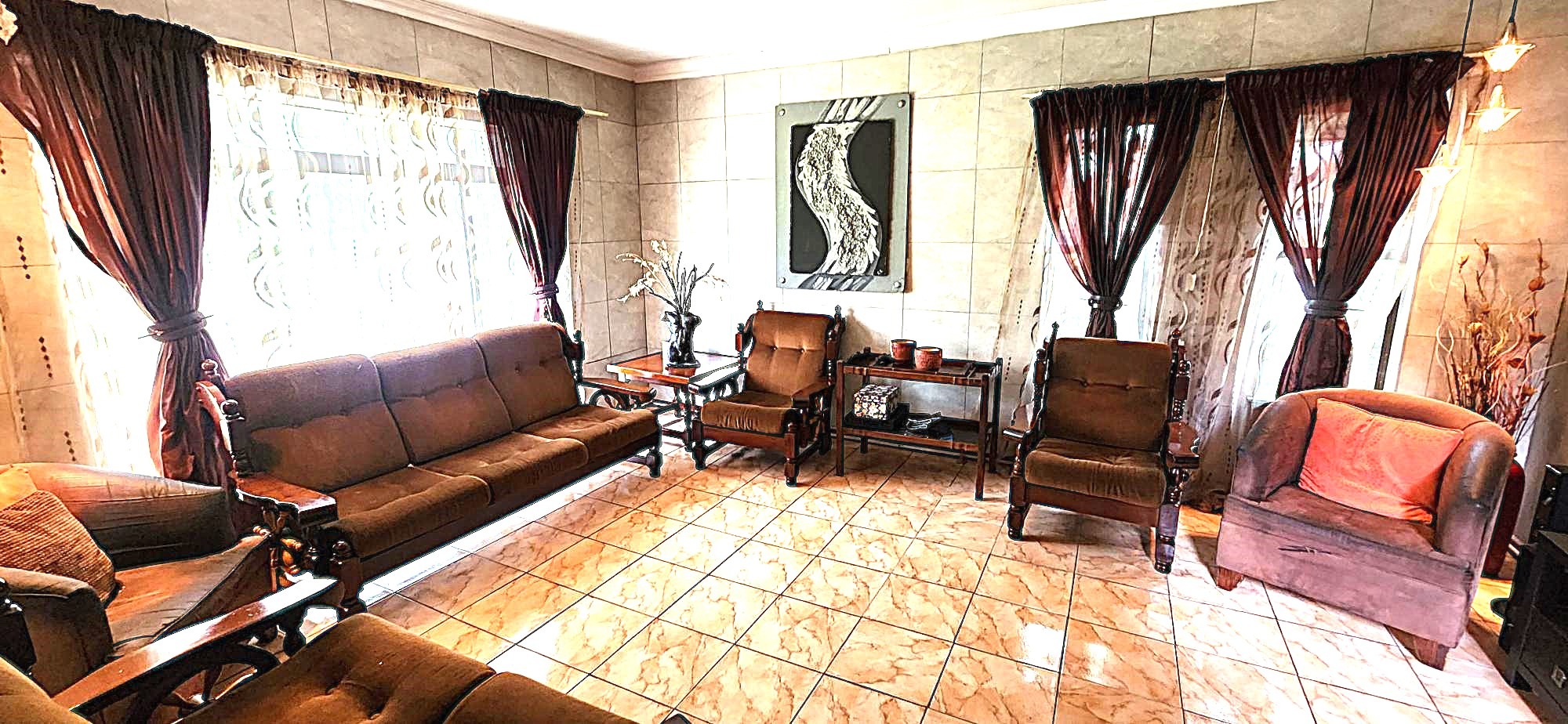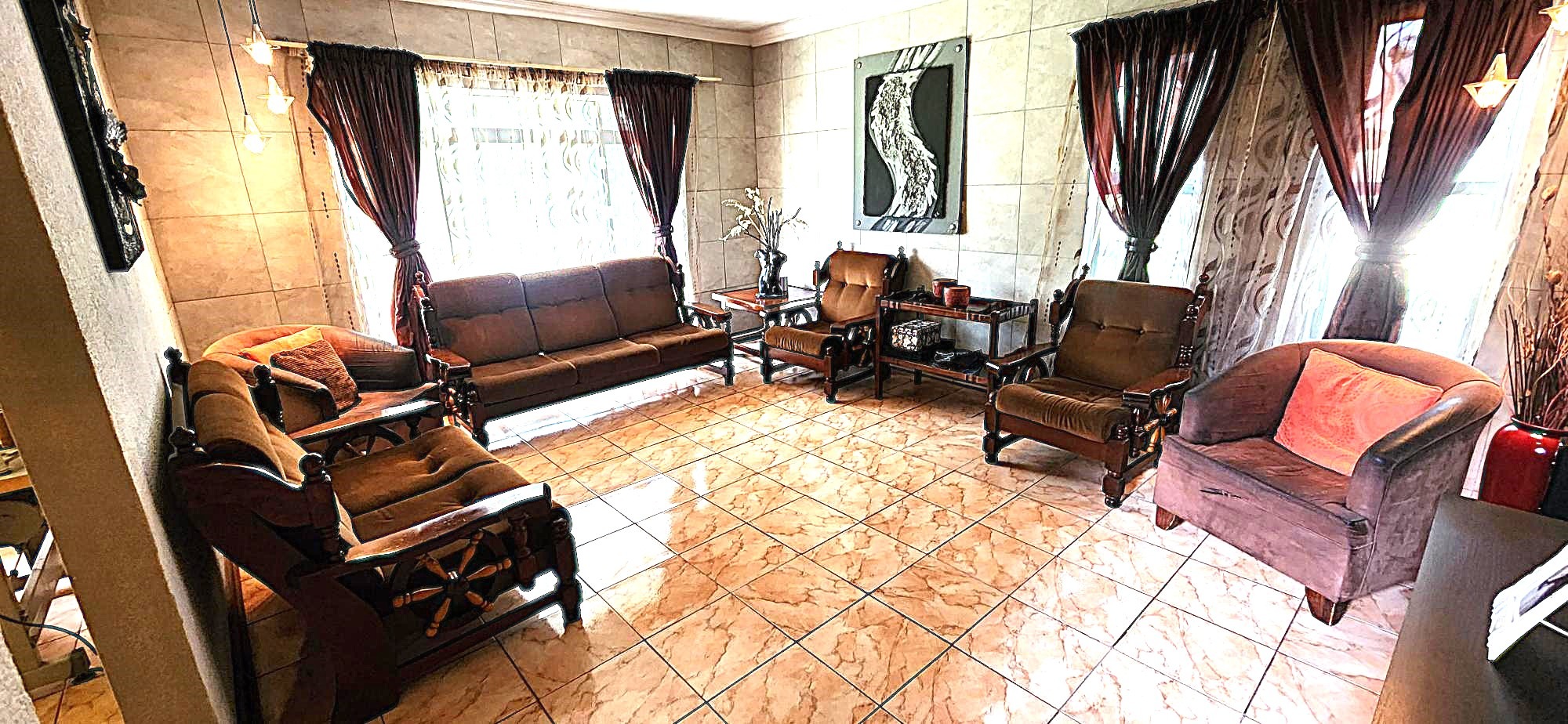 Discover this charming 3-bedroom, 1.5-bathroom family home nestled in the suburban and country living environment of Rensburg, Heidelberg. The property immediately impresses with its warm-toned exterior, two secure roller door garages, and a paved driveway . A lush, well-maintained garden, featuring mature cycads and vibrant greenery, enhances its kerb appeal, complemented by an inviting upper-level patio forming an entertainment area with built in braai, bar and jacuzzi, perfect for social gatherings