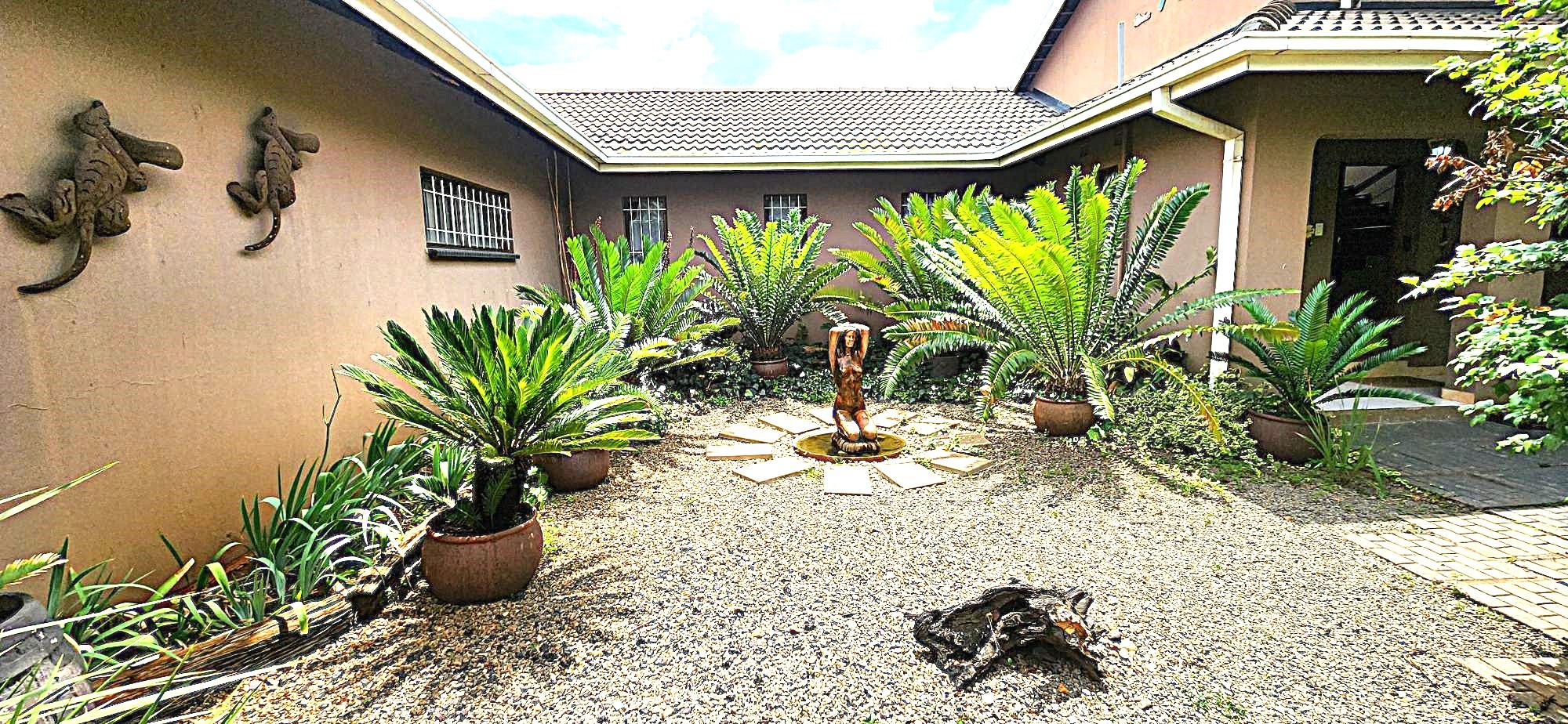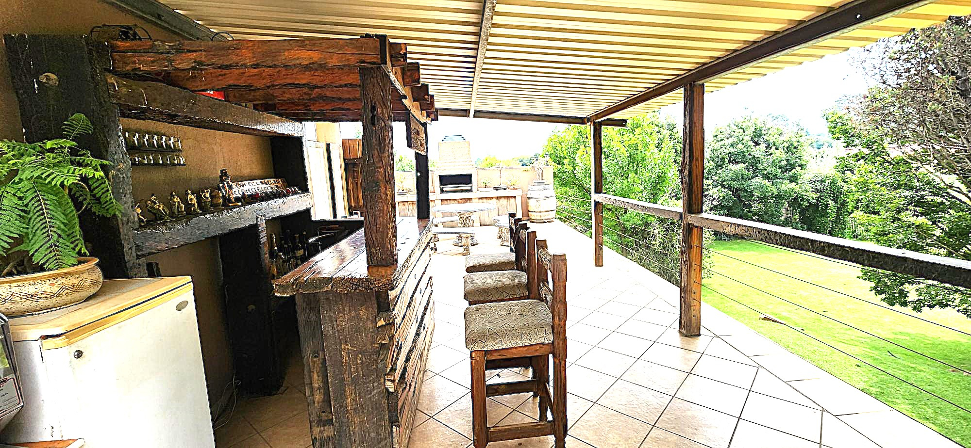 Discover this charming 3-bedroom, 1.5-bathroom family home nestled in the suburban and country living environment of Rensburg, Heidelberg. The property immediately impresses with its warm-toned exterior, two secure roller door garages, and a paved driveway . A lush, well-maintained garden, featuring mature cycads and vibrant greenery, enhances its kerb appeal, complemented by an inviting upper-level patio forming an entertainment area with built in braai, bar and jacuzzi, perfect for social gatherings