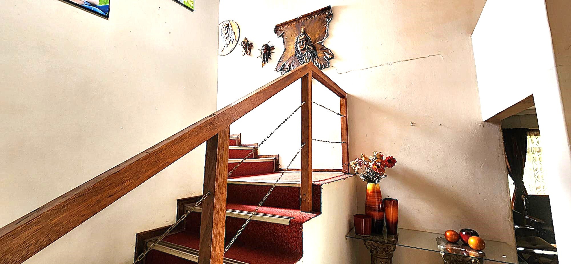 Inside, the residence offers a functional layout designed for comfortable living. It features two spacious lounges, including a dedicated family TV room, and a separate dining room, providing ample space for relaxation and entertaining. The kitchen, while functional, boasts cream-colored cabinetry, double sink, and a breakfast bar, dishwasher connection. . A convenient guest toilet.