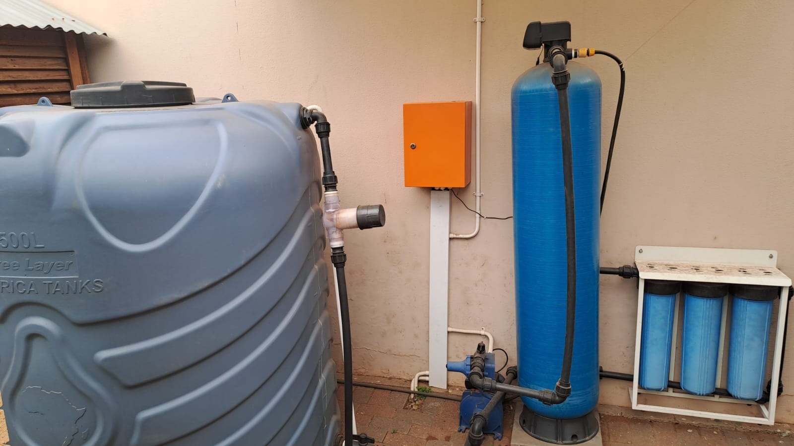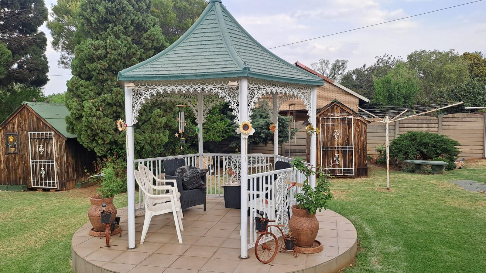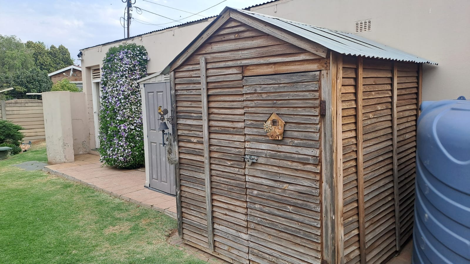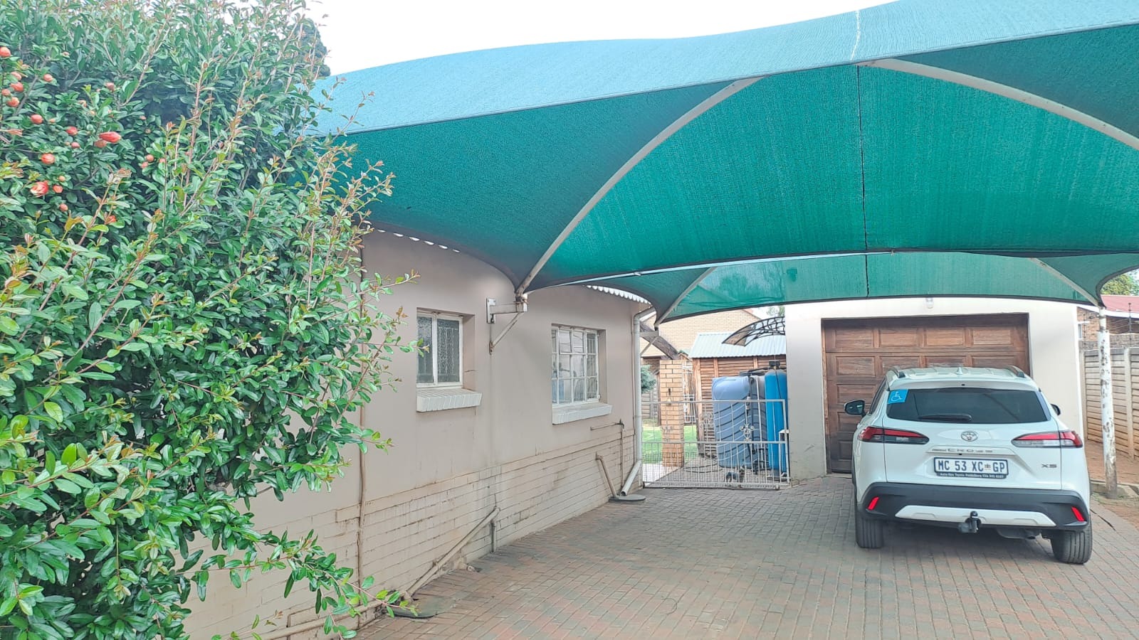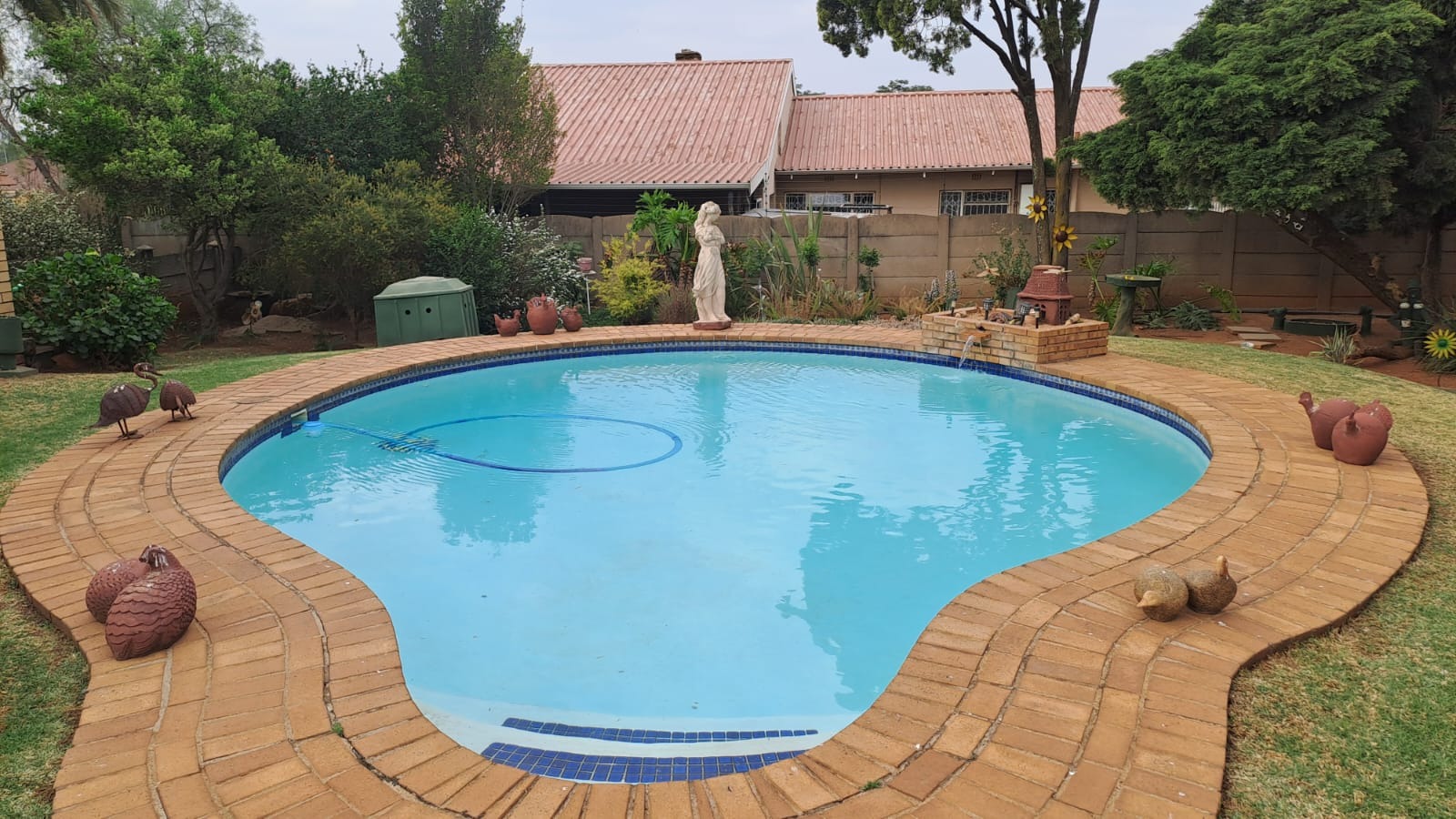 For convenience and sustainability, the home is fitted with a borehole, water tank, and solar panels with an inverter system supplying power to the house.
