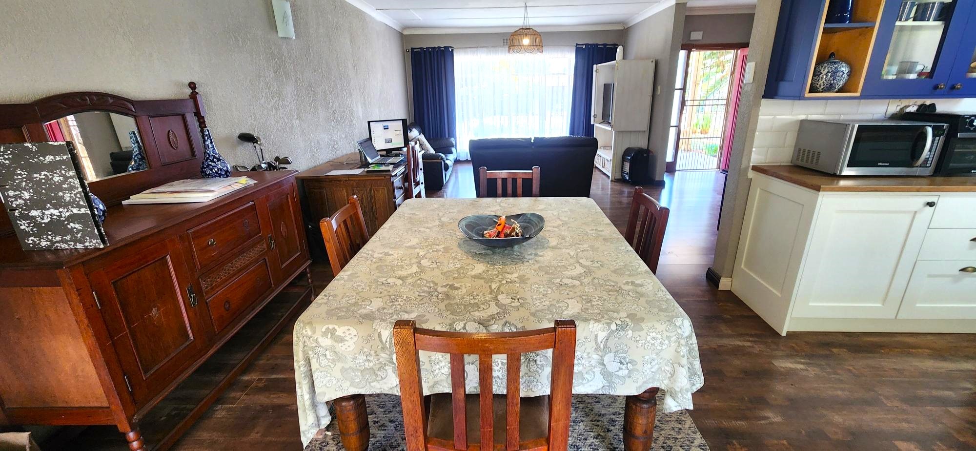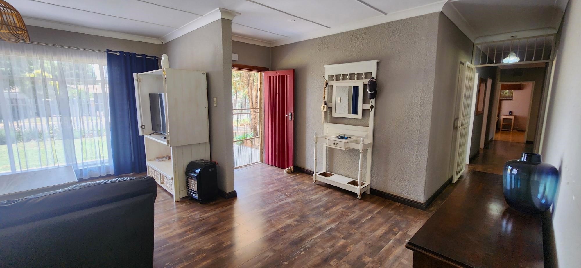 Outdoor living is a delight with a private swimming pool, a well-maintained garden, and paved areas perfect for relaxation or children's play. The property is pet-friendly and includes a lapa and built-in braai, ideal for hosting gatherings. Security is paramount with an alarm system, access gate, and a totally walled perimeter. Modern amenities include fibre connectivity and water tanks, contributing to a sustainable lifestyle.