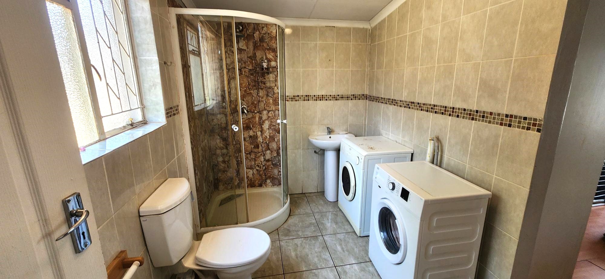 Accommodation includes four comfortable bedrooms and three bathrooms, with one being an en-suite. The fully tiled bathrooms feature showers and some cleverly incorporate laundry facilities, adding to the home's practicality. A guest toilet and an outside toilet further enhance convenience.