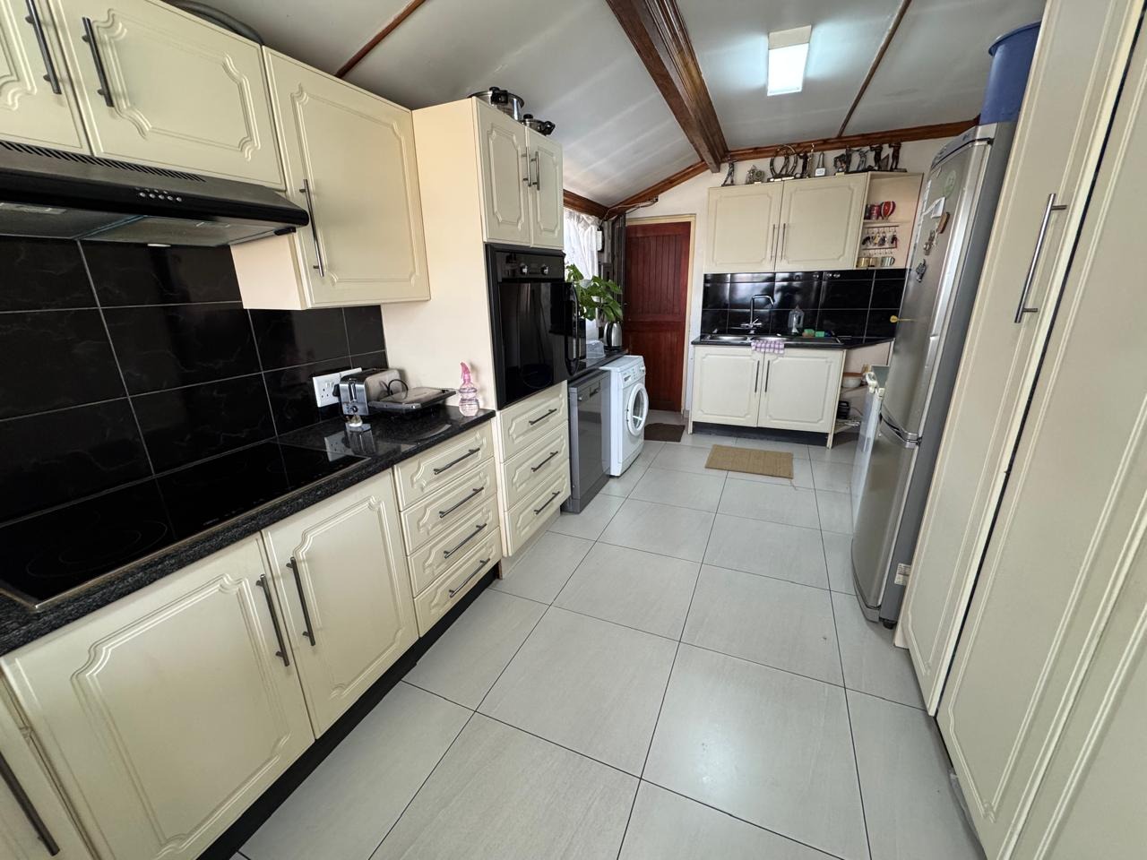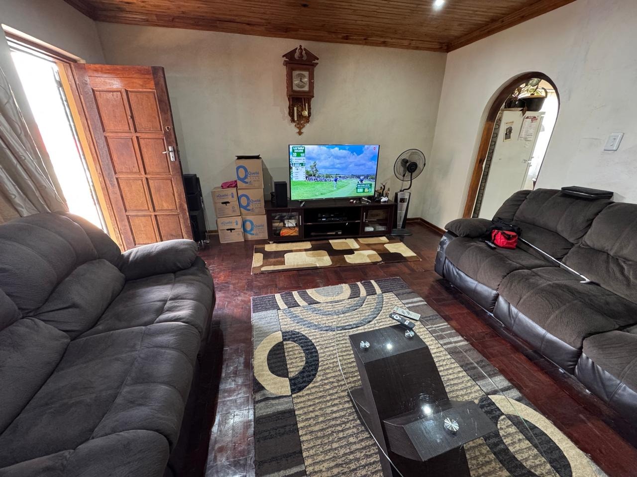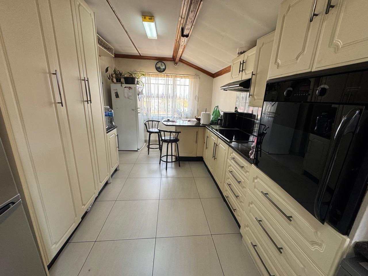 Externally, the property boasts excellent security with a totally walled perimeter, automated access gate, and burglar bars, ensuring peace of mind. Parking is ample, with a garage that can fit 3 cars and another carport area that is completely paved that can fit another 3 cars. Enjoy outdoor moments on the private patio, and benefit from convenient staff quarters with outside toilets, and a dedicated storage area.