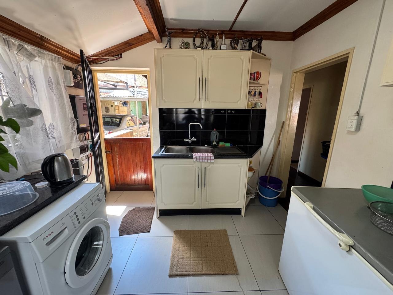 This home is equipped with modern conveniences including a lithium battery, inverter and solar panels, contributing to energy efficiency, and is fibre internet ready for seamless connectivity. Its location in Bosmont provides easy access to local amenities and transport links, making it a desirable choice for suburban living.