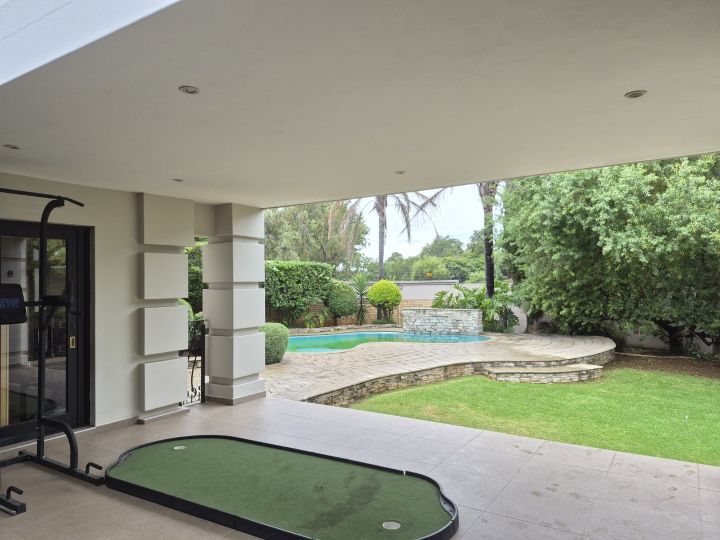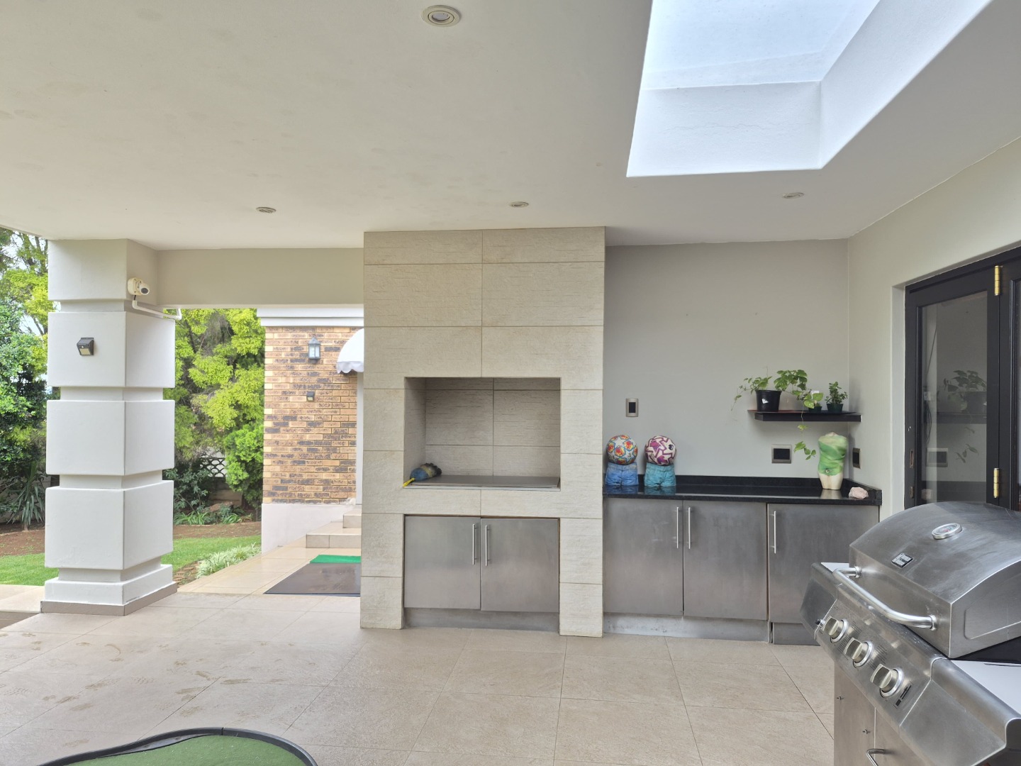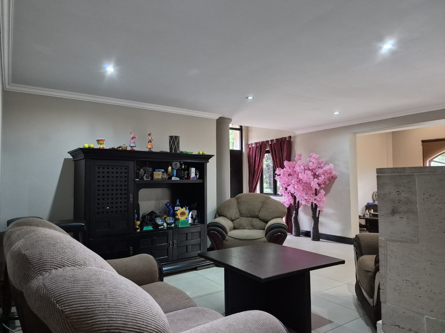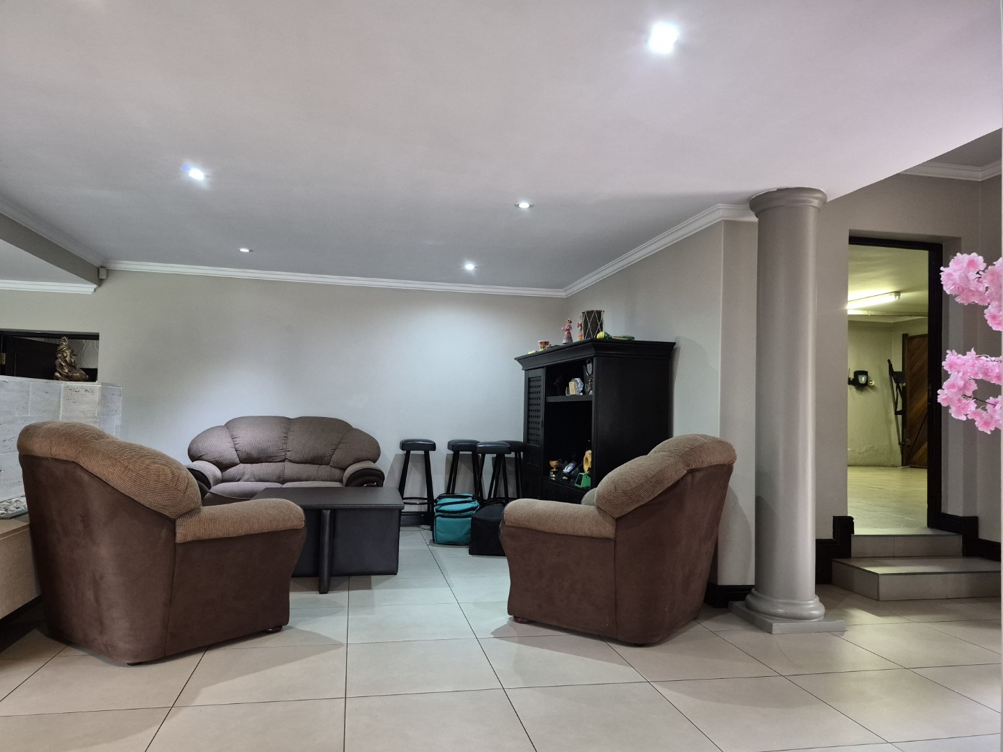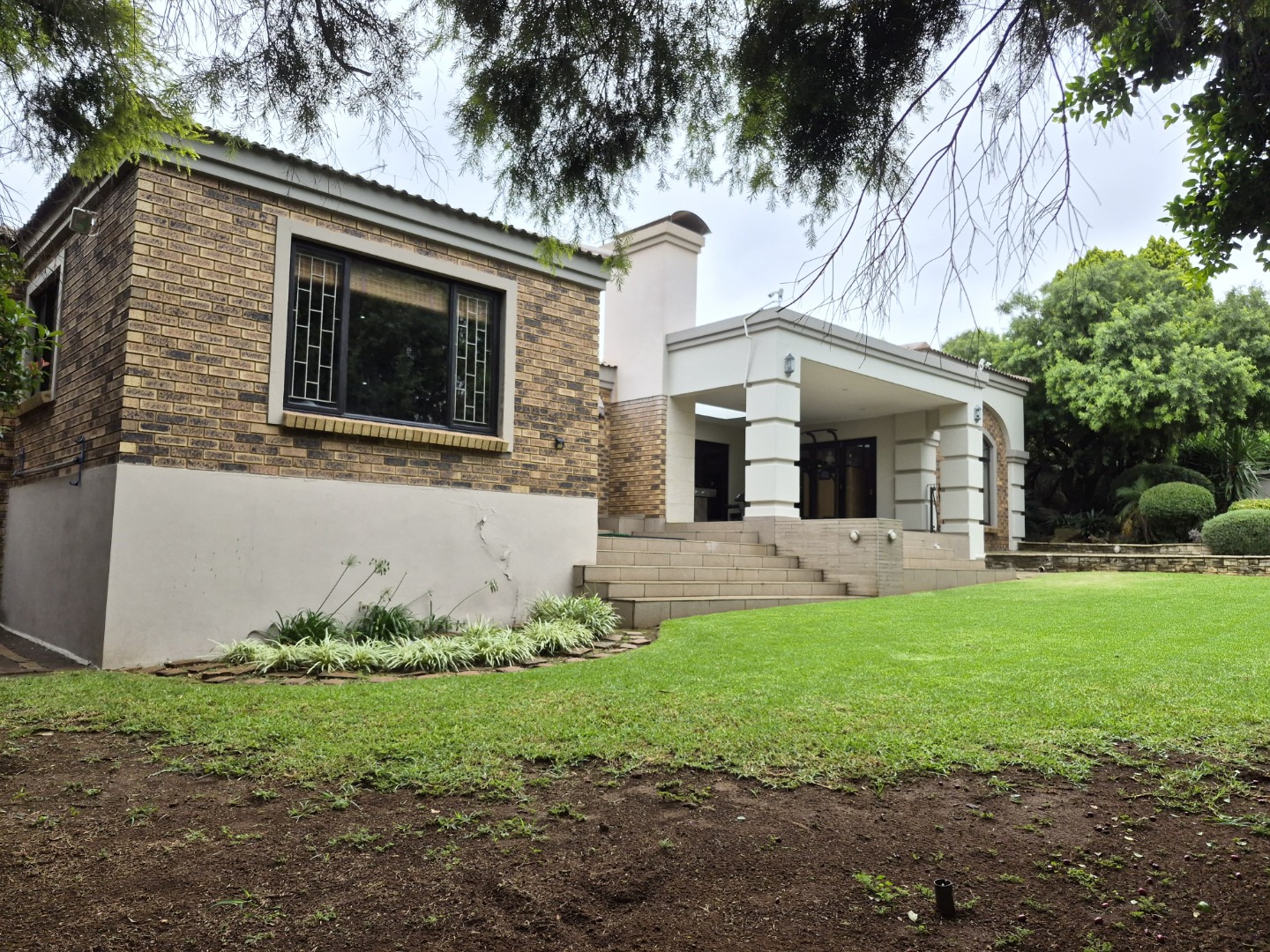 Nestled in the esteemed suburban enclave of Glenvista, Johannesburg, this magnificent residence presents an immediate impression of refined elegance. A meticulously maintained exterior, featuring a classic brick facade and tiled roof, is complemented by a grand architectural entrance with an arched, columned portico. The paved driveway leads to a spacious double garage, ensuring ample secure parking, while a distinctive, mature tree adds a touch of natural grandeur to the frontage. The property is totally walled, featuring an access gate and visible security measures, including perimeter wiring and burglar bars, ensuring peace of mind.