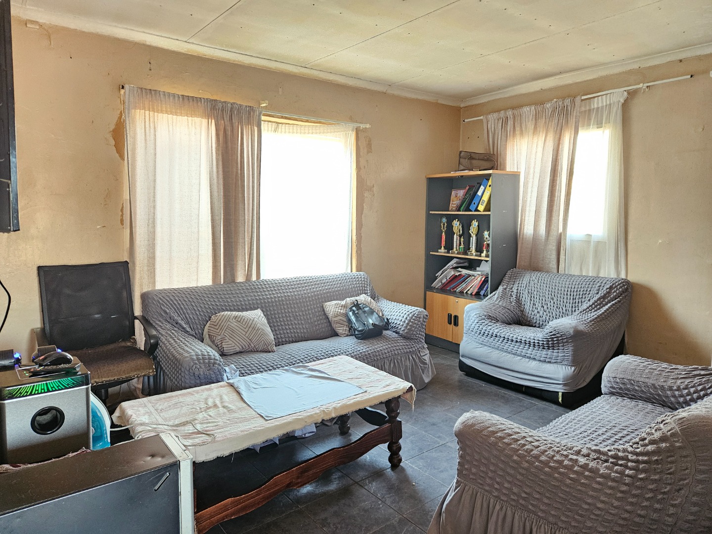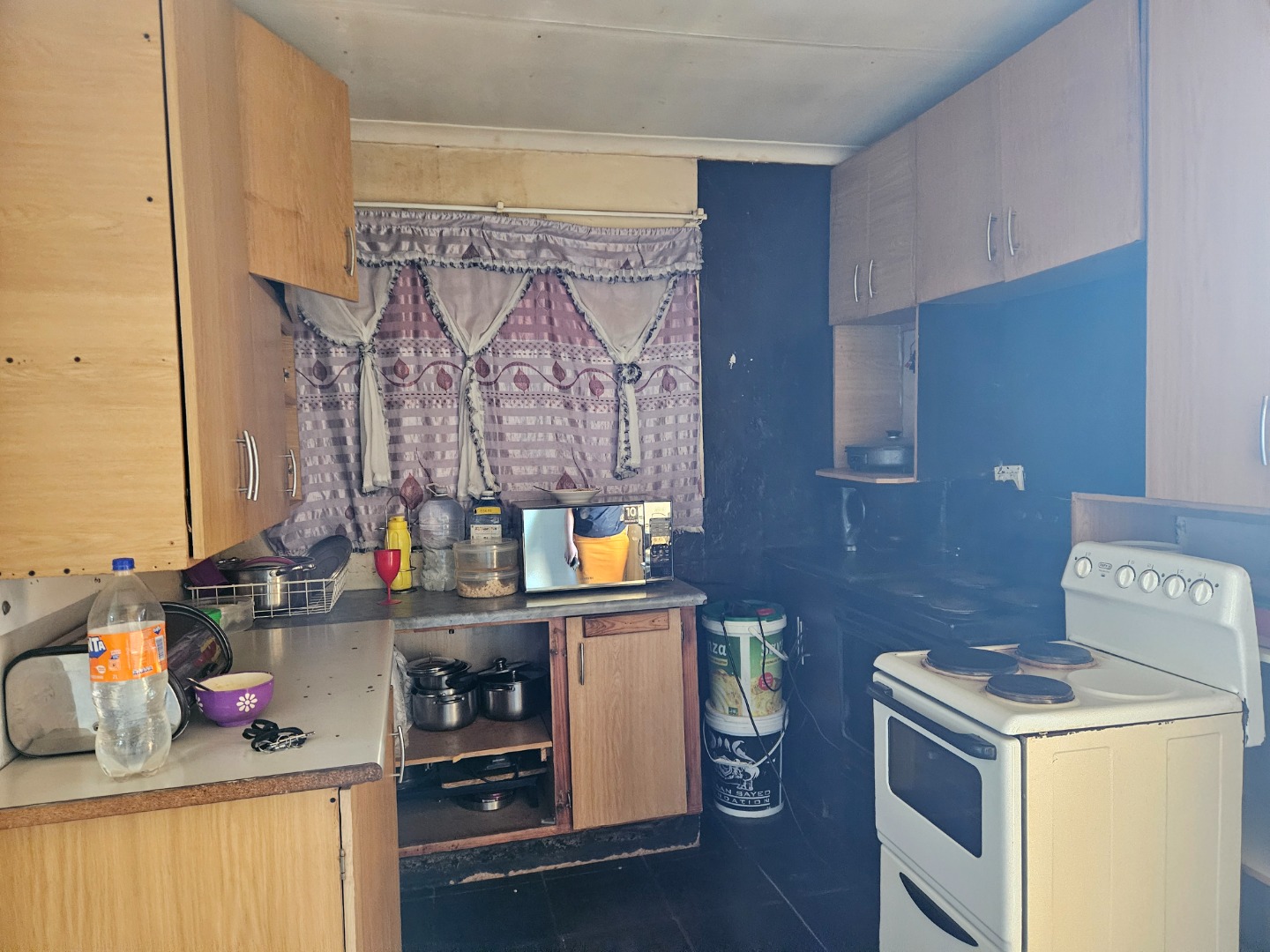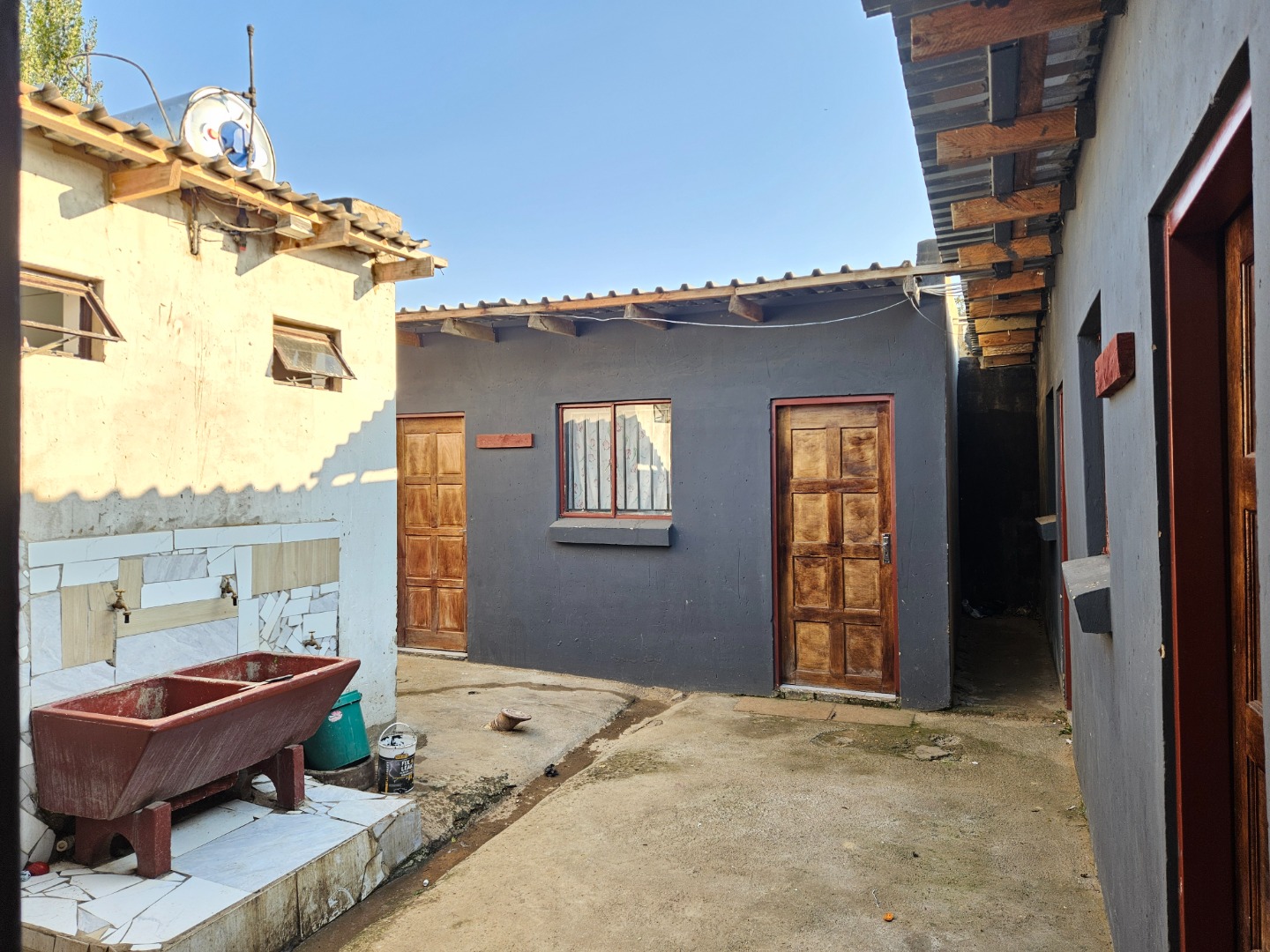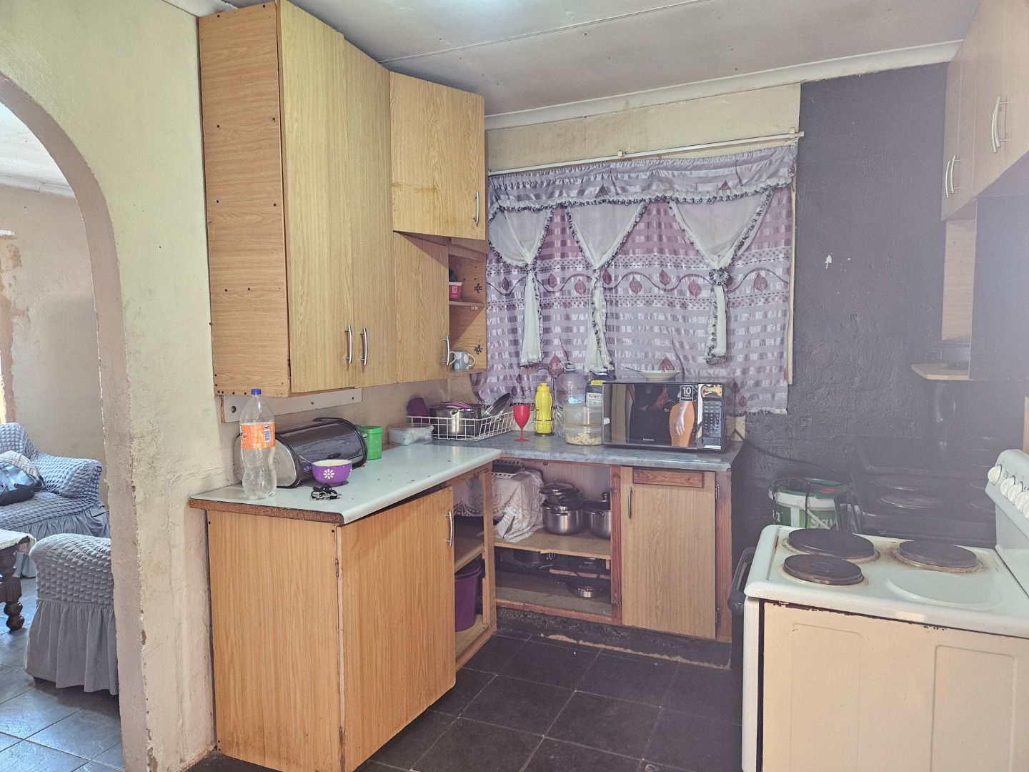 Welcome to this investment property , situated in Lenasia South , the main house is three bedrooms and one bathroom . The house also needs a fixer upper , the kitchen is fitted with built in cupboards and also tiled with separate bathroom and toilet , when you step into the kitchen which is situated on the back of the house , you are greeted by the lounge which is facing the east side of the property , and the hallway that leads to the bathroom and the bedrooms . There are also flatlets who are already tenented for extra income , seven outside rooms which share showers and toilet . If you are looking for a