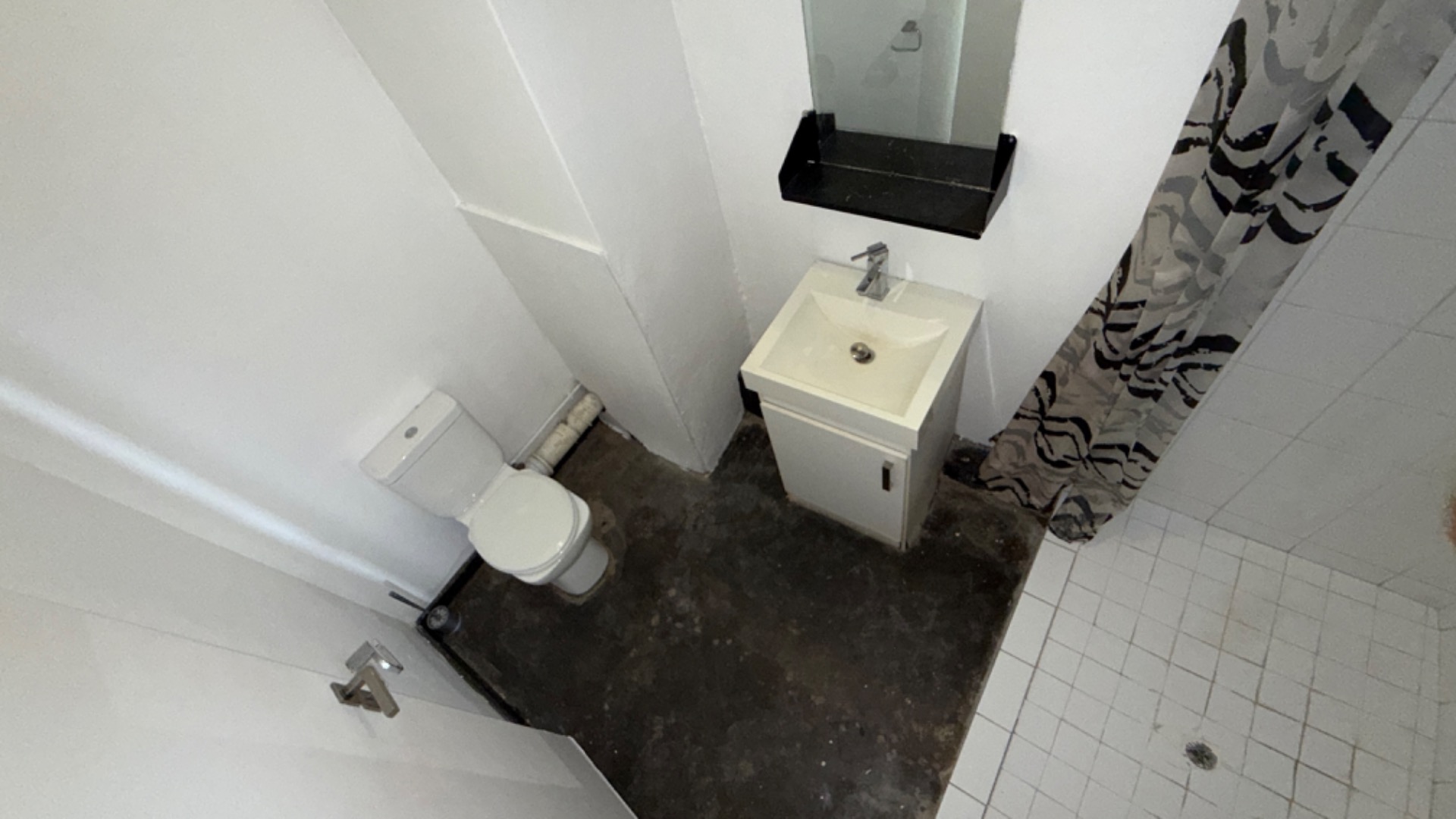 This apartment features one comfortable bedroom area, seamlessly integrated into the open-plan design, and a single, basic bathroom. While compact, the bathroom is clean and functional, offering a toilet, sink, and shower to get you ready for the day. It’s all about practical living here!