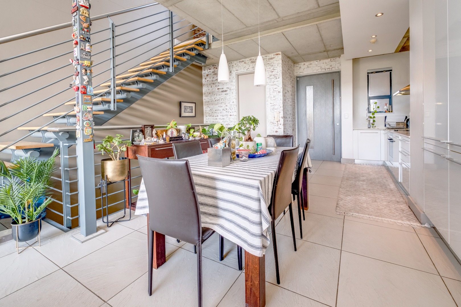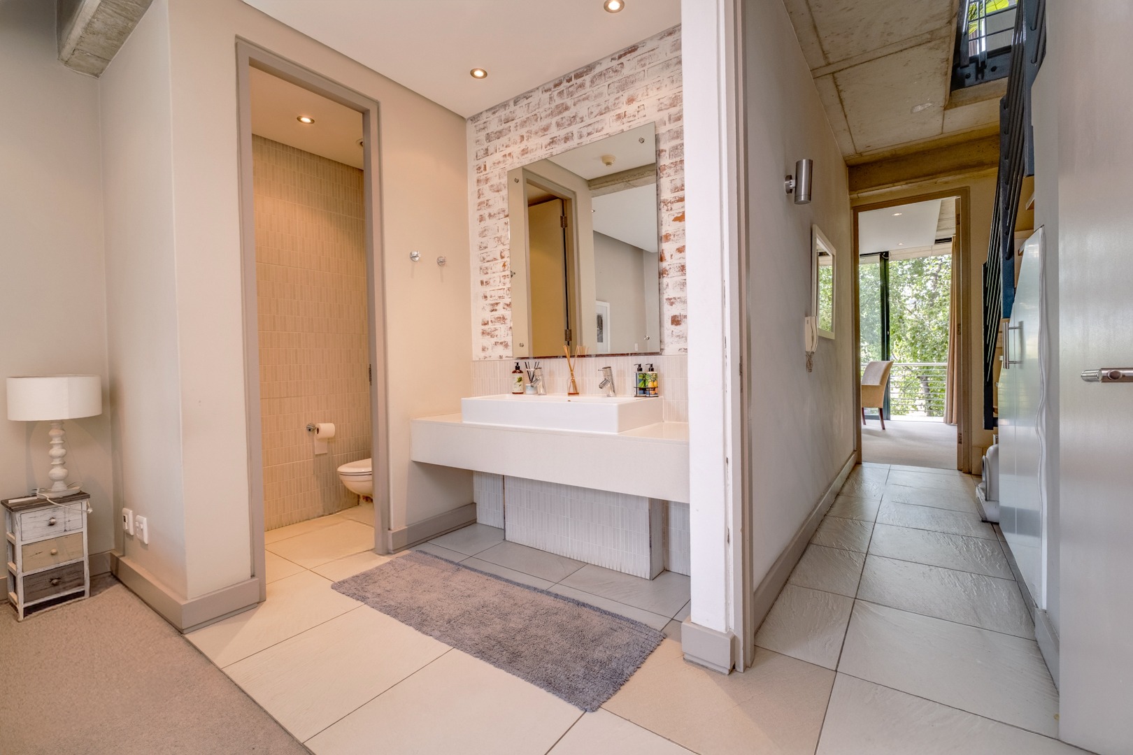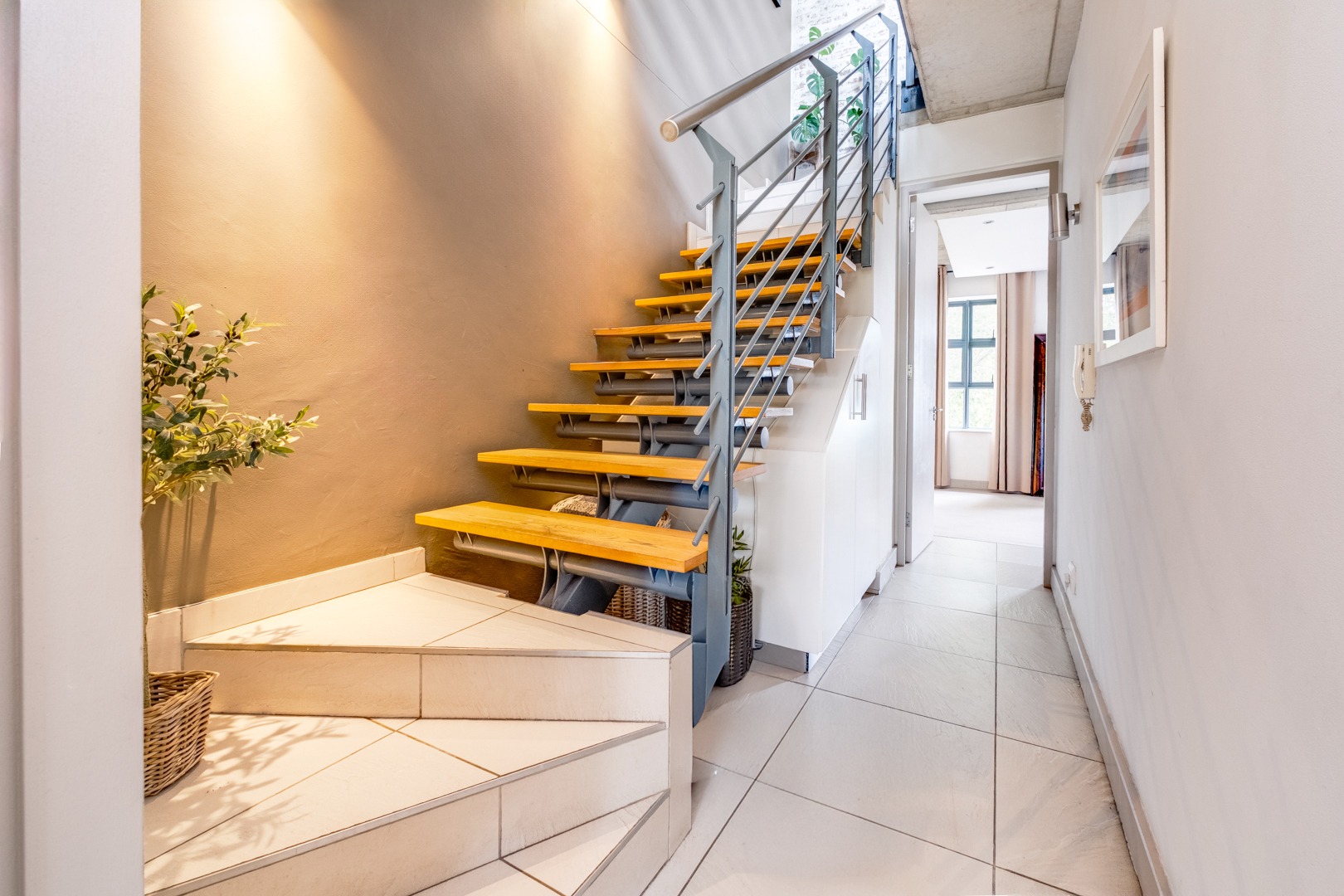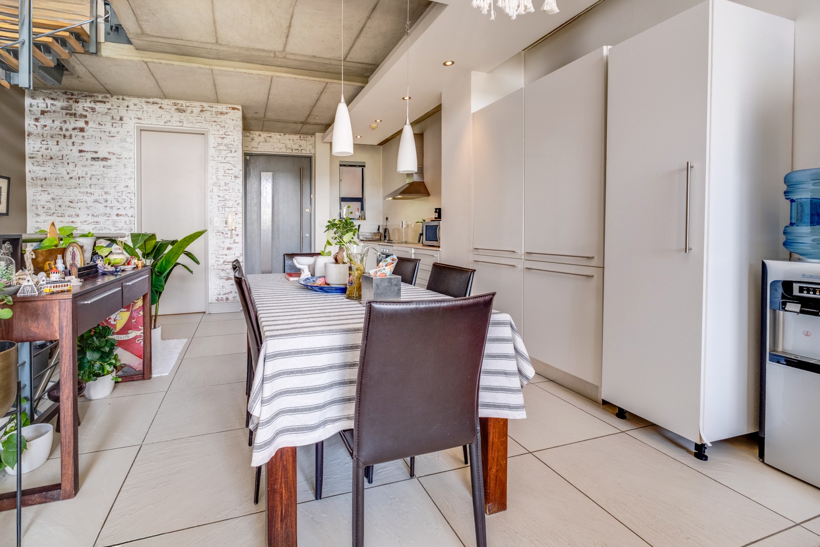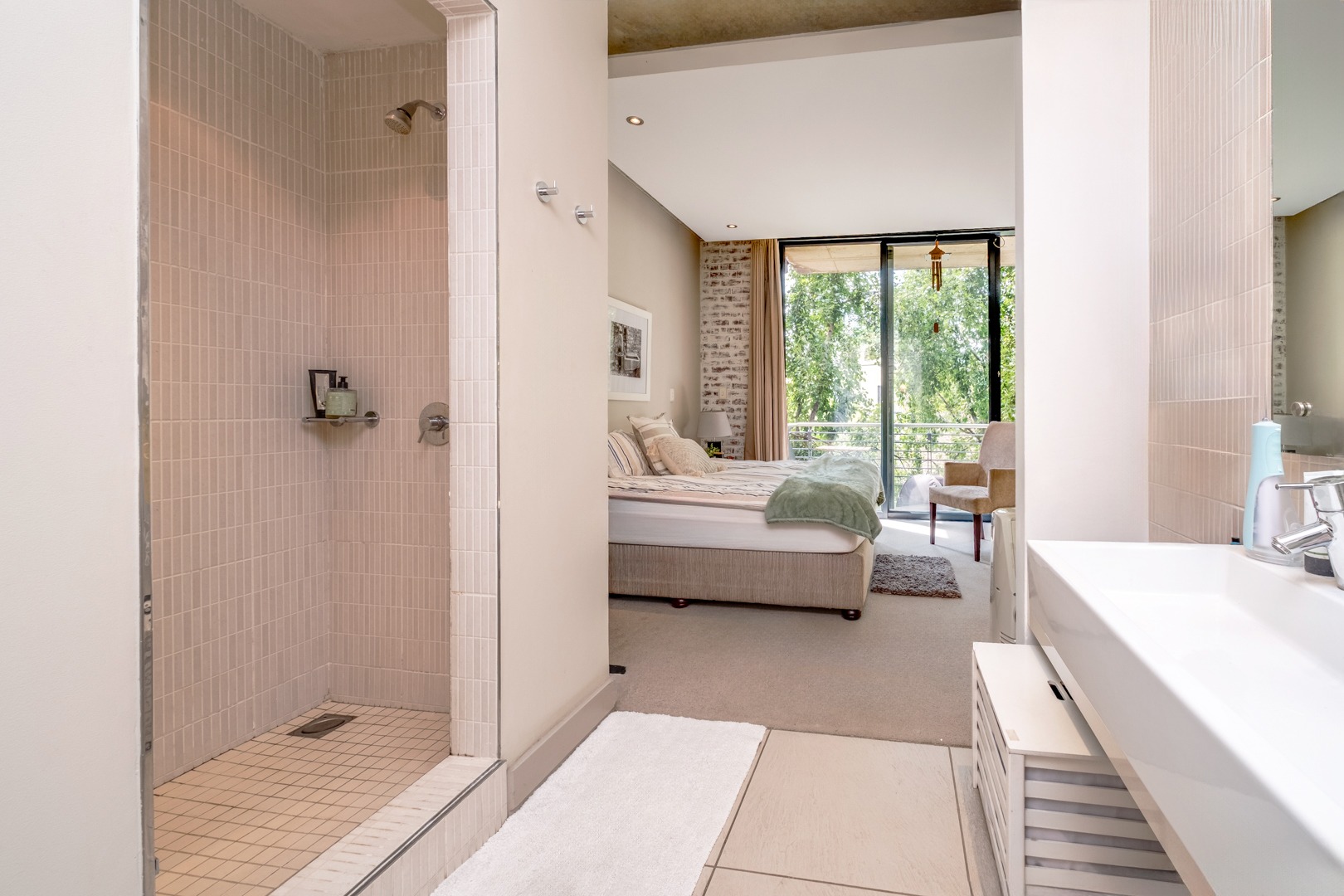 As you enter, you are welcomed by the double volume space boasting a well fitted kitchen with hidden appliances (Cesar stone finishes) open plan to the dining and living room areas, leading in turn to a private balcony. A loft area shares this space - perfect for a study - which opens onto an entertainment patio with a gas braai, ideal for kicking back and relaxing after another successful business day.