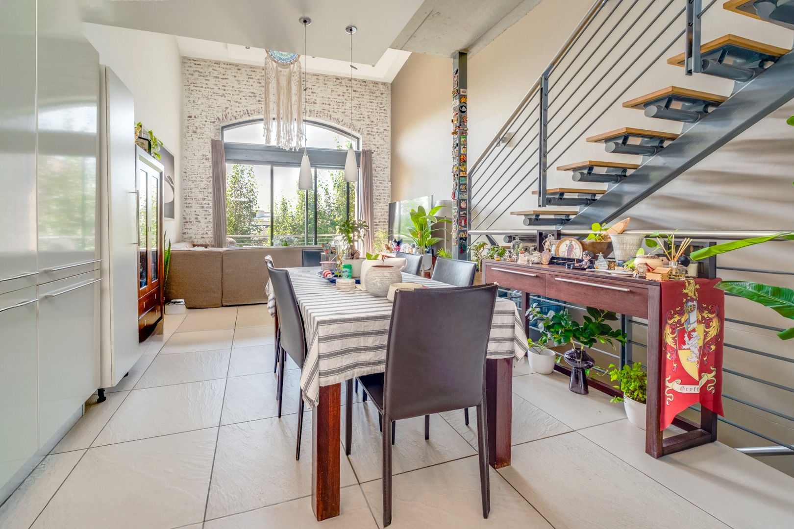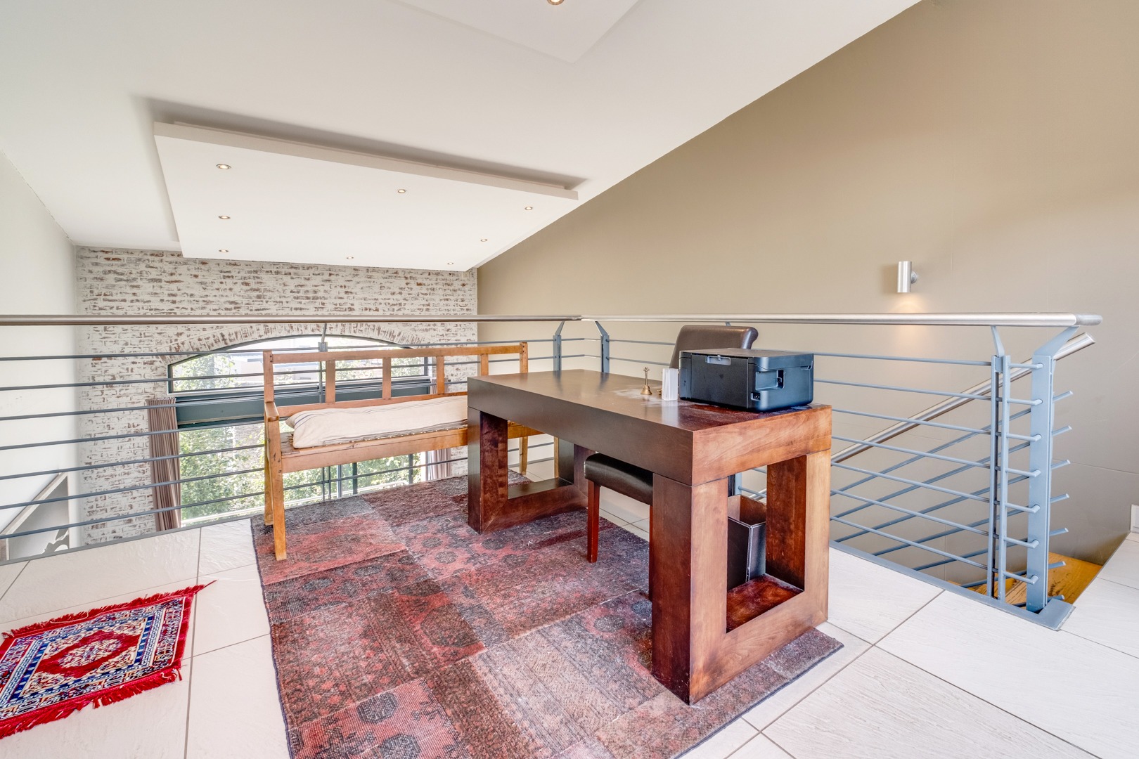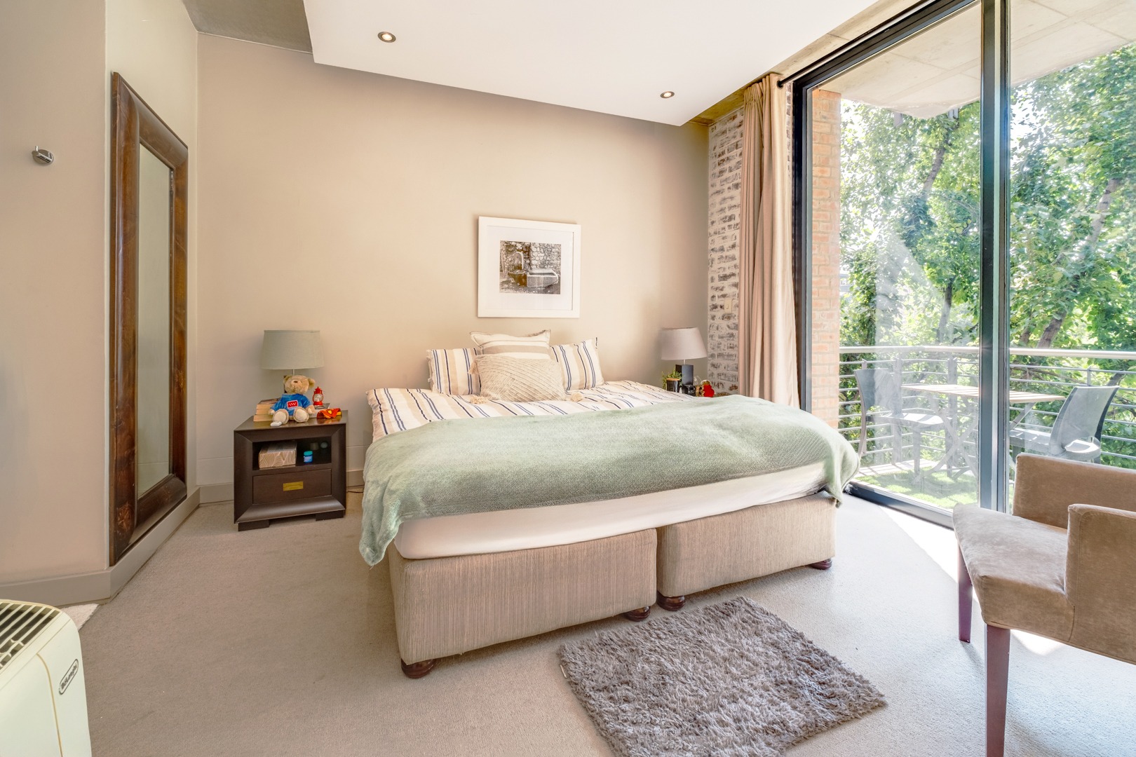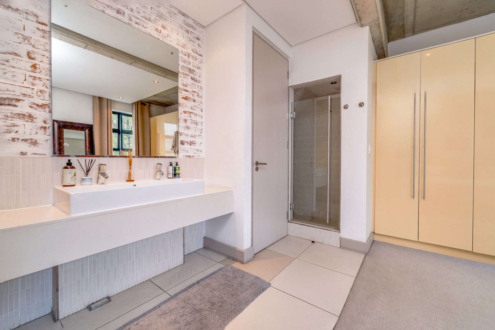 As you enter, you are welcomed by the double volume space boasting a well fitted kitchen with hidden appliances (Cesar stone finishes) open plan to the dining and living room areas, leading in turn to a private balcony. A loft area shares this space - perfect for a study - which opens onto an entertainment patio with a gas braai, ideal for kicking back and relaxing after another successful business day.