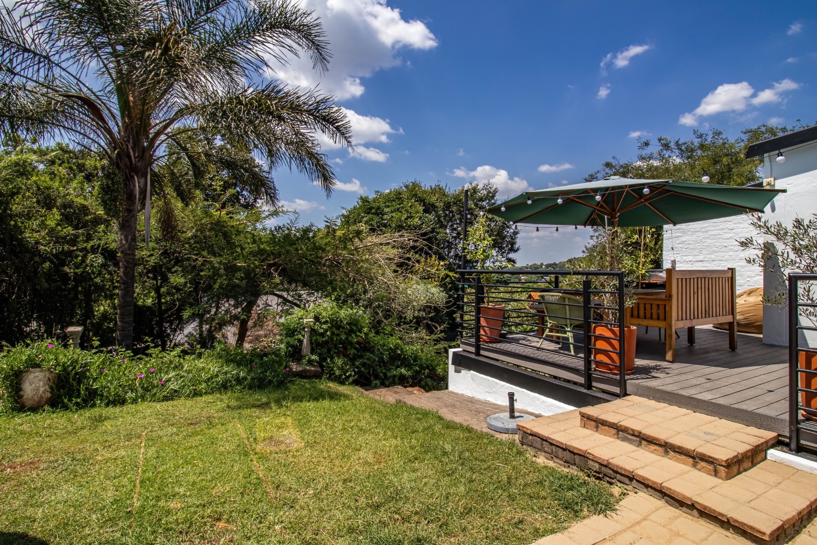 Step into this charming 3-bedroom, 2-bathroom home nestled in the vibrant suburban heart of Melville, Johannesburg. From the moment you arrive, you'll appreciate the modern white exterior with its dark accents and multiple garage bays, all set amidst lush greenery with glimpses of the city skyline. The property boasts a generous 743 sqm erf size, offering plenty of space.