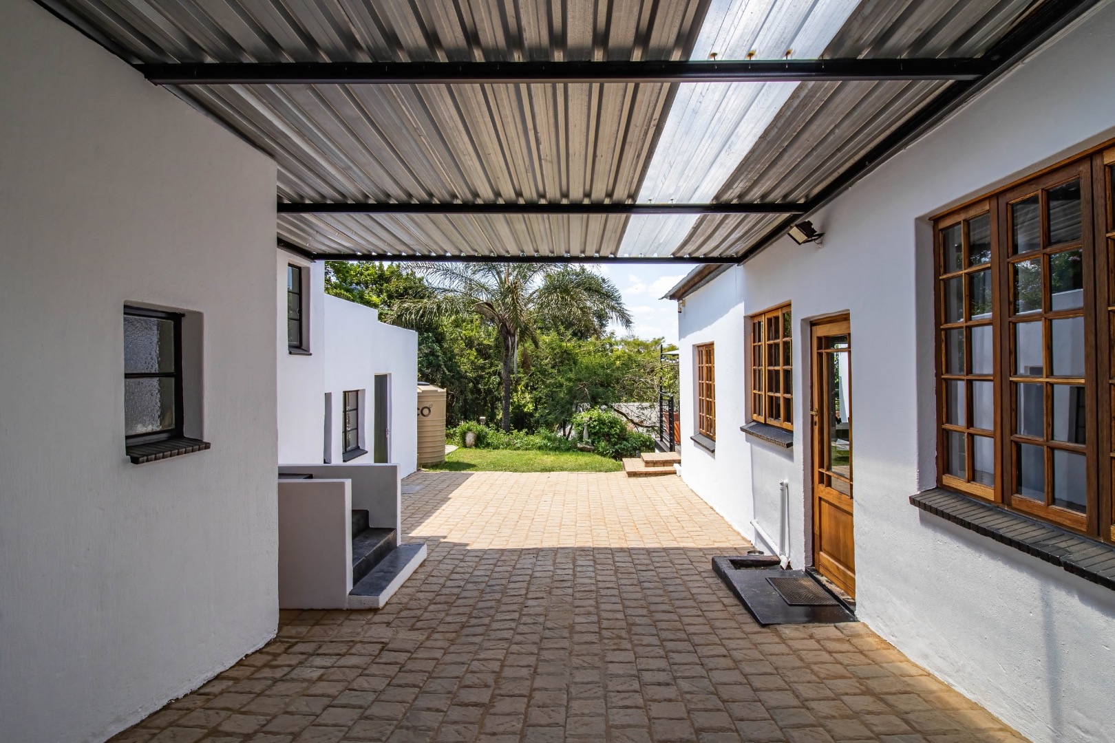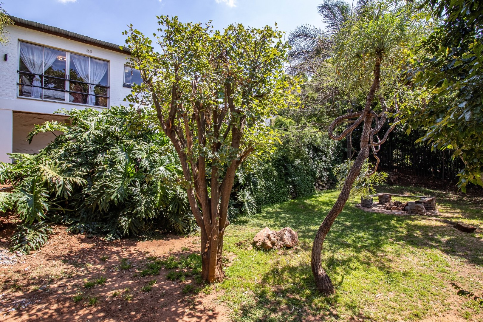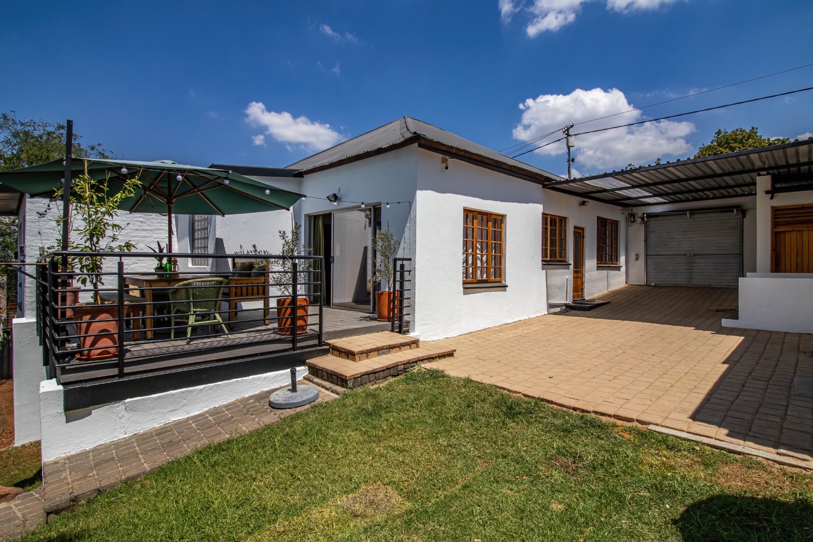 Step into this charming 3-bedroom, 2-bathroom home nestled in the vibrant suburban heart of Melville, Johannesburg. From the moment you arrive, you'll appreciate the modern white exterior with its dark accents and multiple garage bays, all set amidst lush greenery with glimpses of the city skyline. The property boasts a generous 743 sqm erf size, offering plenty of space.