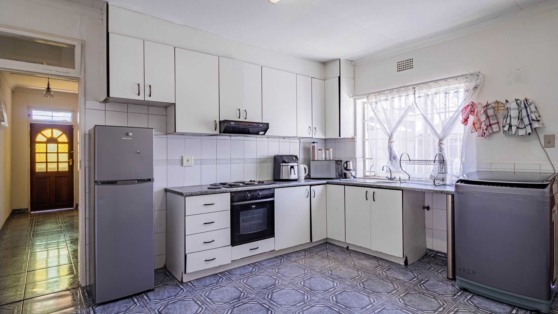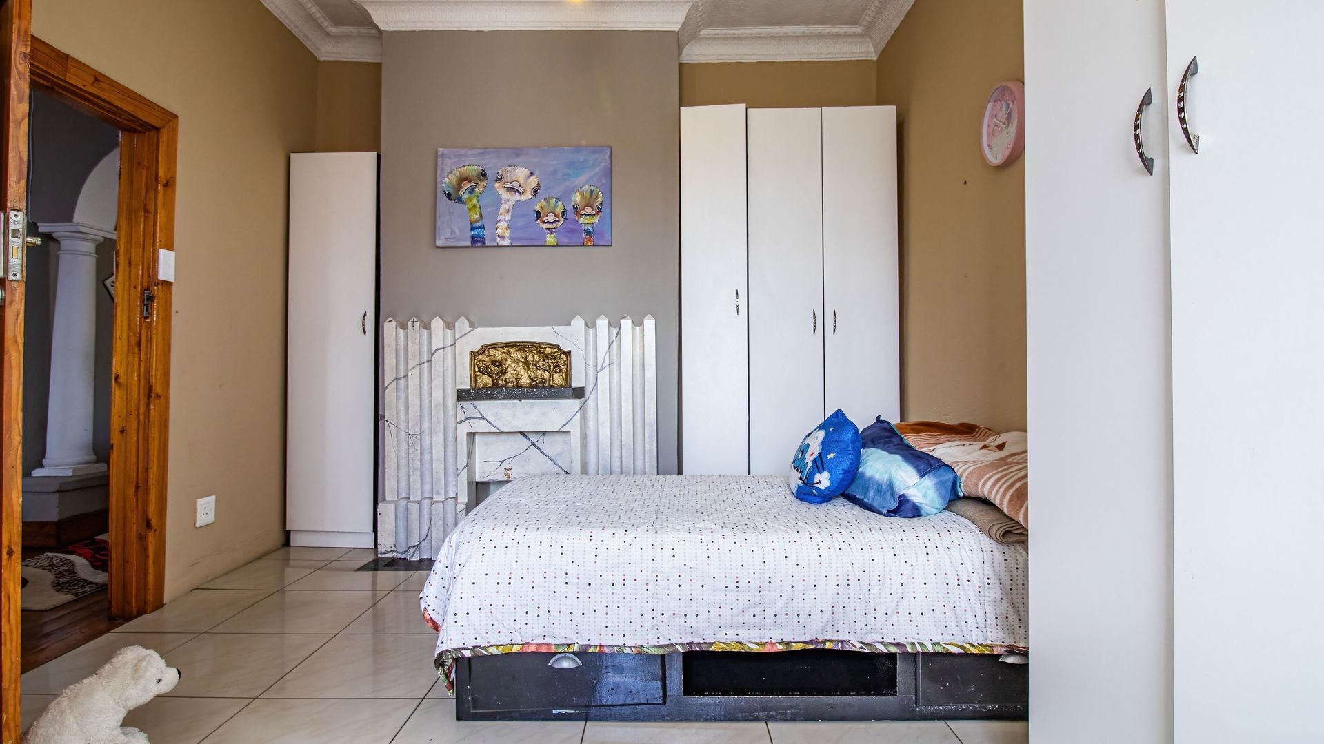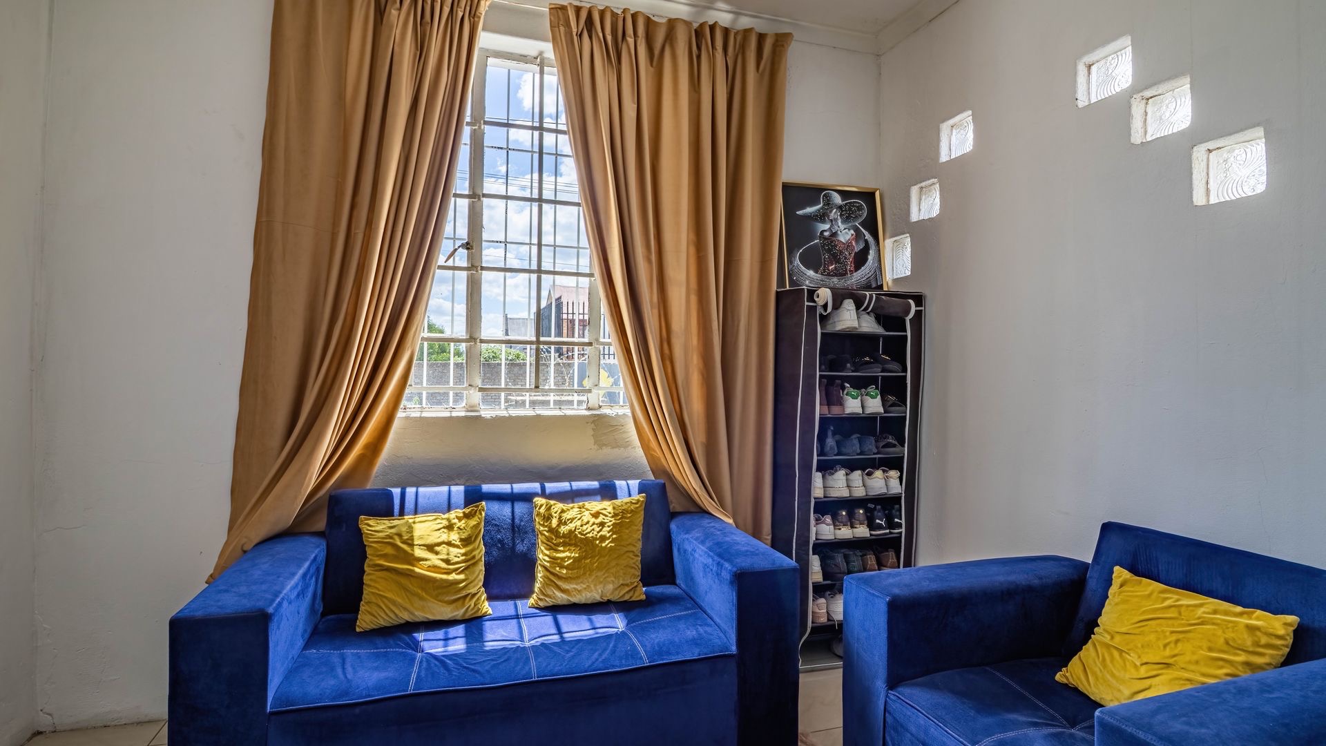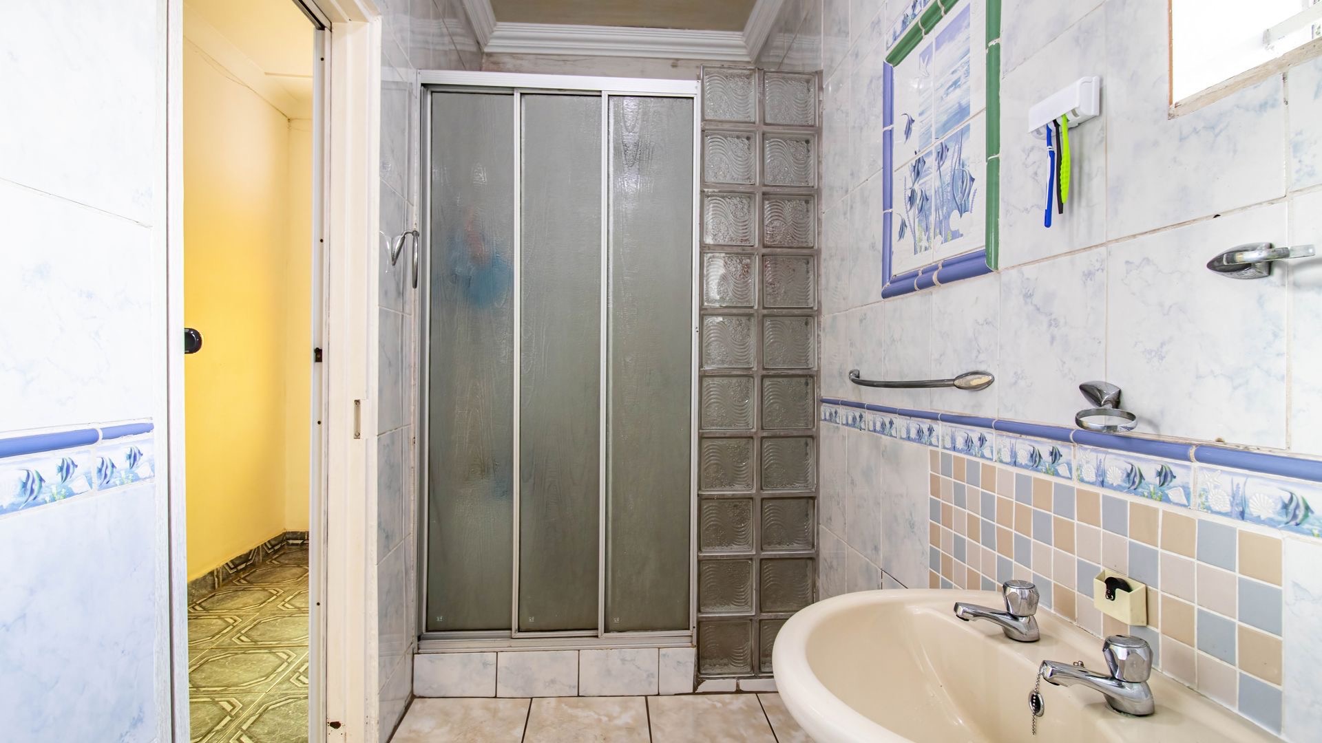 Situated in the suburban area of Newclare, Johannesburg, this substantial 5-bedroom residence offers a secure and spacious living environment. The property features a robust exterior with a tall, totally walled perimeter, an access gate, and burglar bars for enhanced peace of mind. A low-maintenance garden and paved driveway contribute to its practical kerb appeal, complemented by an inviting arched entrance.