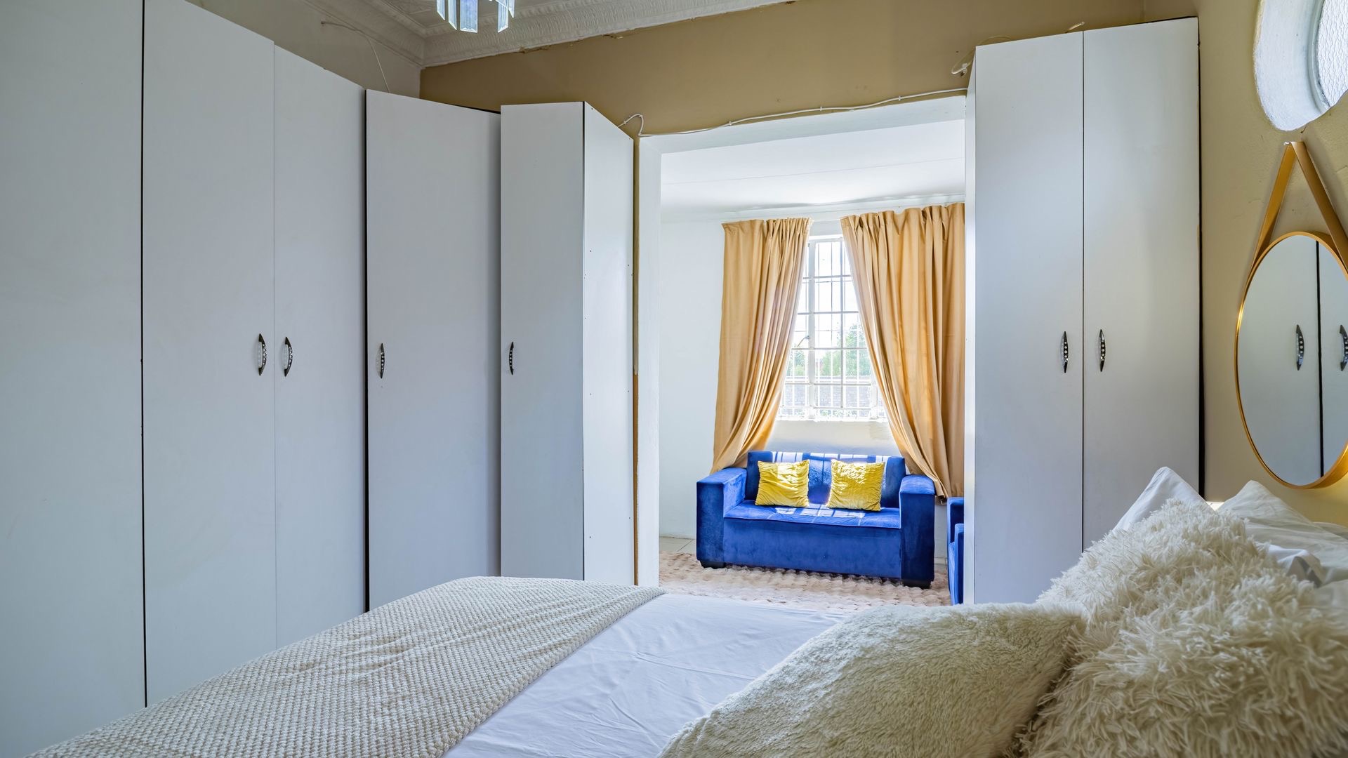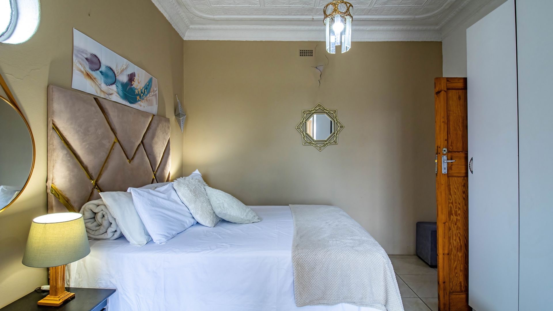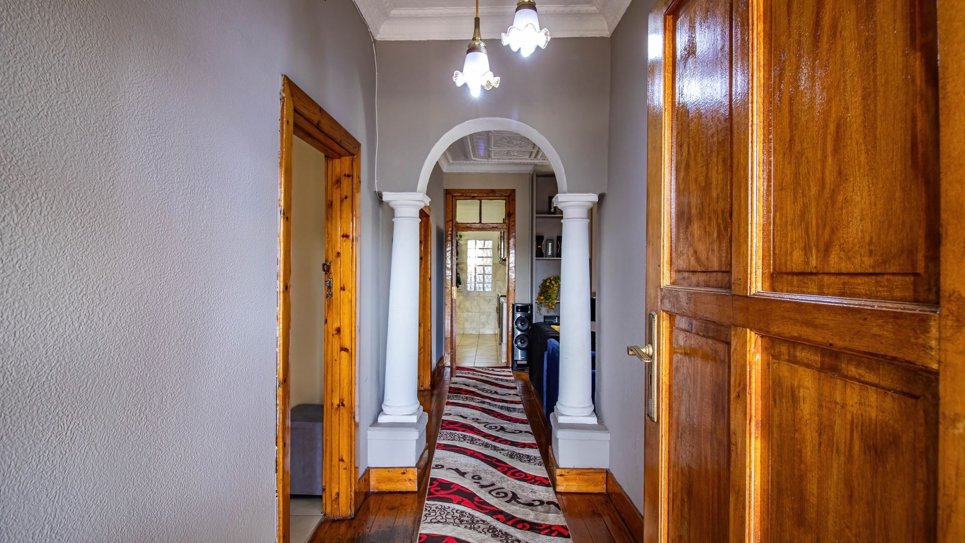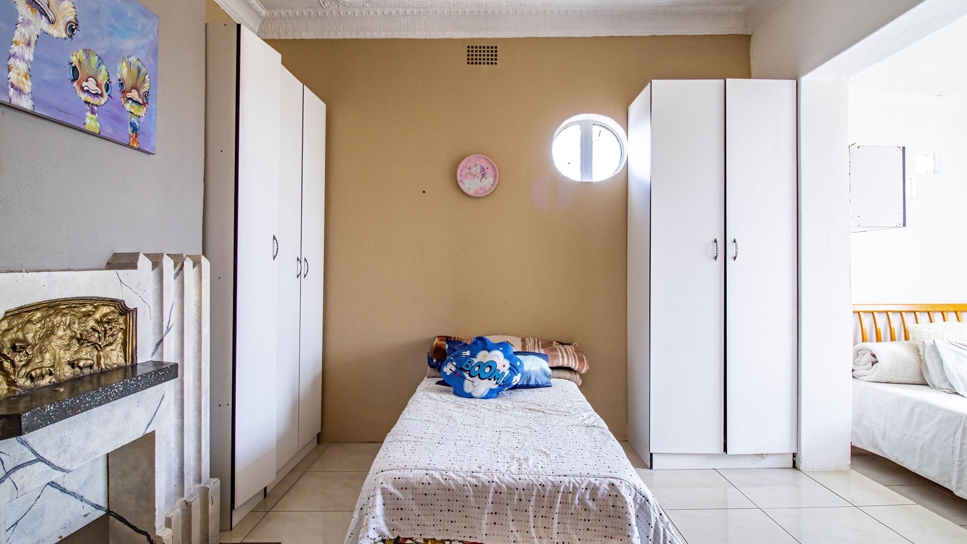 Situated in the suburban area of Newclare, Johannesburg, this substantial 5-bedroom residence offers a secure and spacious living environment. The property features a robust exterior with a tall, totally walled perimeter, an access gate, and burglar bars for enhanced peace of mind. A low-maintenance garden and paved driveway contribute to its practical kerb appeal, complemented by an inviting arched entrance.