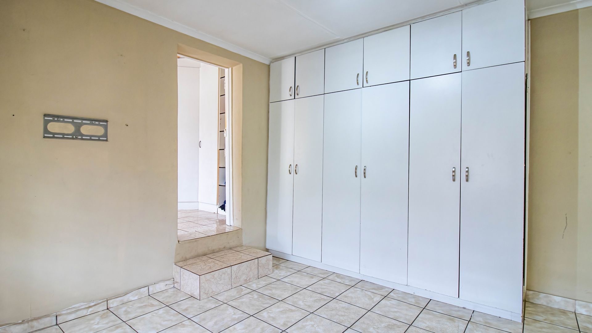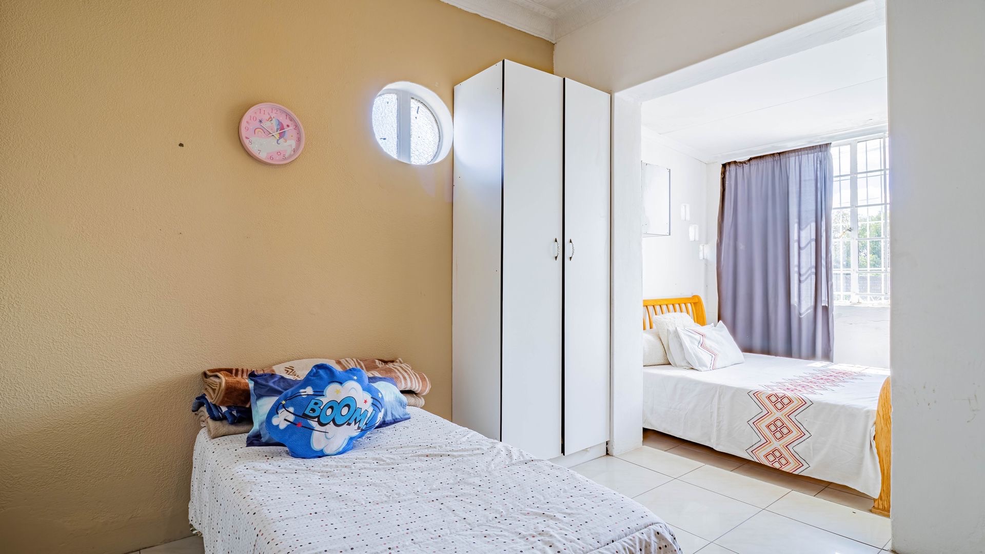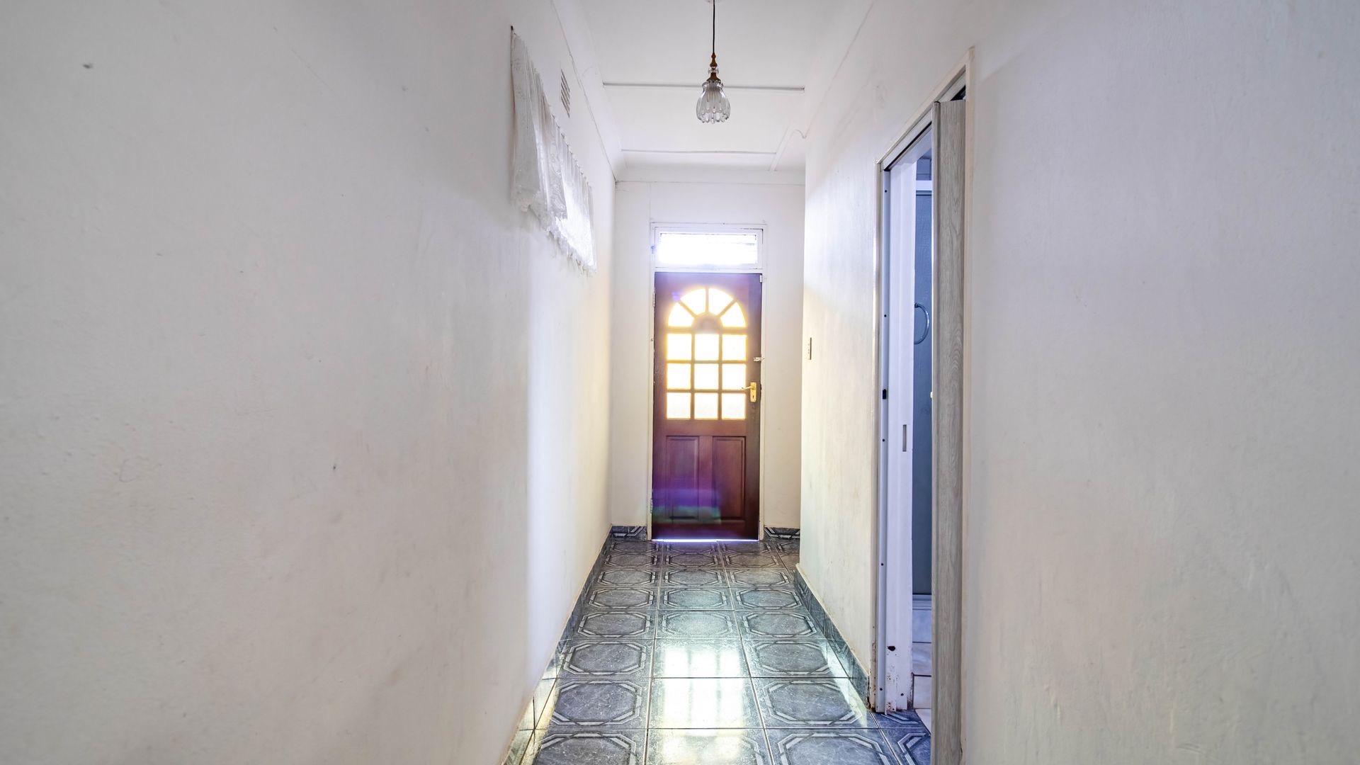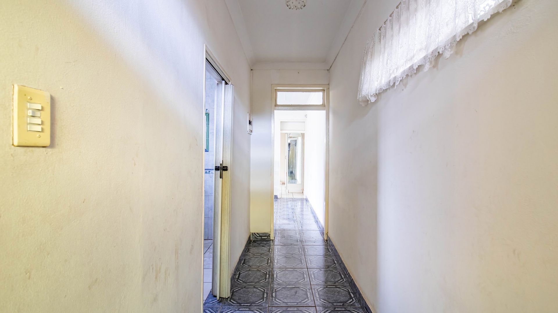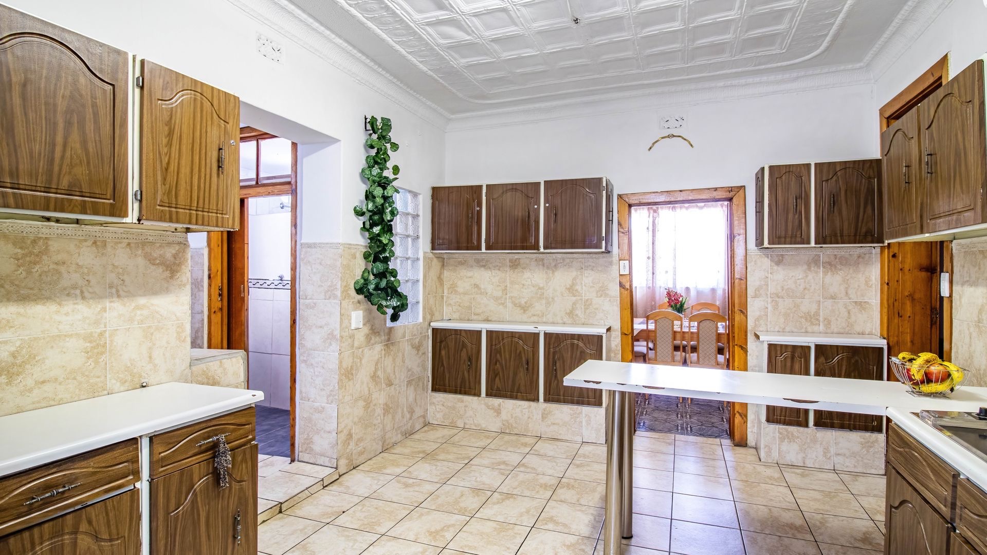 Situated in the suburban area of Newclare, Johannesburg, this substantial 5-bedroom residence offers a secure and spacious living environment. The property features a robust exterior with a tall, totally walled perimeter, an access gate, and burglar bars for enhanced peace of mind. A low-maintenance garden and paved driveway contribute to its practical kerb appeal, complemented by an inviting arched entrance.