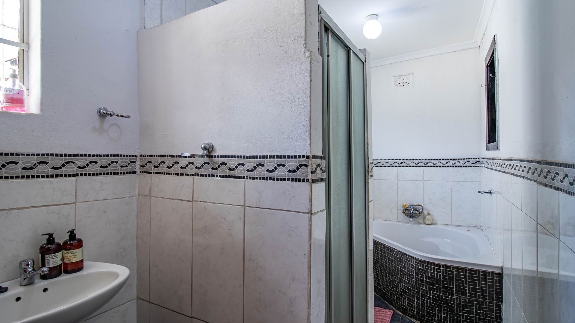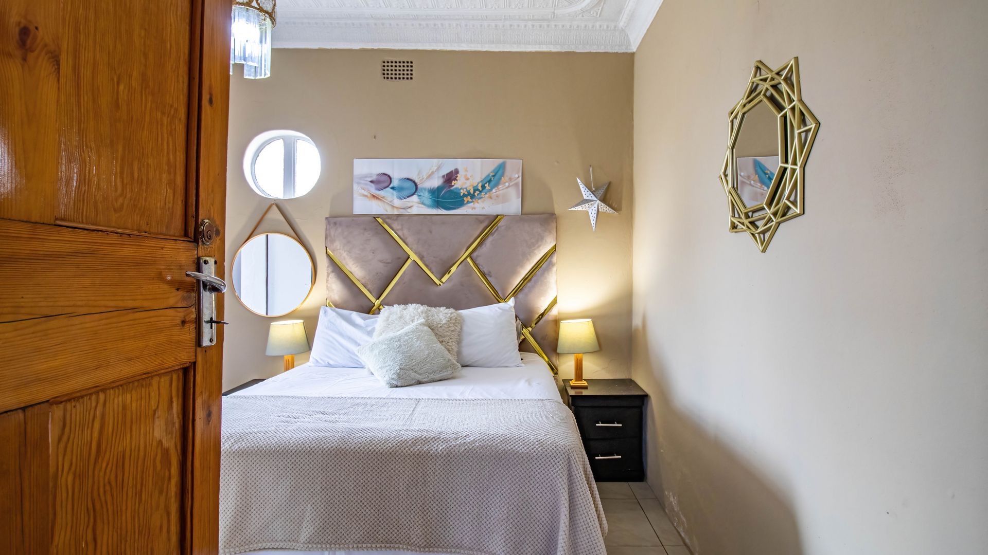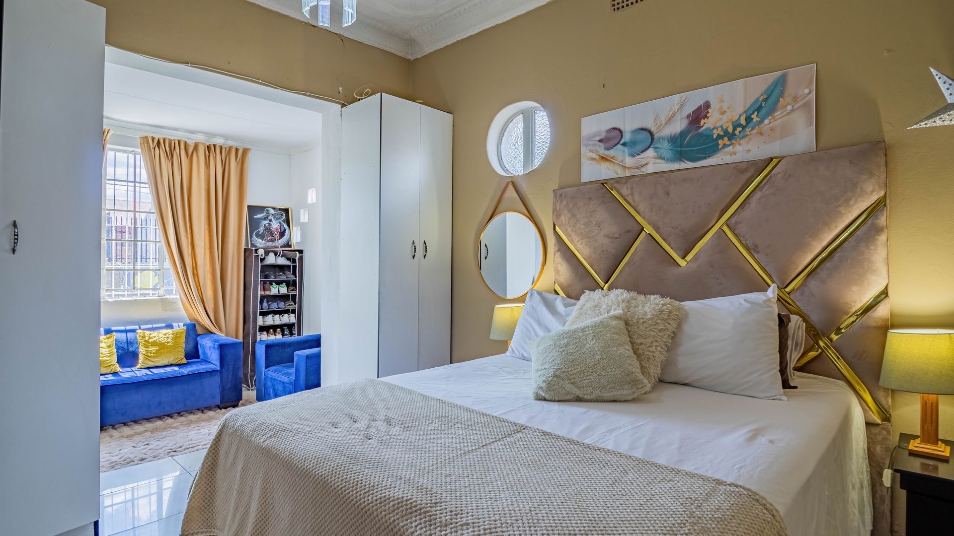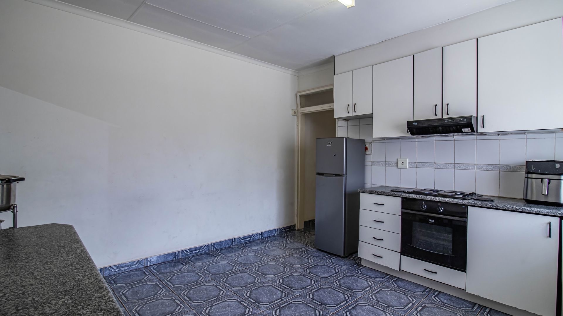 Situated in the suburban area of Newclare, Johannesburg, this substantial 5-bedroom residence offers a secure and spacious living environment. The property features a robust exterior with a tall, totally walled perimeter, an access gate, and burglar bars for enhanced peace of mind. A low-maintenance garden and paved driveway contribute to its practical kerb appeal, complemented by an inviting arched entrance.