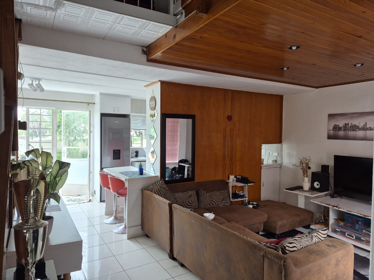 Downstairs, the open-plan layout invites connection and flow. The contemporary kitchen blends seamlessly into the dining area, making it perfect for hosting intimate dinners or relaxed weekend brunches. The lounge offers a cozy yet stylish setting to unwind, binge your favorite series, or entertain friends. A dedicated storage room keeps everyday essentials like cleaning supplies neatly out of sight, preserving the loft’s clean aesthetic.