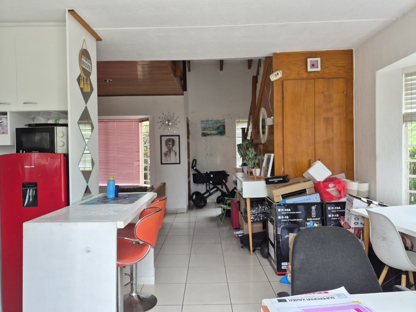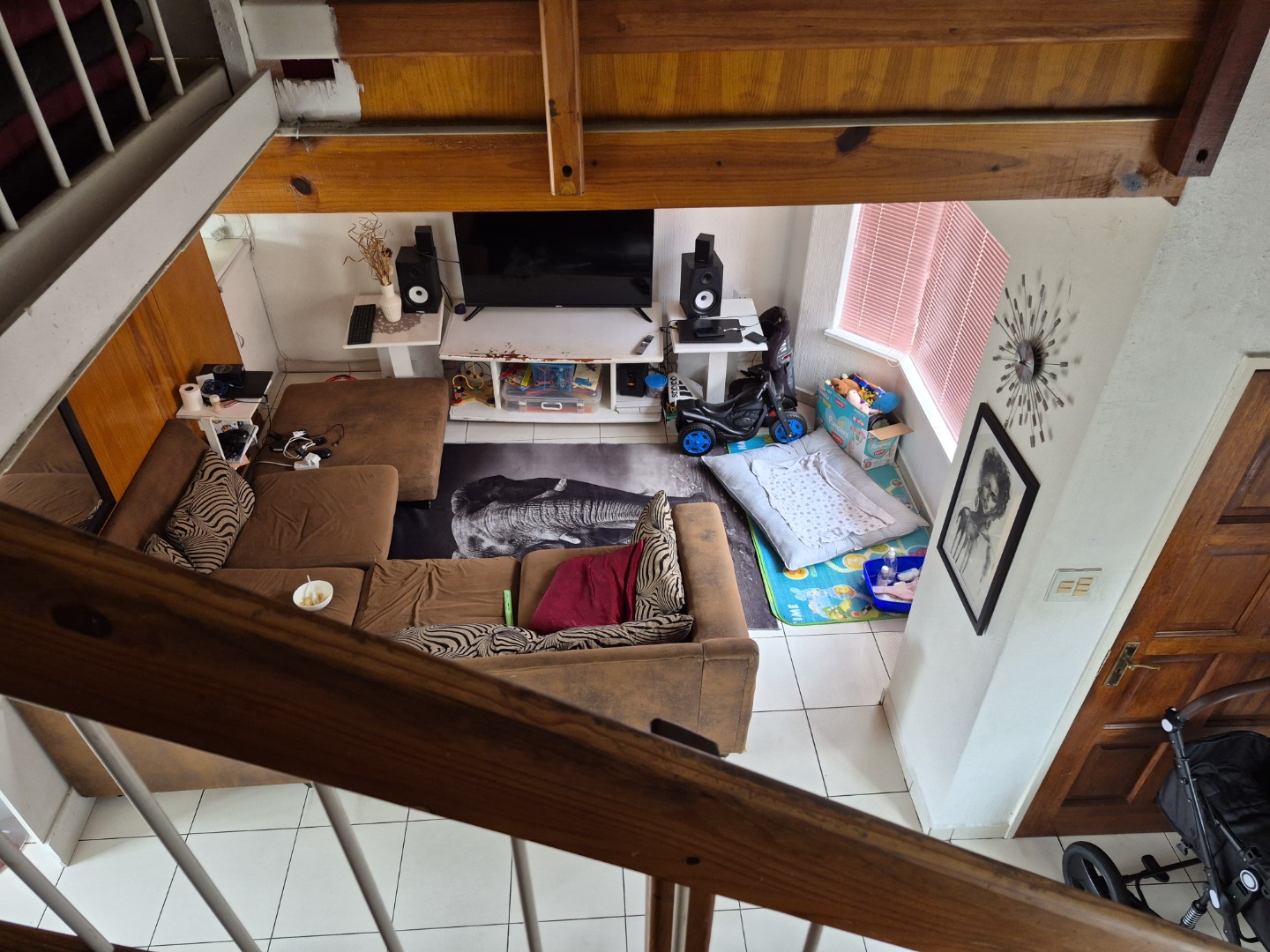Downstairs, the open-plan layout invites connection and flow. The contemporary kitchen blends seamlessly into the dining area, making it perfect for hosting intimate dinners or relaxed weekend brunches. The lounge offers a cozy yet stylish setting to unwind, binge your favorite series, or entertain friends. A dedicated storage room keeps everyday essentials like cleaning supplies neatly out of sight, preserving the loft’s clean aesthetic.