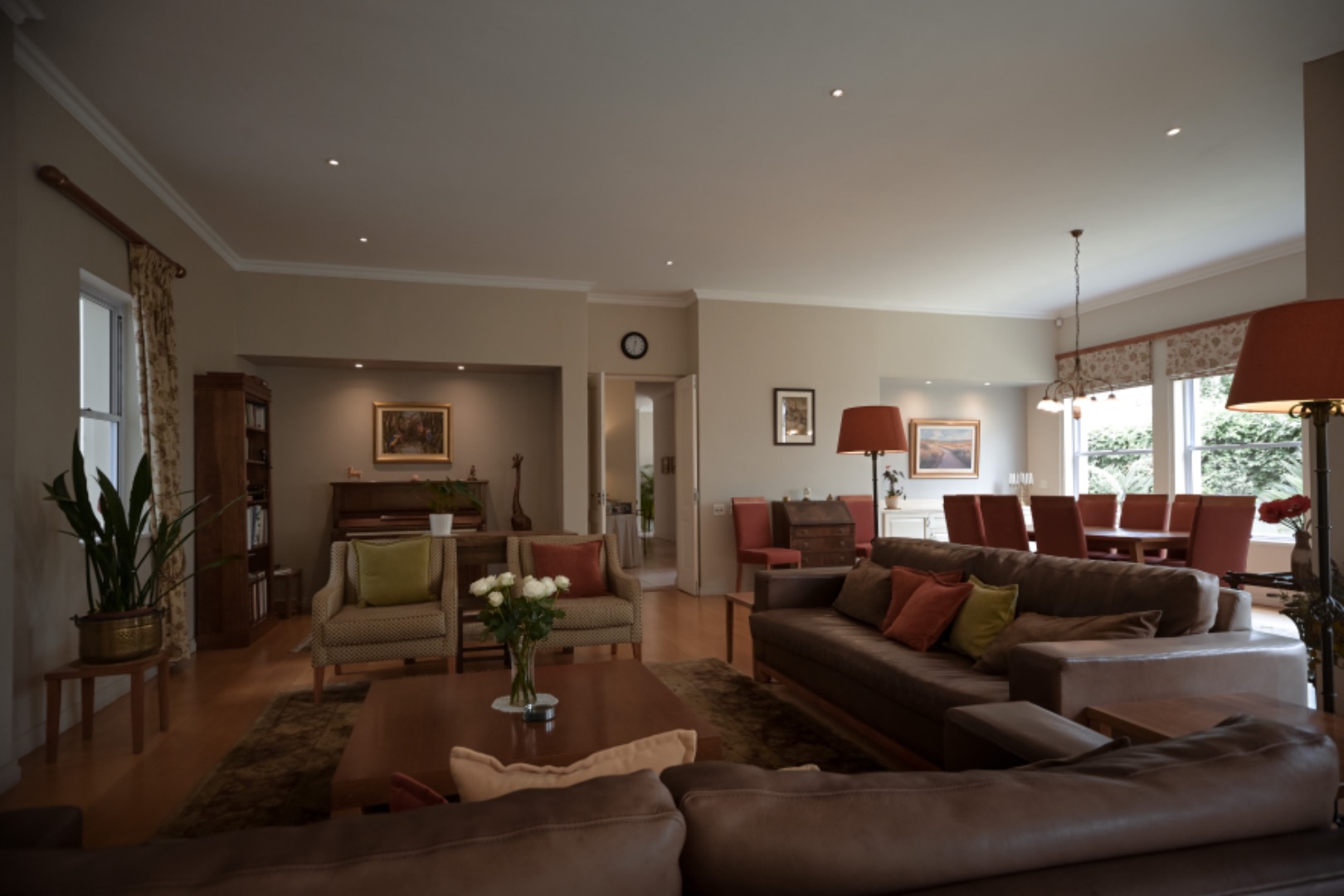 This distinguished home offers four luxurious bedrooms, ensuring private sanctuaries for all residents. With six meticulously appointed bathrooms, including two opulent en-suites, comfort and convenience are paramount. The property also features a versatile flatlet, perfect for guests or extended family, alongside a practical laundry room and outside toilet.