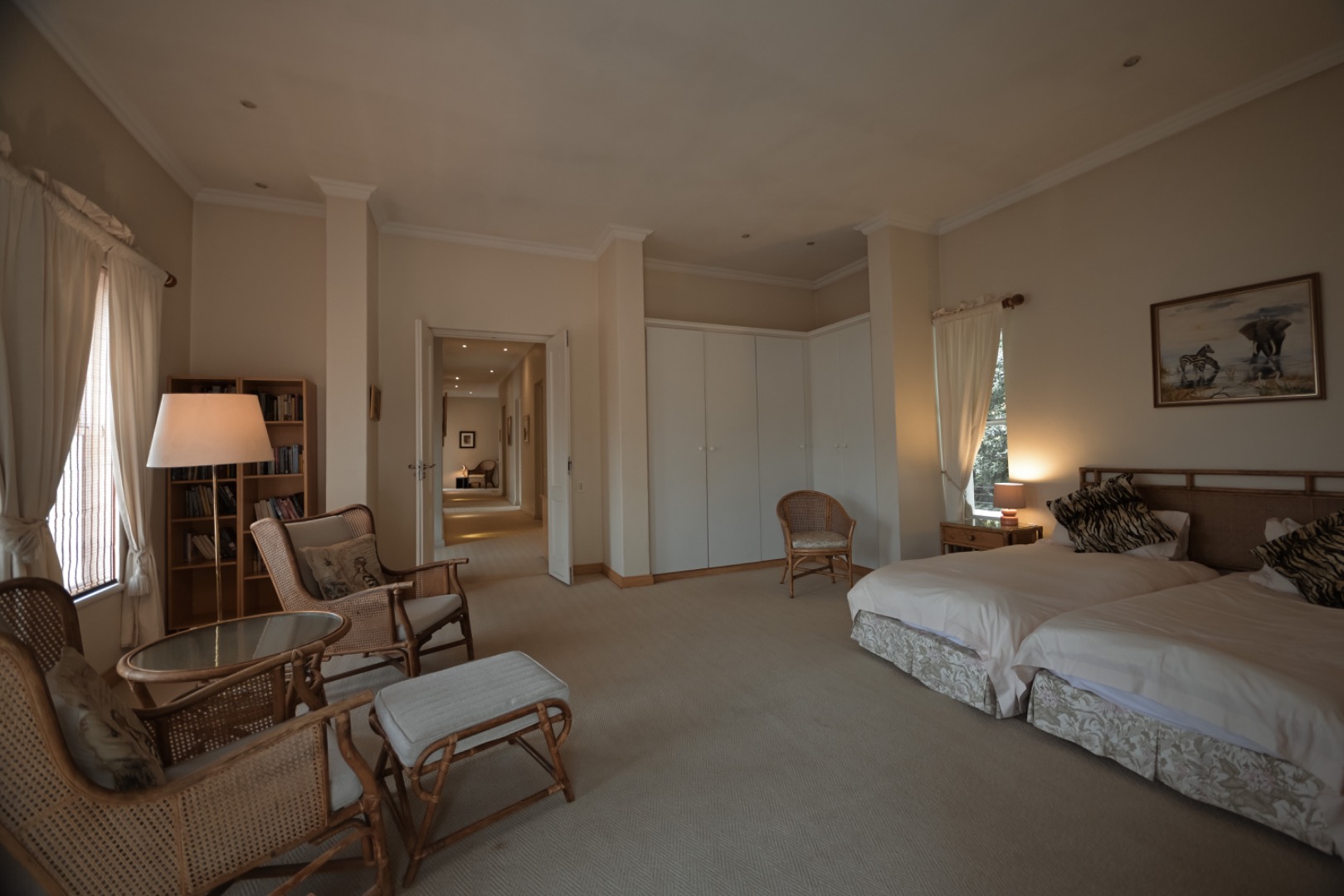 This distinguished home offers four luxurious bedrooms, ensuring private sanctuaries for all residents. With six meticulously appointed bathrooms, including two opulent en-suites, comfort and convenience are paramount. The property also features a versatile flatlet, perfect for guests or extended family, alongside a practical laundry room and outside toilet.