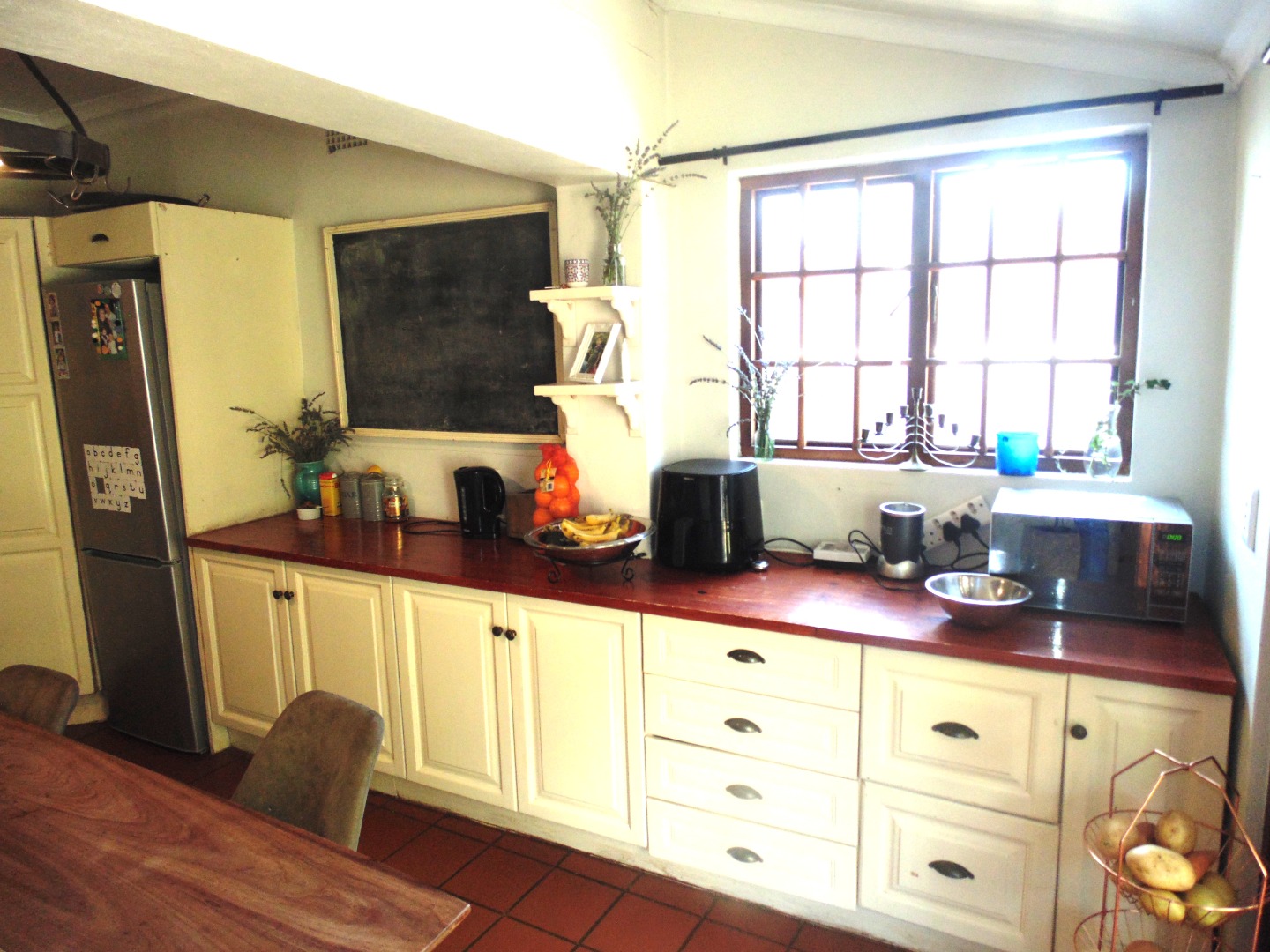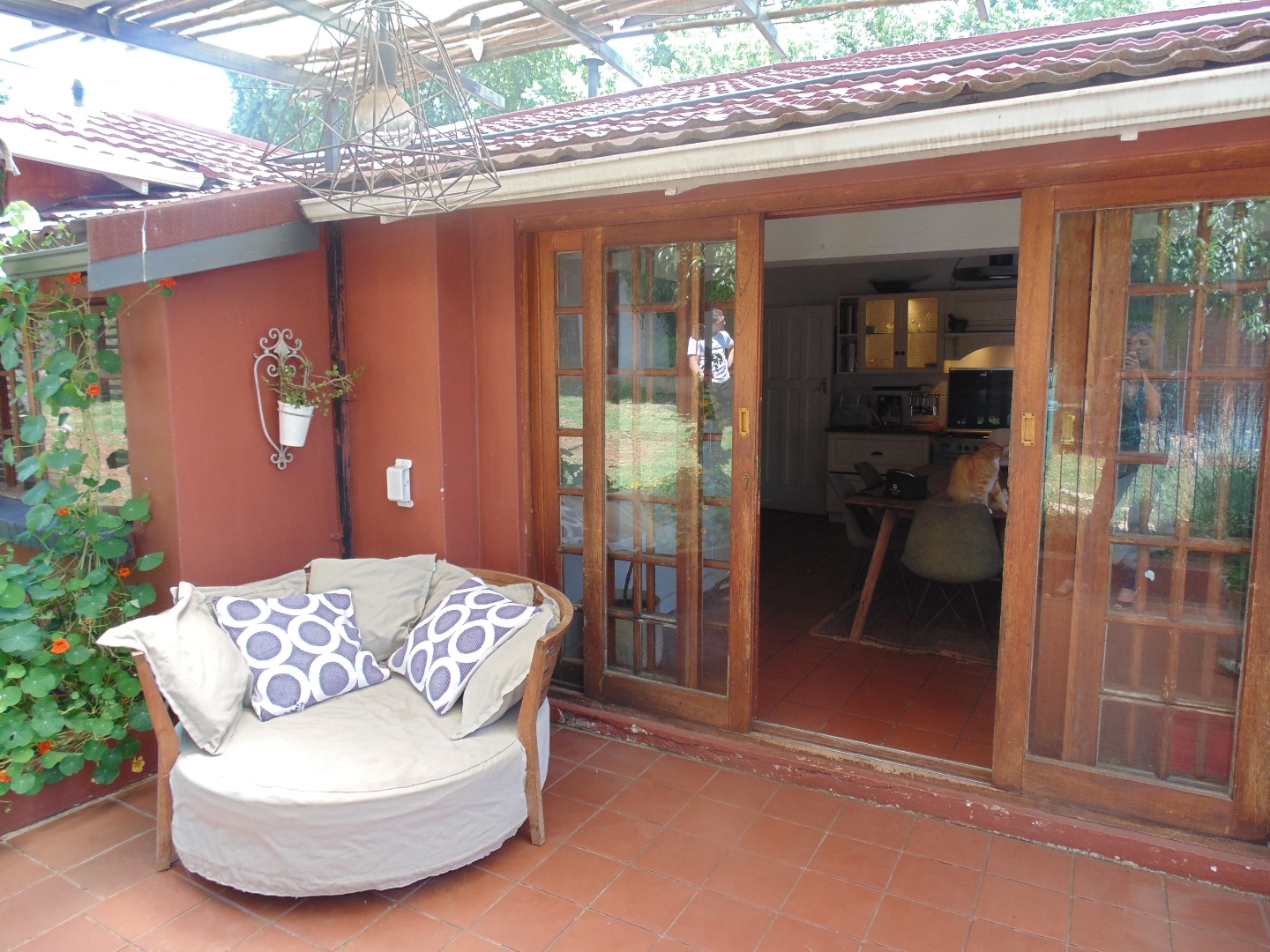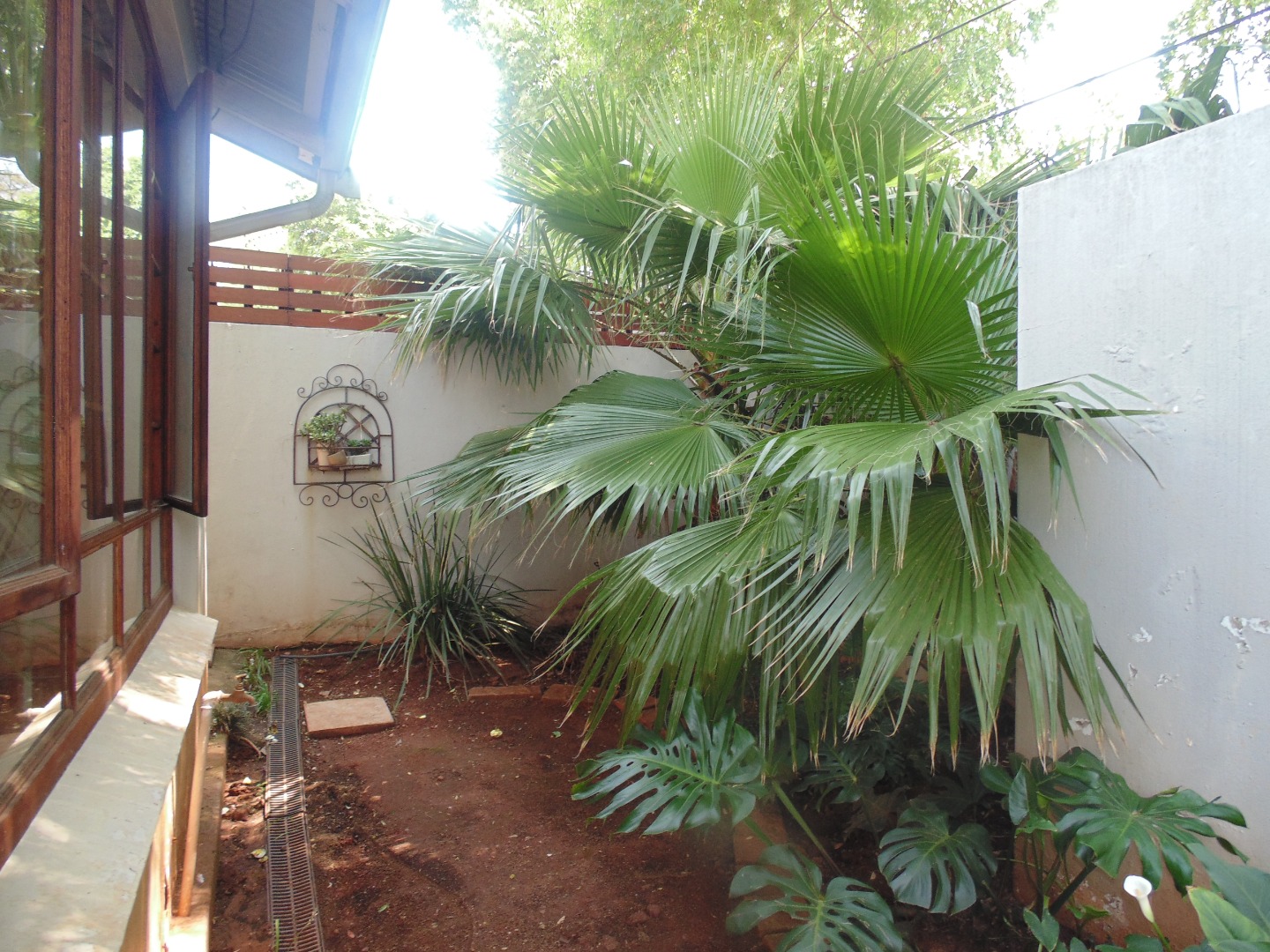 This charming 210 sqm residence, set on a generous 501 sqm erf, offers a distinctive exterior, immediately conveying a sense of warmth and character. The established garden, with mature trees and lush greenery, provides natural shade and a welcoming approach, enhancing the property's kerb appeal.