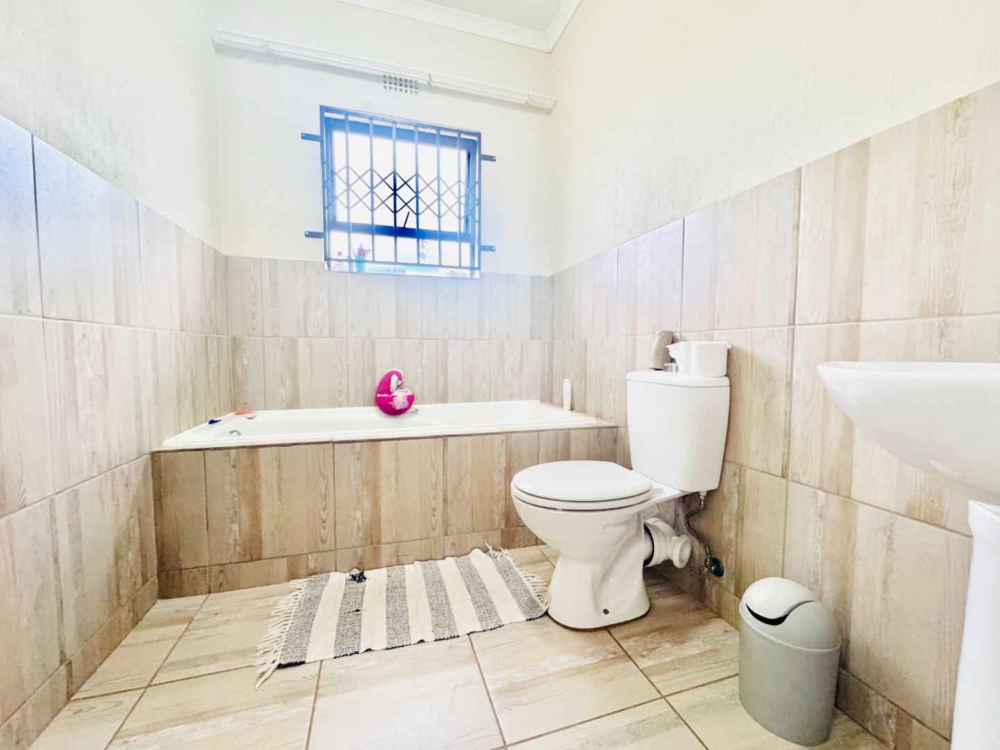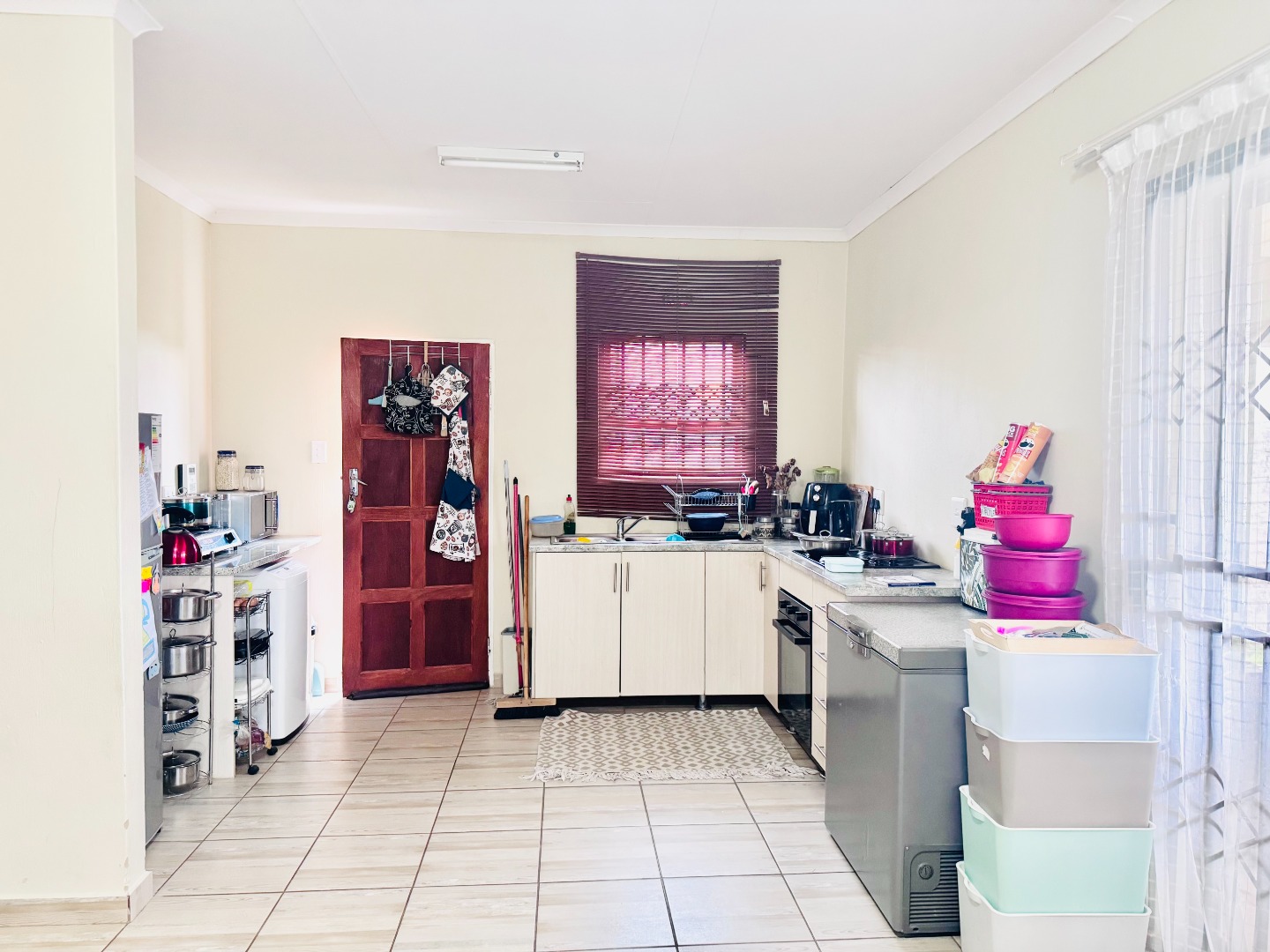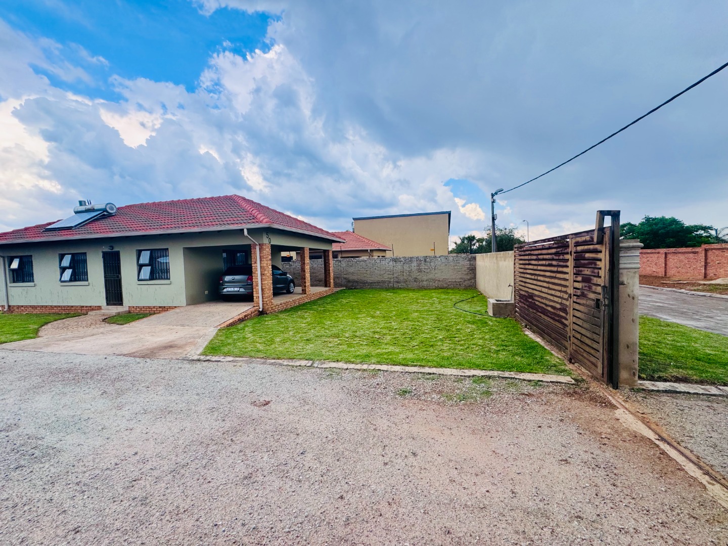For peace of mind, the property is fitted with burglar bars on windows and a security gate. Sustainability is addressed with a solar water heater, promoting energy efficiency. Azaadville Gardens offers a suburban lifestyle within the vibrant city of Krugersdorp.