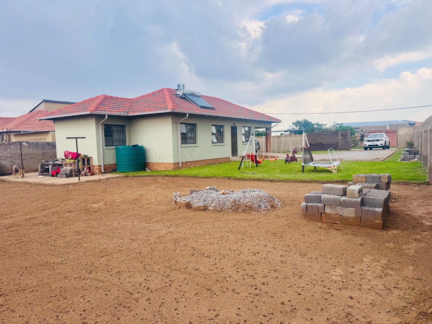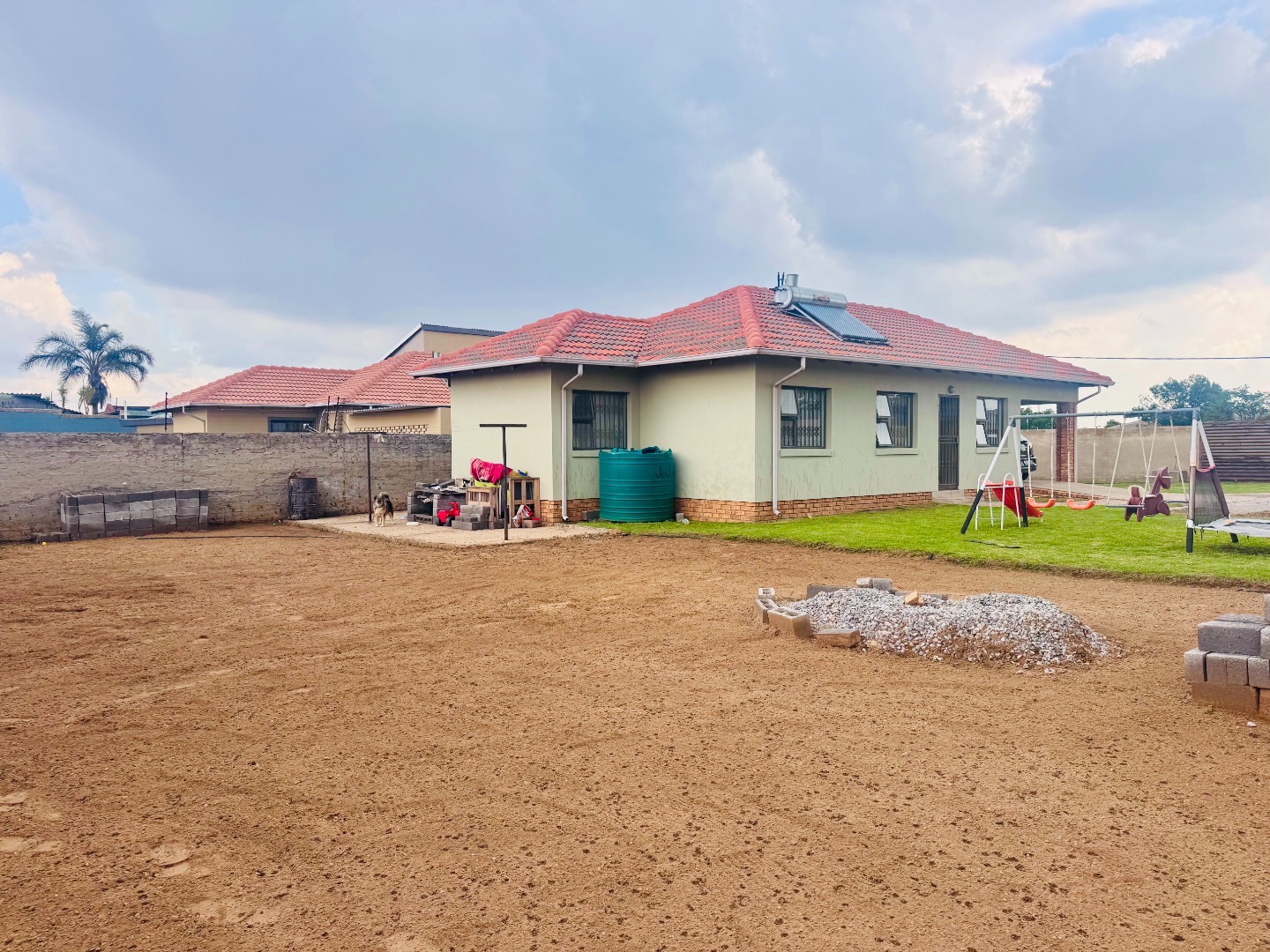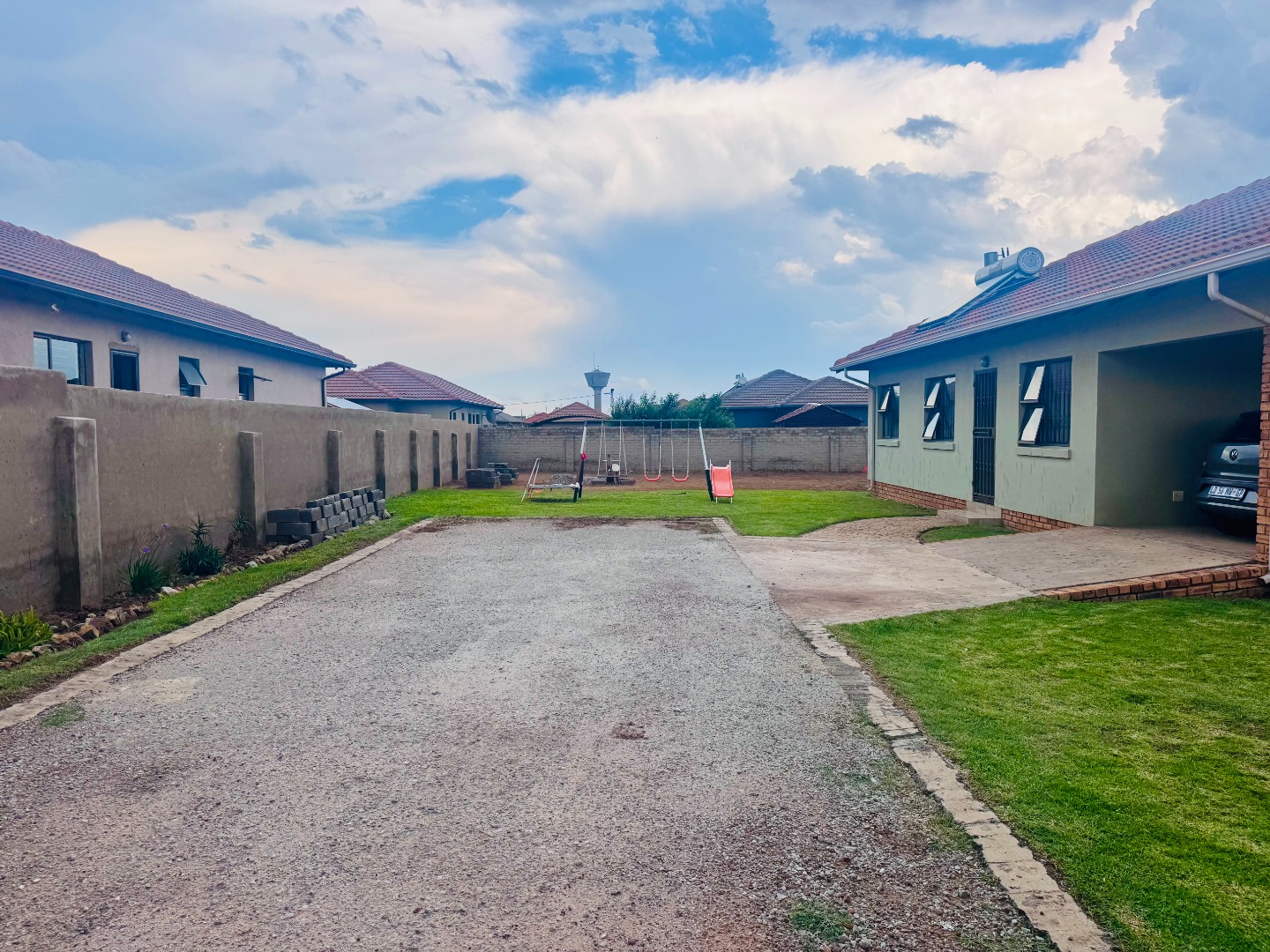 The expansive outdoor area is a true asset, boasting a large garden with a dedicated children's play area, complete with swings and a slide, ideal for family recreation. The sizable erf also presents significant potential for future landscaping or development. Parking is readily available with the carport and additional open parking.