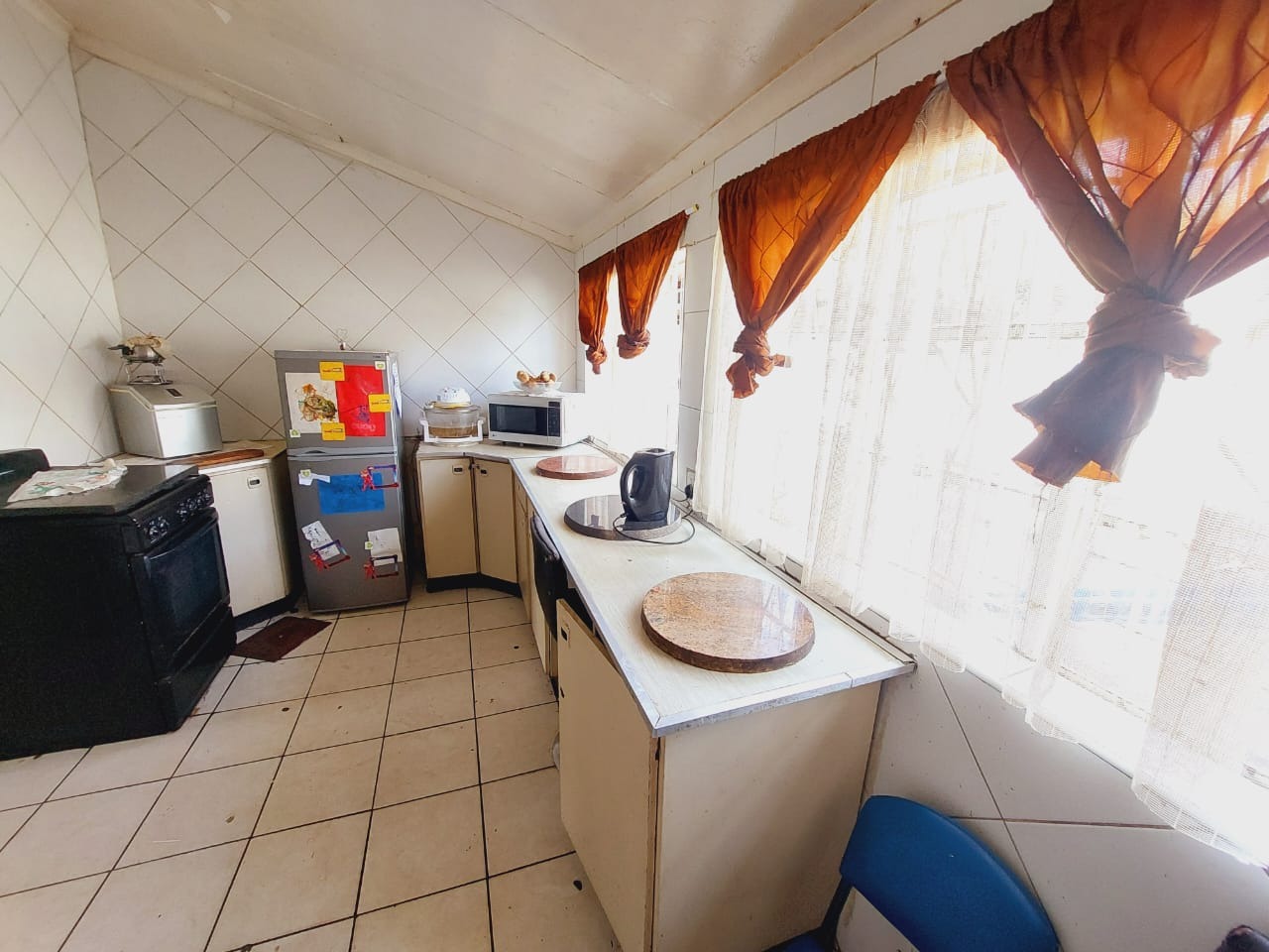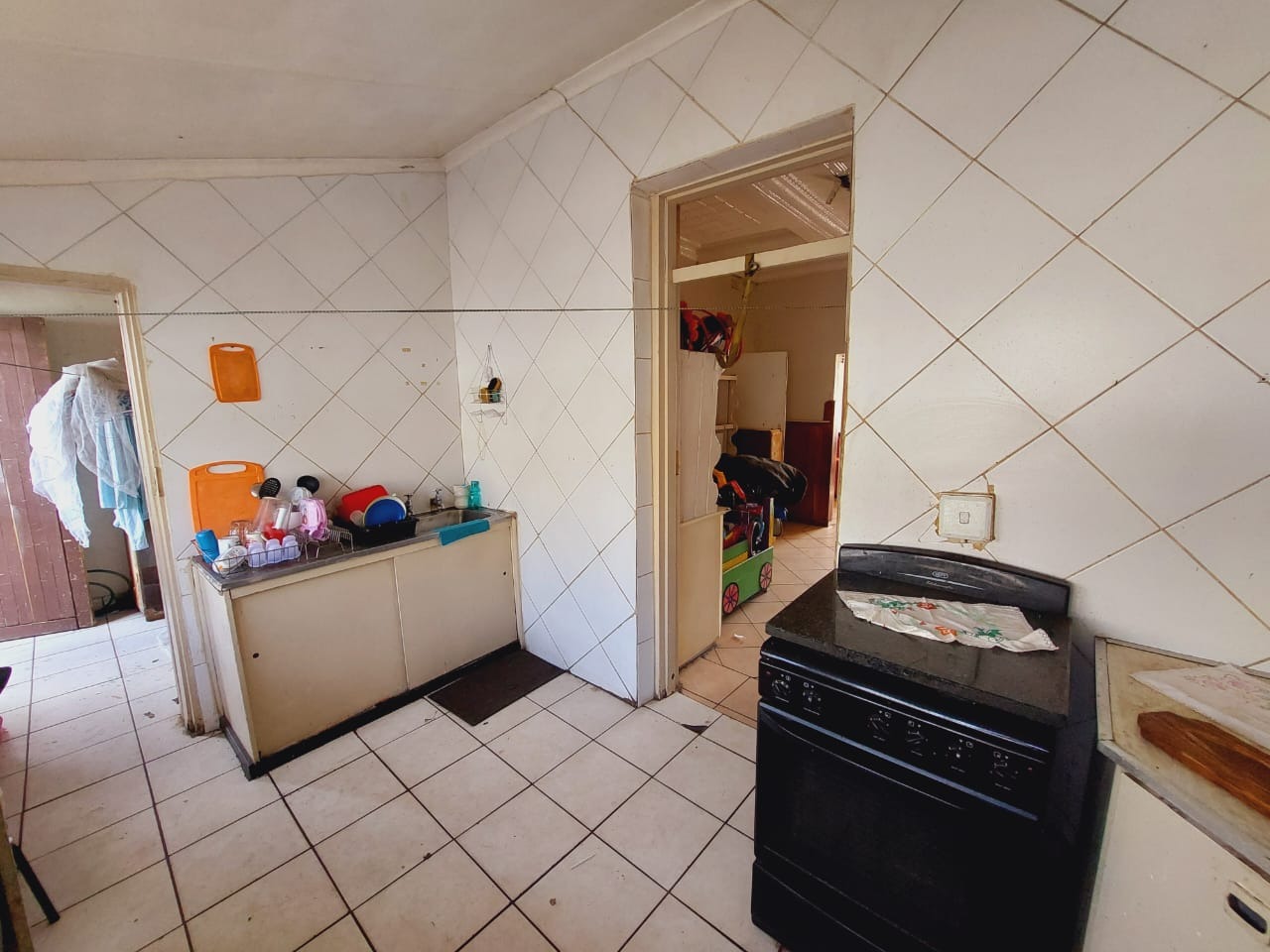 This fully tiled home offers three well-sized bedrooms, one bathroom, a single garage, a functional kitchen, a spacious lounge, and a separate dining room. Perfect for families or first-time buyers, the house is designed with comfort and practicality in mind. The open lounge provides a warm and welcoming space that flows into the dining area, making it ideal for both daily living and entertaining. The kitchen is neat and efficient, offering ample cupboard and counter space for all your cooking needs. All three bedrooms are bright and comfortable, offering plenty of natural light and privacy. The bathroom is centrally located, featuring all the essential fittings in a clean and tidy layout. With fully tiled floors throughout, the home is easy to maintain and adds a touch of modern elegance to each room. The single garage provides secure parking or additional storage space. This is a well-kept, move-in-ready home that combines convenience with low-maintenance living.