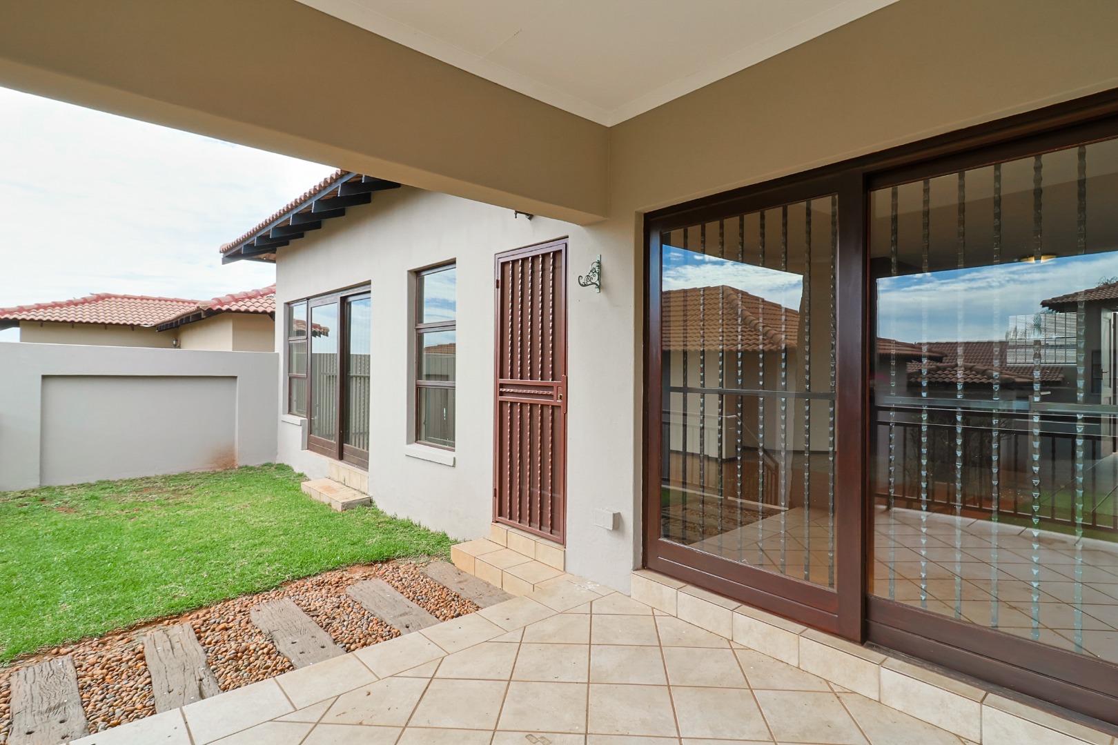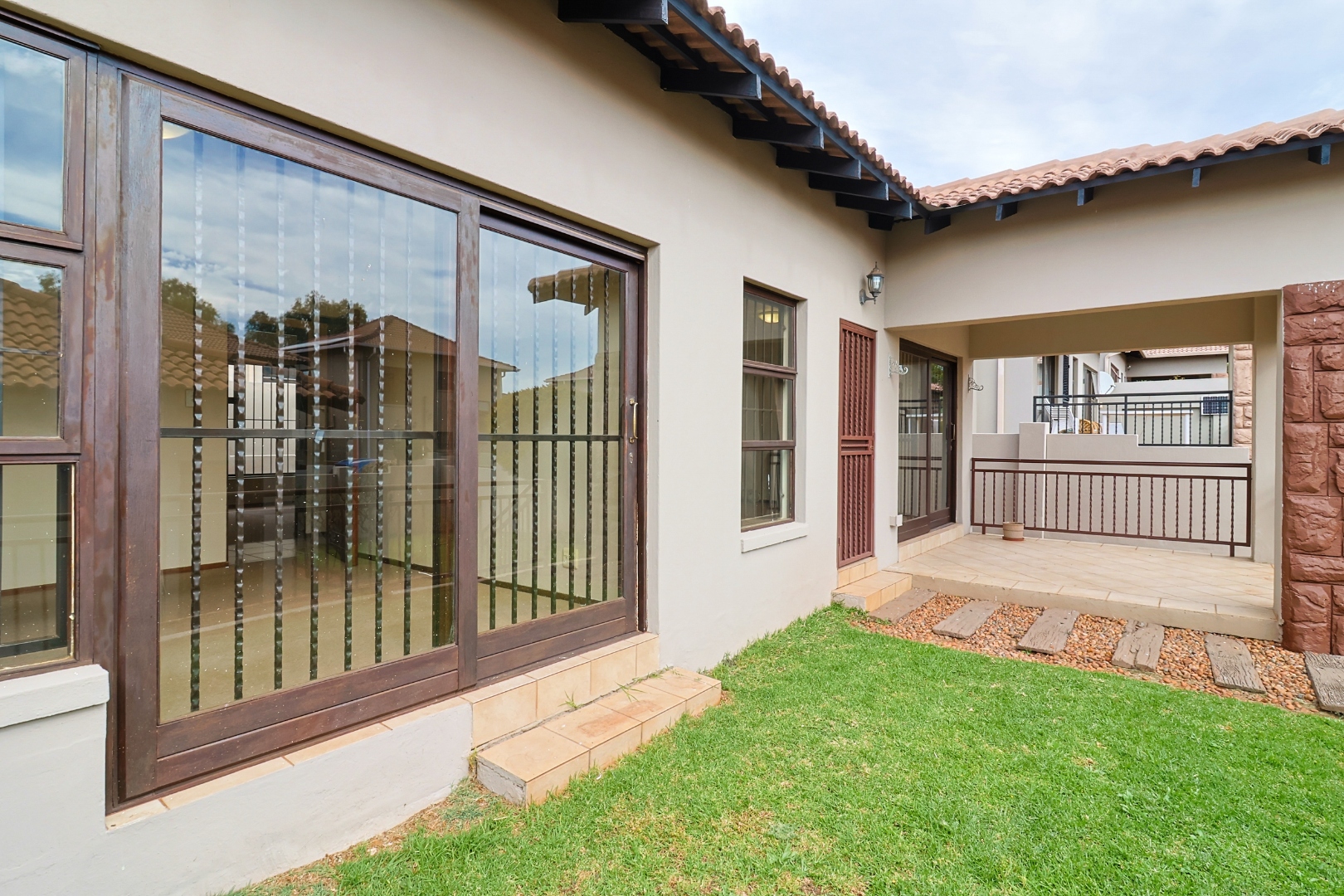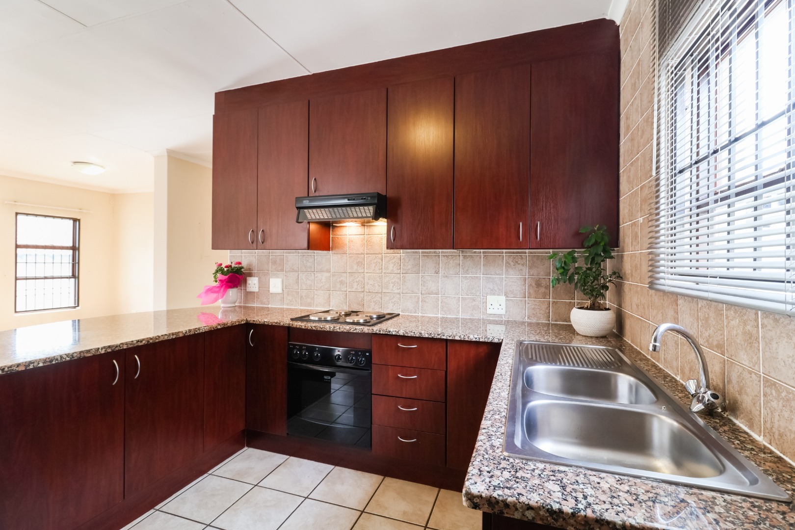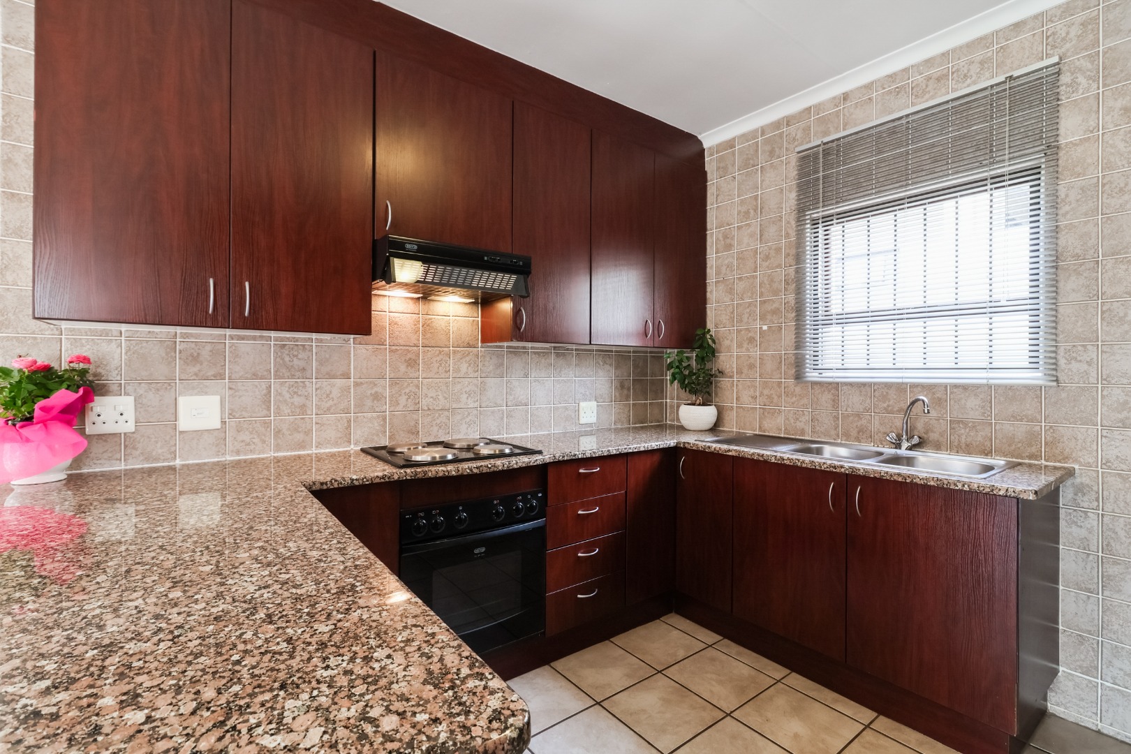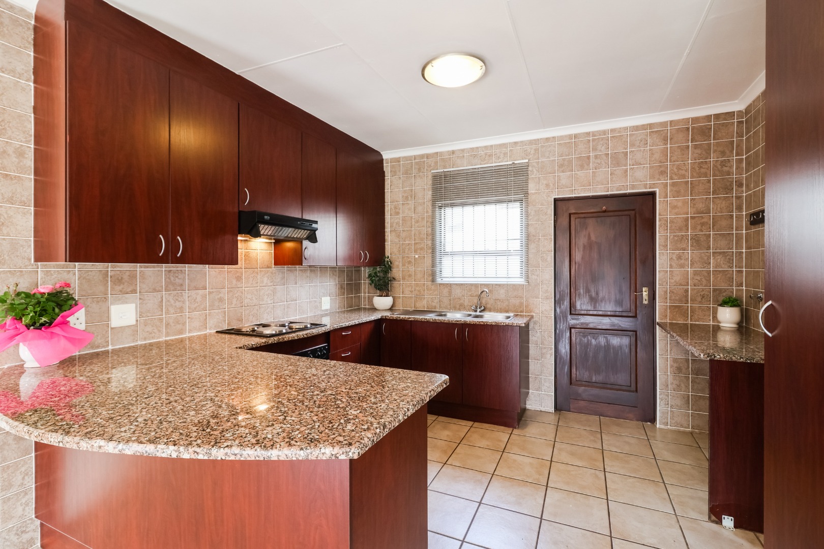 The unit features an open-plan kitchen, boasting granite tops and sufficient cupboards, allowing you to enjoy family time while cooking up a storm or watching your favorite shows. The kitchen flows into the extensive dining area and TV room, complete with a sliding door that leads to the verandah outside, perfect for nightcaps and outdoor entertaining. The two spacious bedrooms have ample cupboard space, with the main bedroom fitted with a sliding door leading to your garden outside, excellent for enjoying your morning coffee. The unit also features two bathrooms, with the main en-suite and tiled throughout.