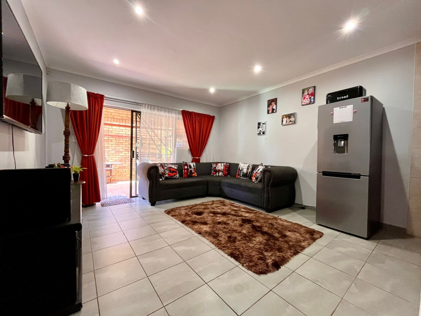 Beautiful afternoon sunlight is welcomed by the patio sliding door, creating a warm and welcoming atmosphere throughout the living areas.