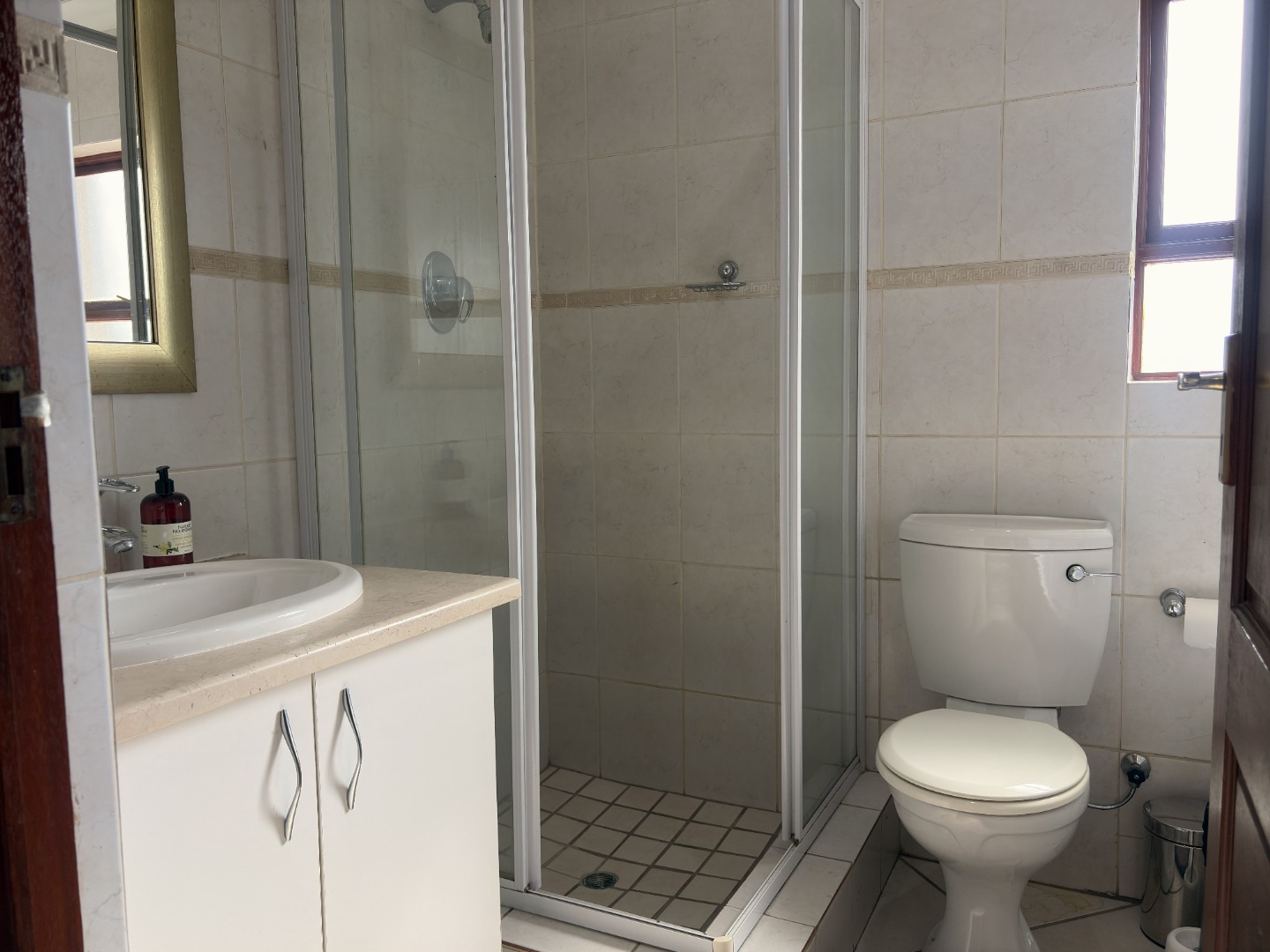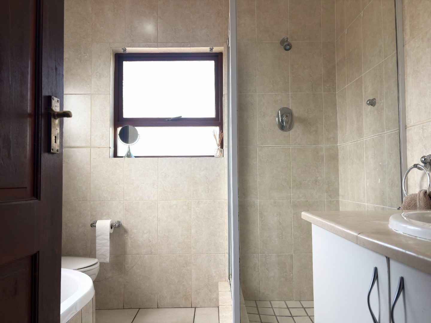 Upstairs, you’ll find three well-appointed bedrooms. Two sunny guest bedrooms share a full bathroom, while the spacious main suite offers abundant cupboard space and a full en-suite bathroom. Both the main bedroom and one guest bedroom open onto a generous balcony with lovely views, ideal for morning coffee or quiet sunset moments.