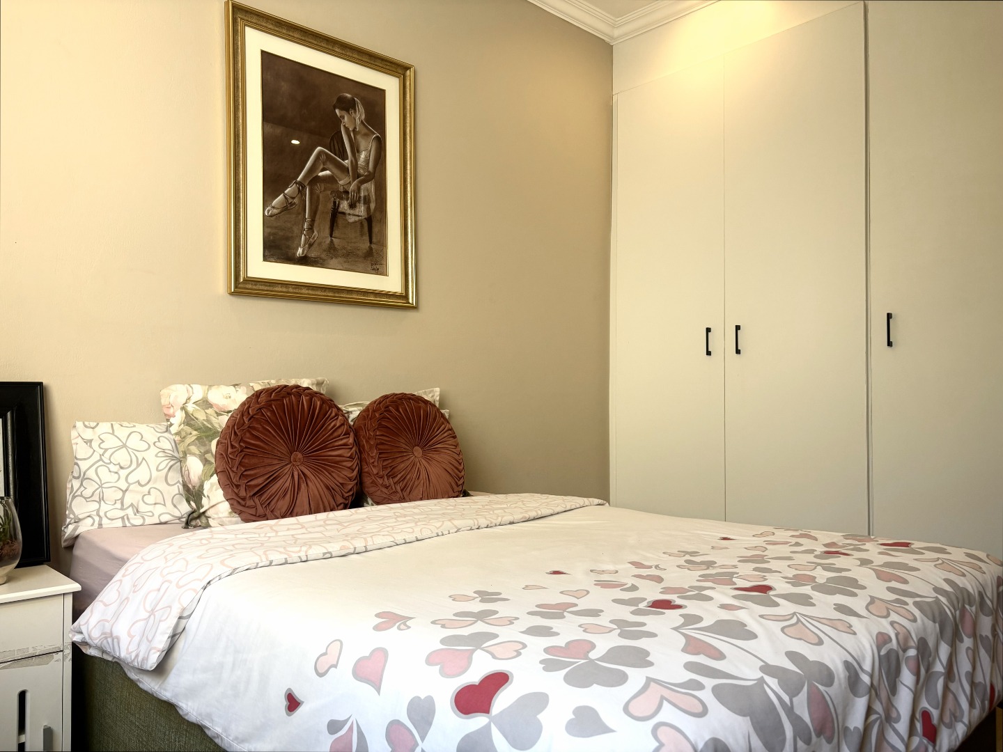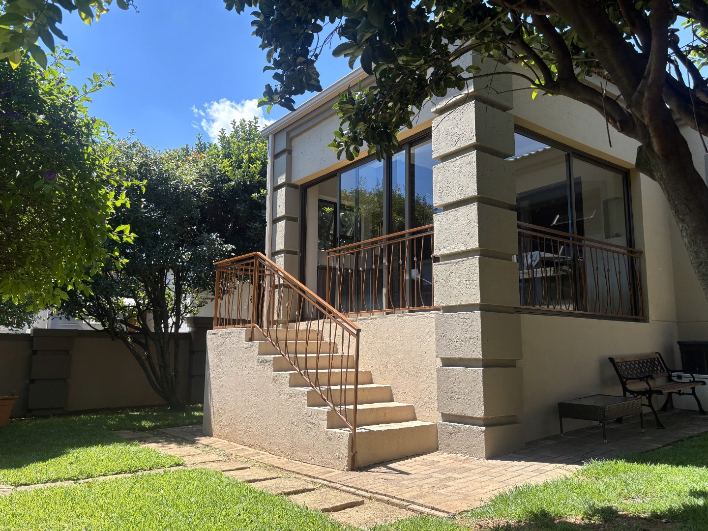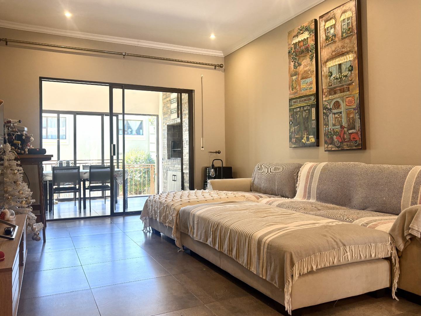 Outdoor living is effortlessly enjoyed on the cosy patio, enclosed with sliding doors and overlooking the lush garden. It is an ideal space for relaxed entertaining and includes a built in braai. The home is finished with tasteful tiled flooring throughout and includes a double garage, offering both comfort and practicality.