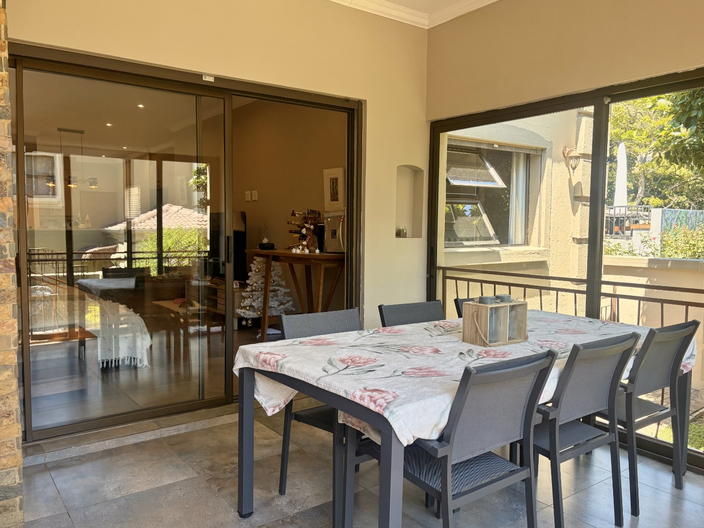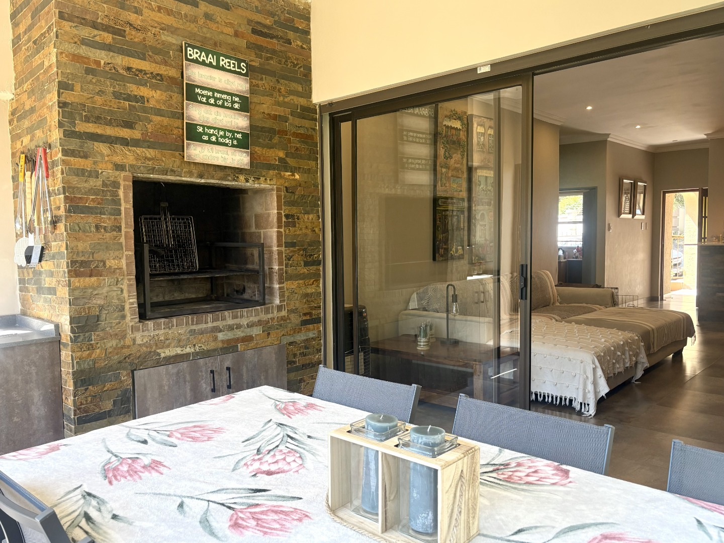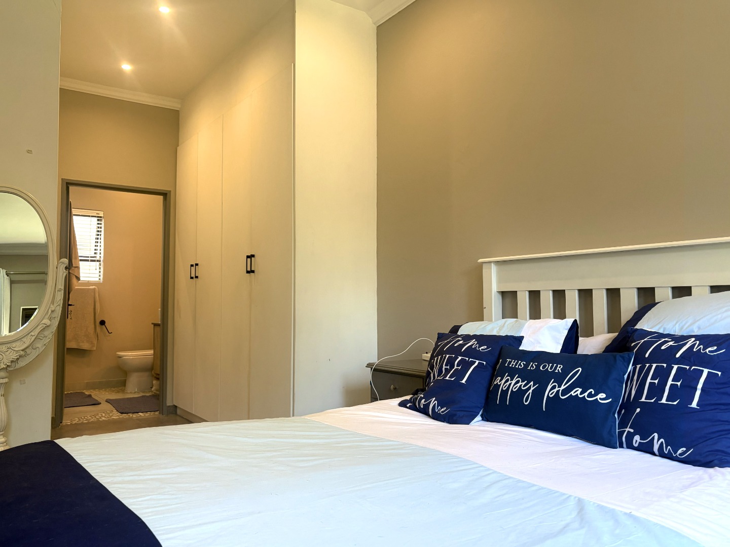 Outdoor living is effortlessly enjoyed on the cosy patio, enclosed with sliding doors and overlooking the lush garden. It is an ideal space for relaxed entertaining and includes a built in braai. The home is finished with tasteful tiled flooring throughout and includes a double garage, offering both comfort and practicality.