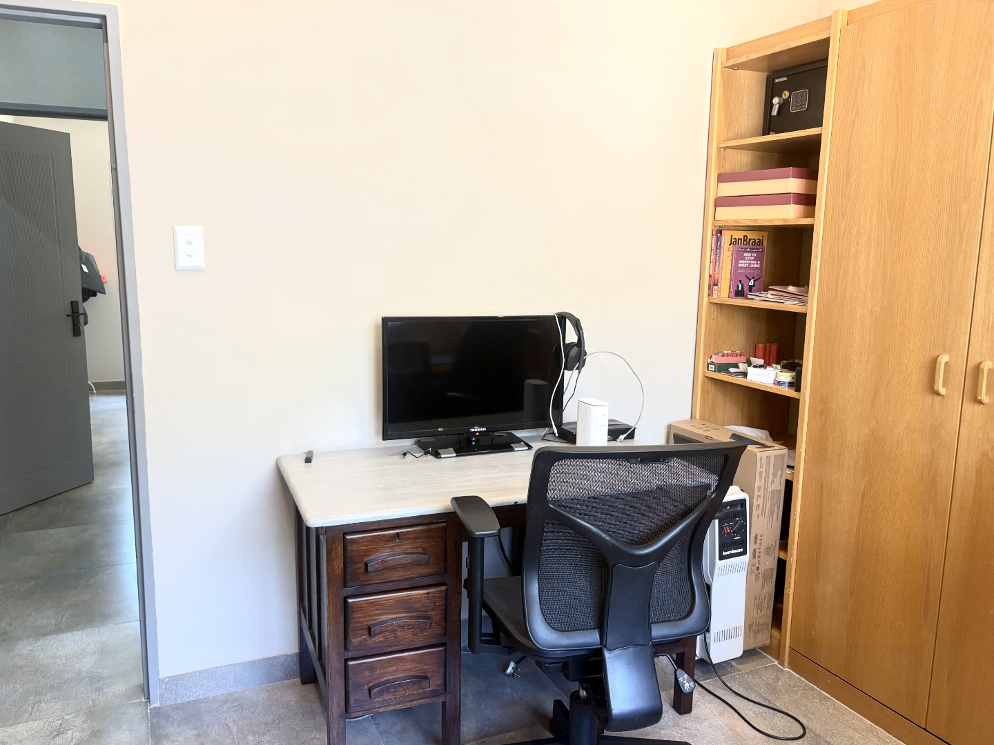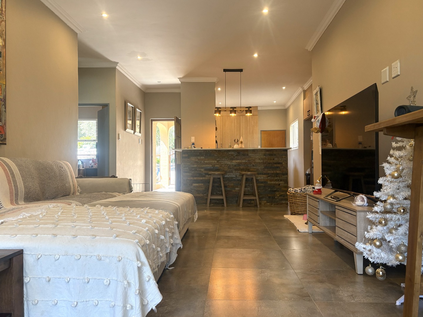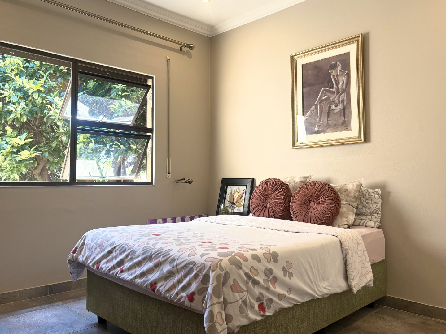 Outdoor living is effortlessly enjoyed on the cosy patio, enclosed with sliding doors and overlooking the lush garden. It is an ideal space for relaxed entertaining and includes a built in braai. The home is finished with tasteful tiled flooring throughout and includes a double garage, offering both comfort and practicality.