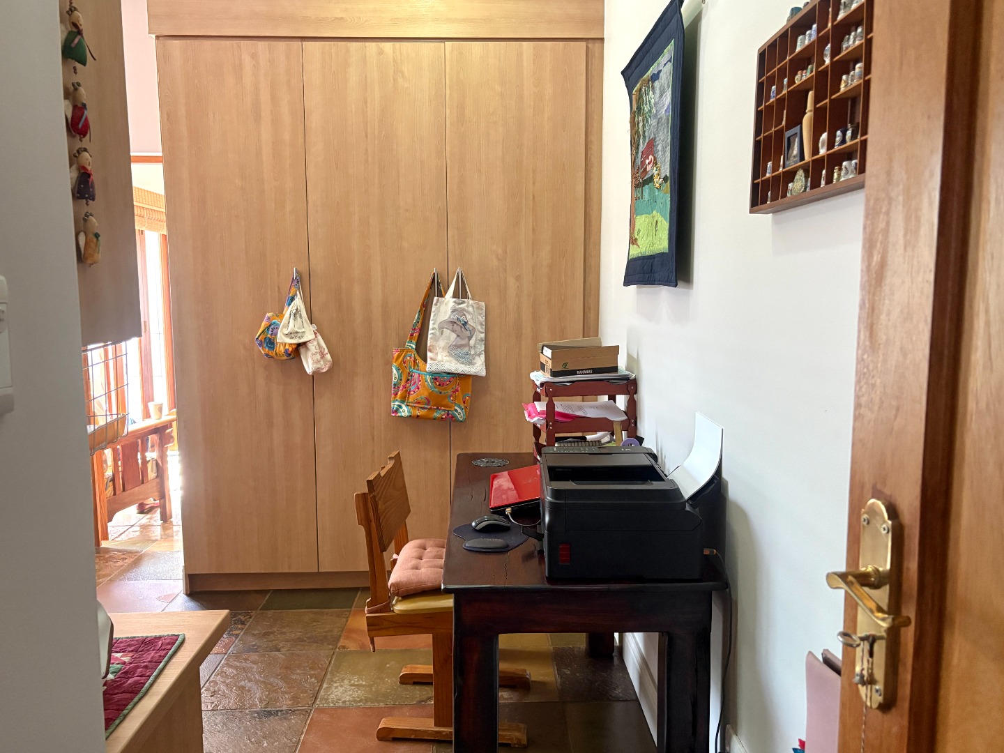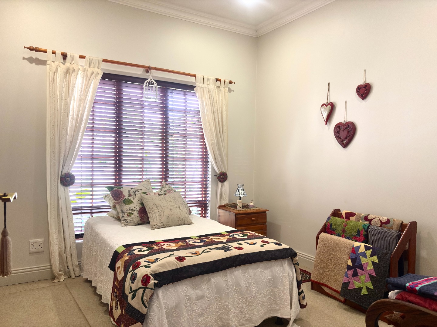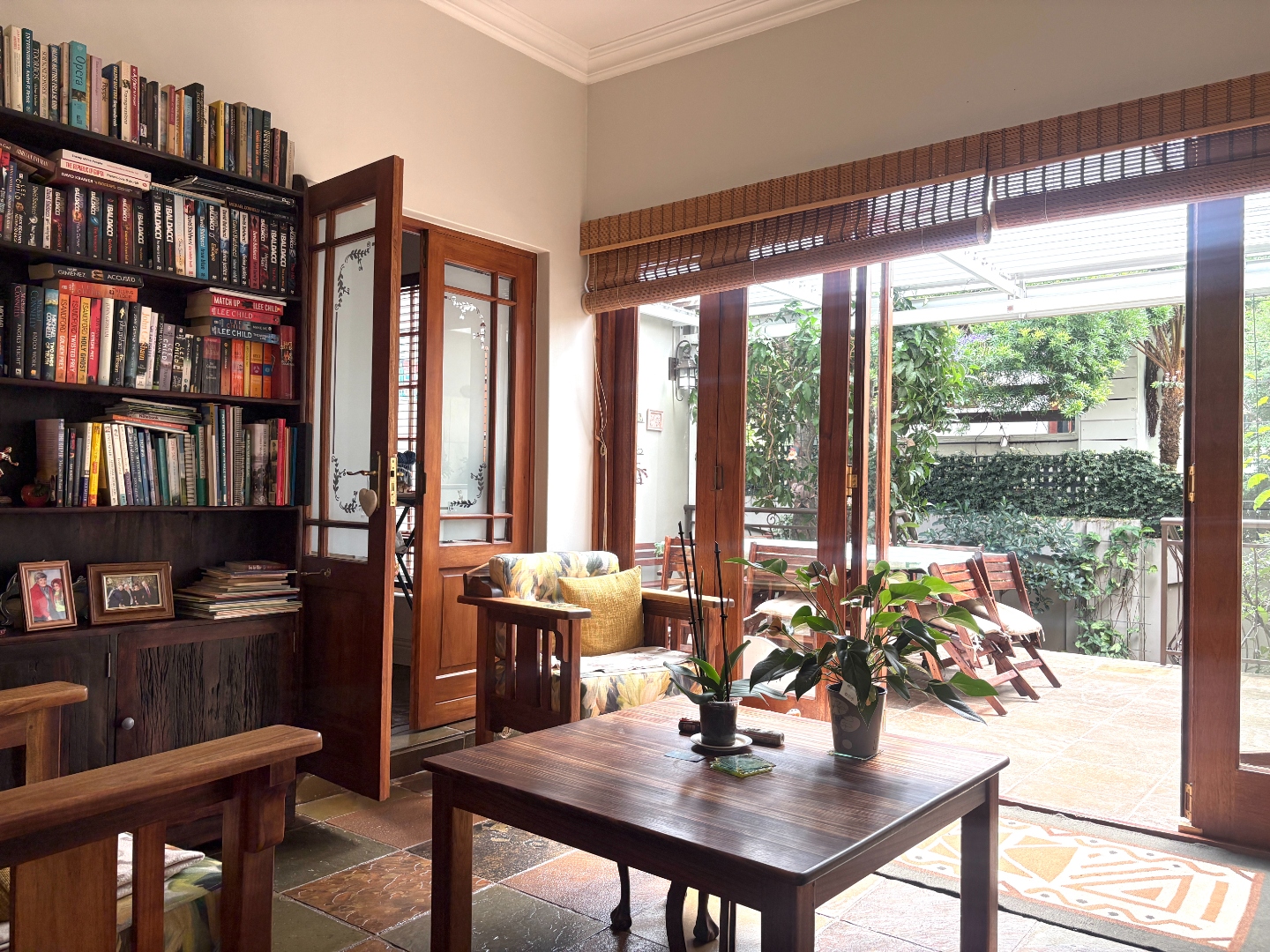 This home offers three bedrooms, or two bedrooms with a study. Two of the bedrooms are complete with built in cupboards, and share a near-by bathroom fitted with a shower, basin and toilet. The spacious main bedroom is a private retreat, complete with ample cupboard space, a ceiling fan, direct access to the patio, and an en suite bathroom with a bath, basin and toilet.