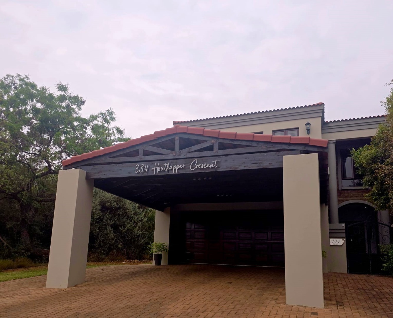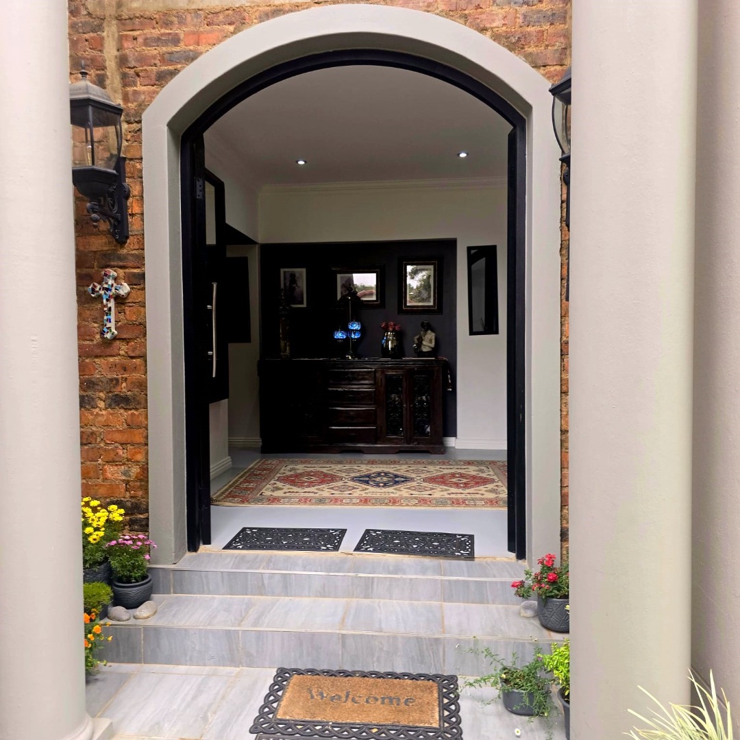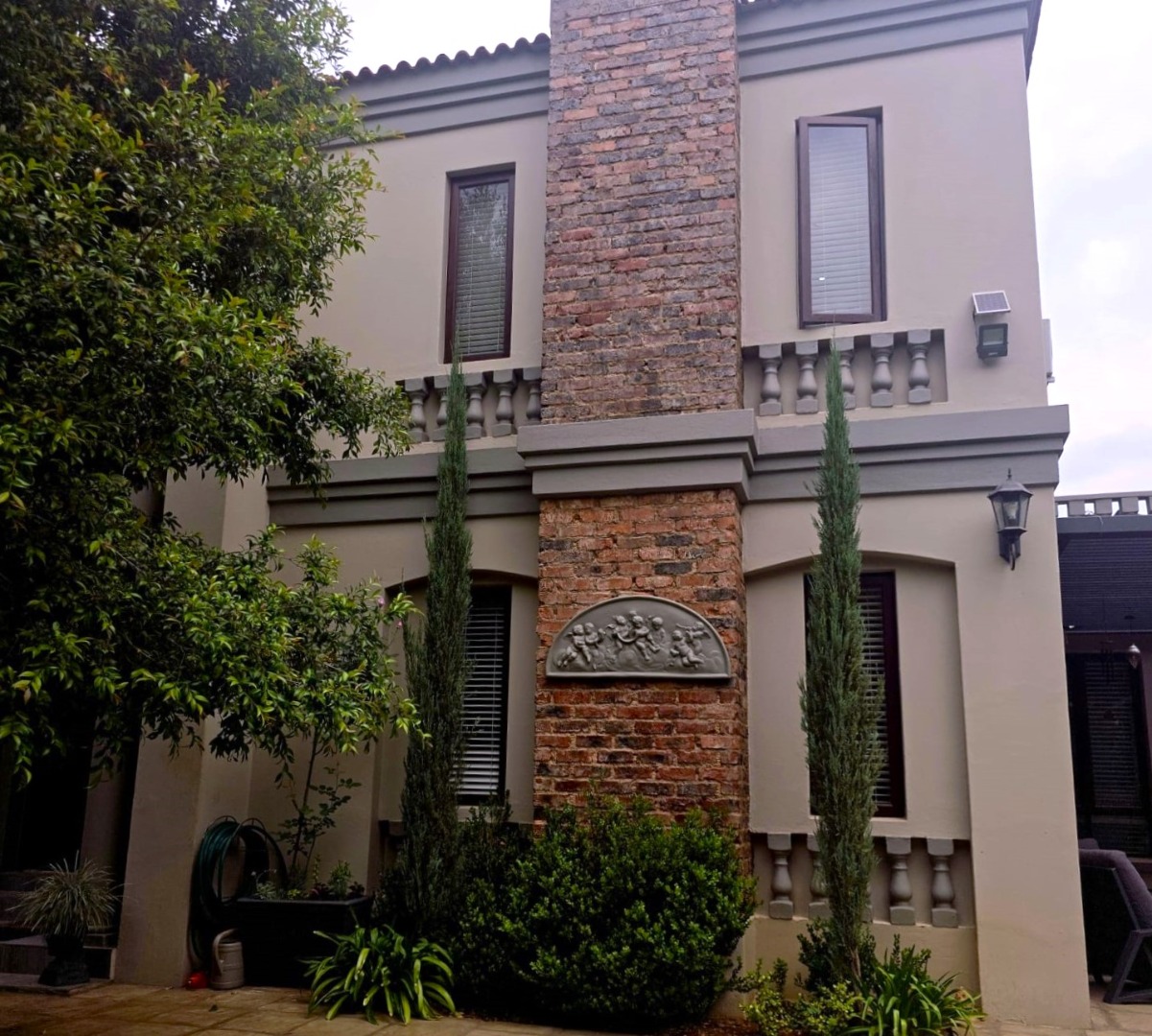 Located in the prestigious Featherbrooke Estate, this impressive 500 sqm home, set on an 864 sqm erf, immediately captivates with its grand arched entrance, prominent columns, and distinctive exposed brickwork, offering superb kerb appeal. The property's double storey architectural design, complemented by lush, mature landscaping and a secure wrought iron gate, creates a welcoming and private ambiance.