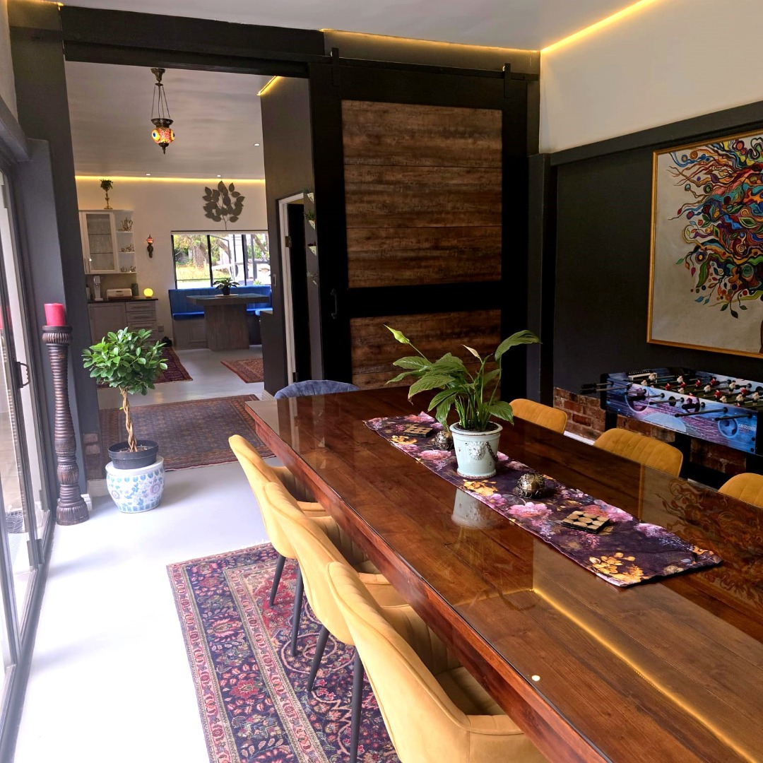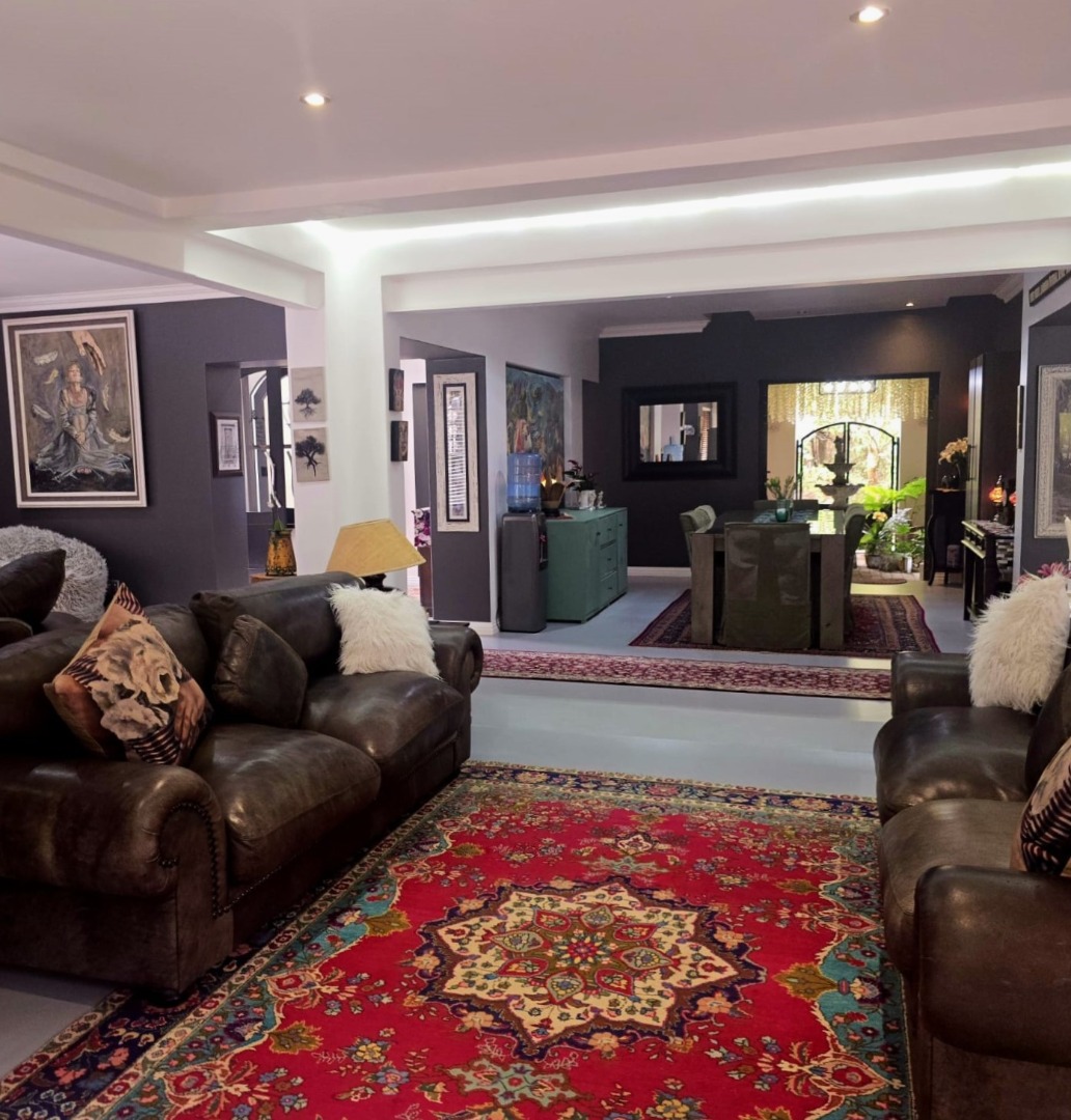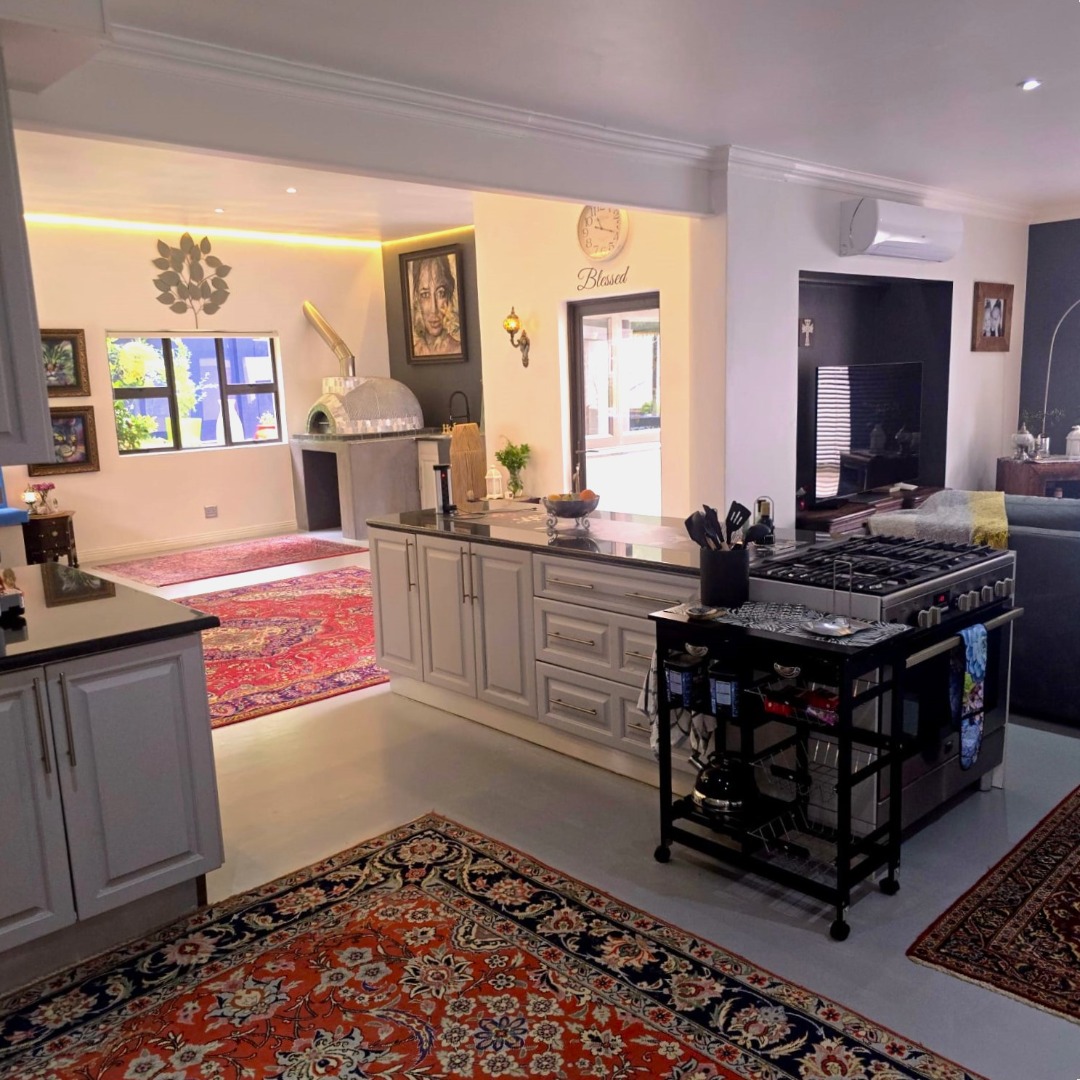 Step inside to an expansive open-plan layout designed for sophisticated living and entertaining. The residence boasts two open sitting lounges, a TV Room, a dedicated dining area, and two guest bathrooms on the ground floor providing ample space and convenience for family and guests. The well-appointed kitchen features light cabinetry, a centre island, and a gas stove, seamlessly flowing into a vibrant breakfast nook. A standout feature is the unique built-in pizza oven, perfect for culinary enthusiasts and social gatherings. The stunning mosaic lights, high ceilings, and abundant natural light from large windows enhance the home's unique character.