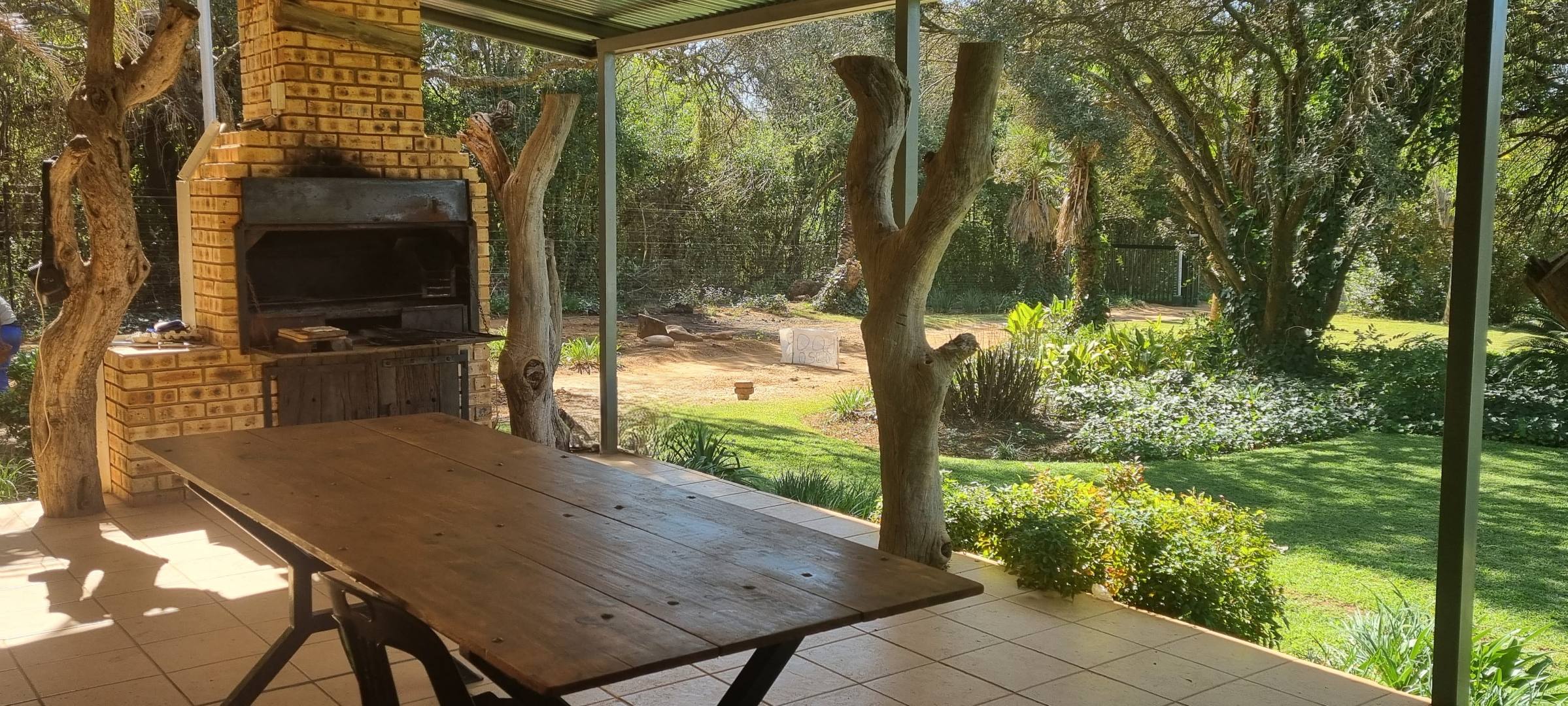 The spacious 3-bedroom farmhouse offers comfort and character, with a master suite featuring an en-suite bathroom and built-in cupboards. The open-plan lounge and dining area flow seamlessly to a covered terrace with a built-in braai — ideal for entertaining. The kitchen is well-equipped with abundant cupboard space, a laundry, and a scullery. The landscaped garden includes a cozy fire-pit for winter nights and a pool ready to be restored for summer enjoyment.