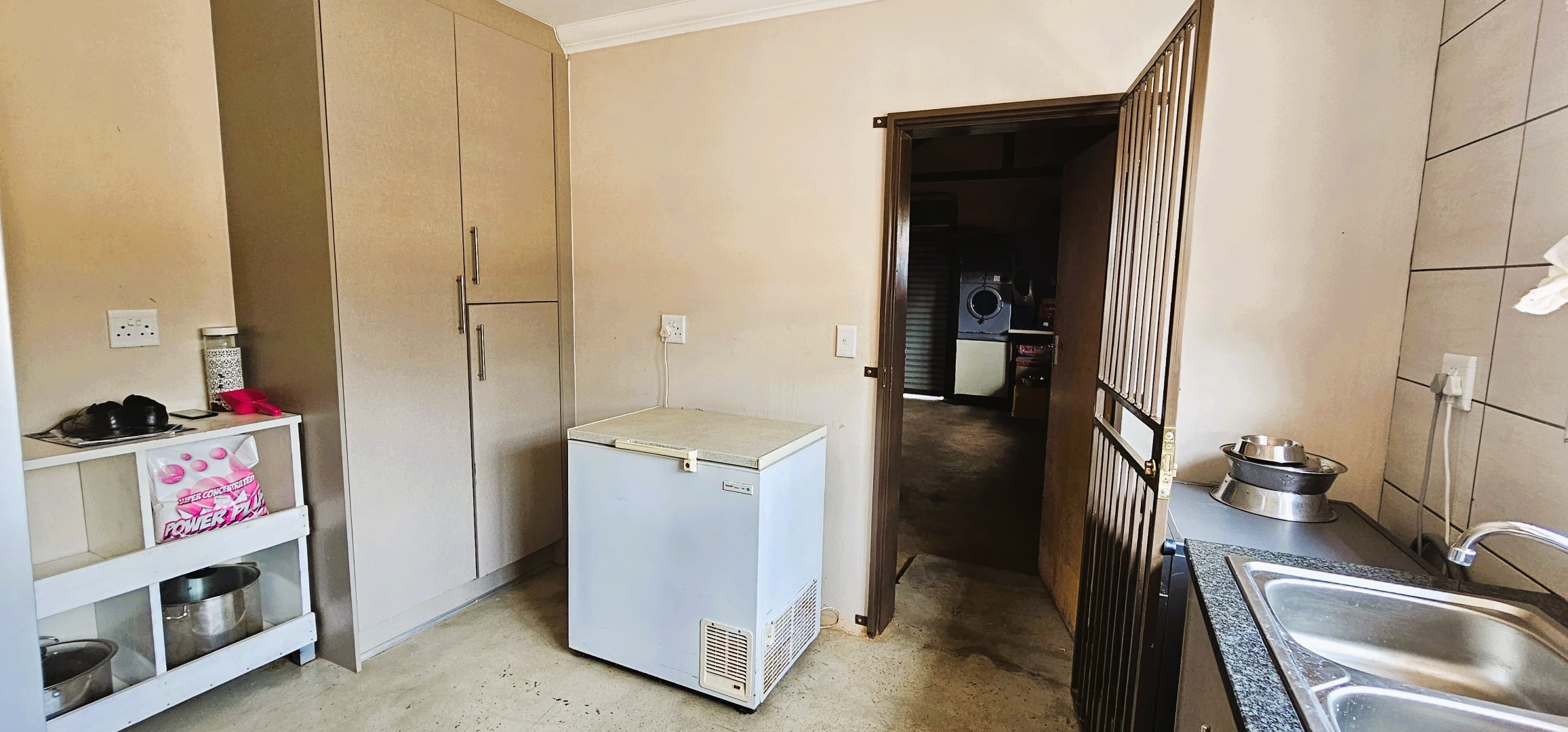 Multiple storerooms, a bachelor’s cottage, two staff quarters, secure cattle fencing, and electric fencing around both homes provide safety and functionality.