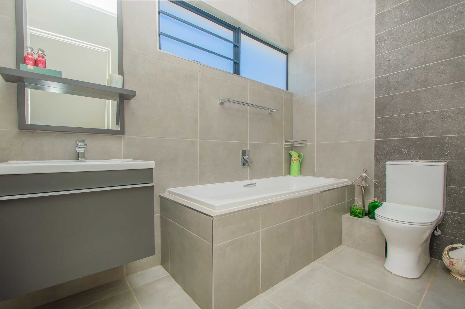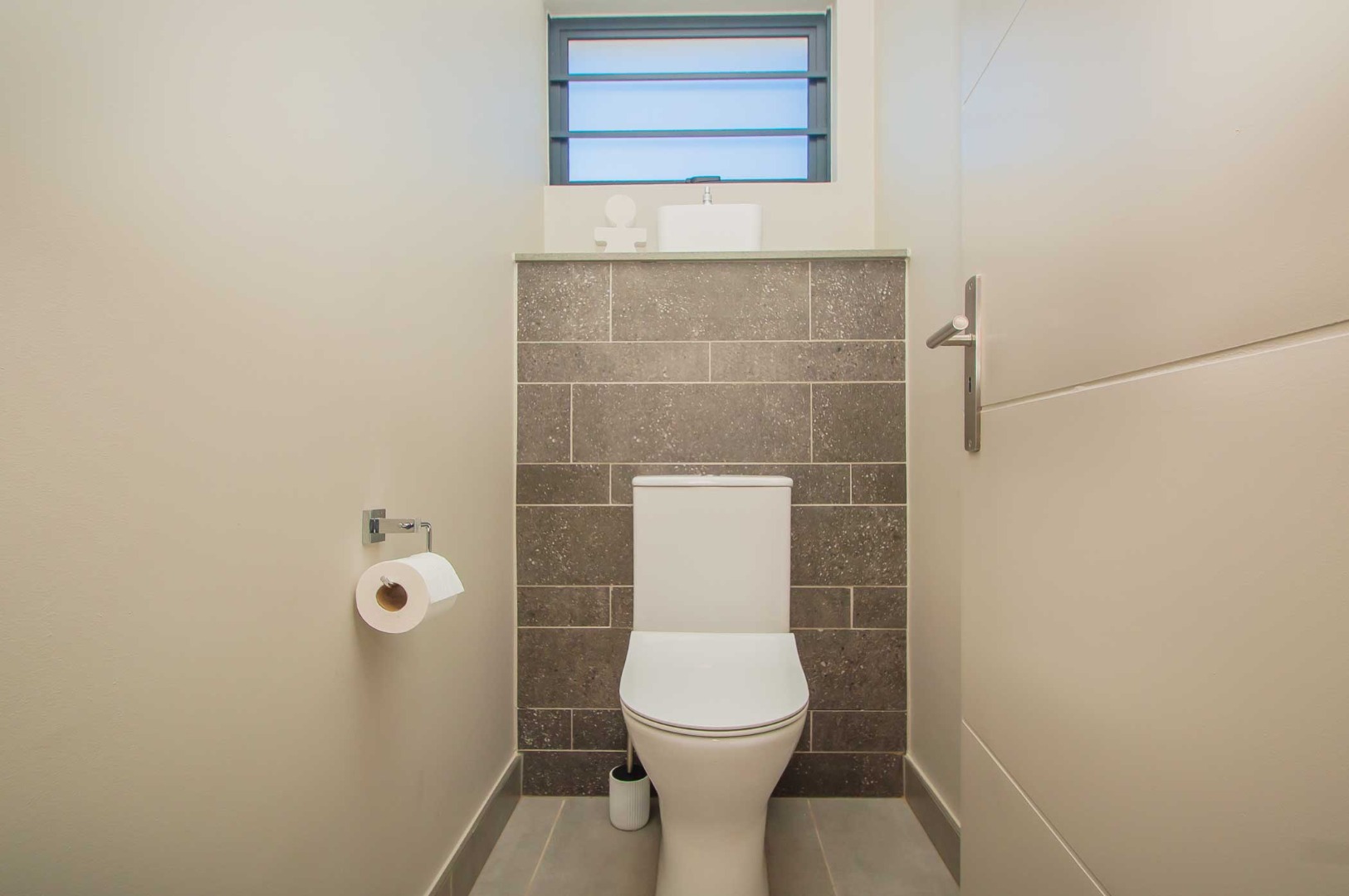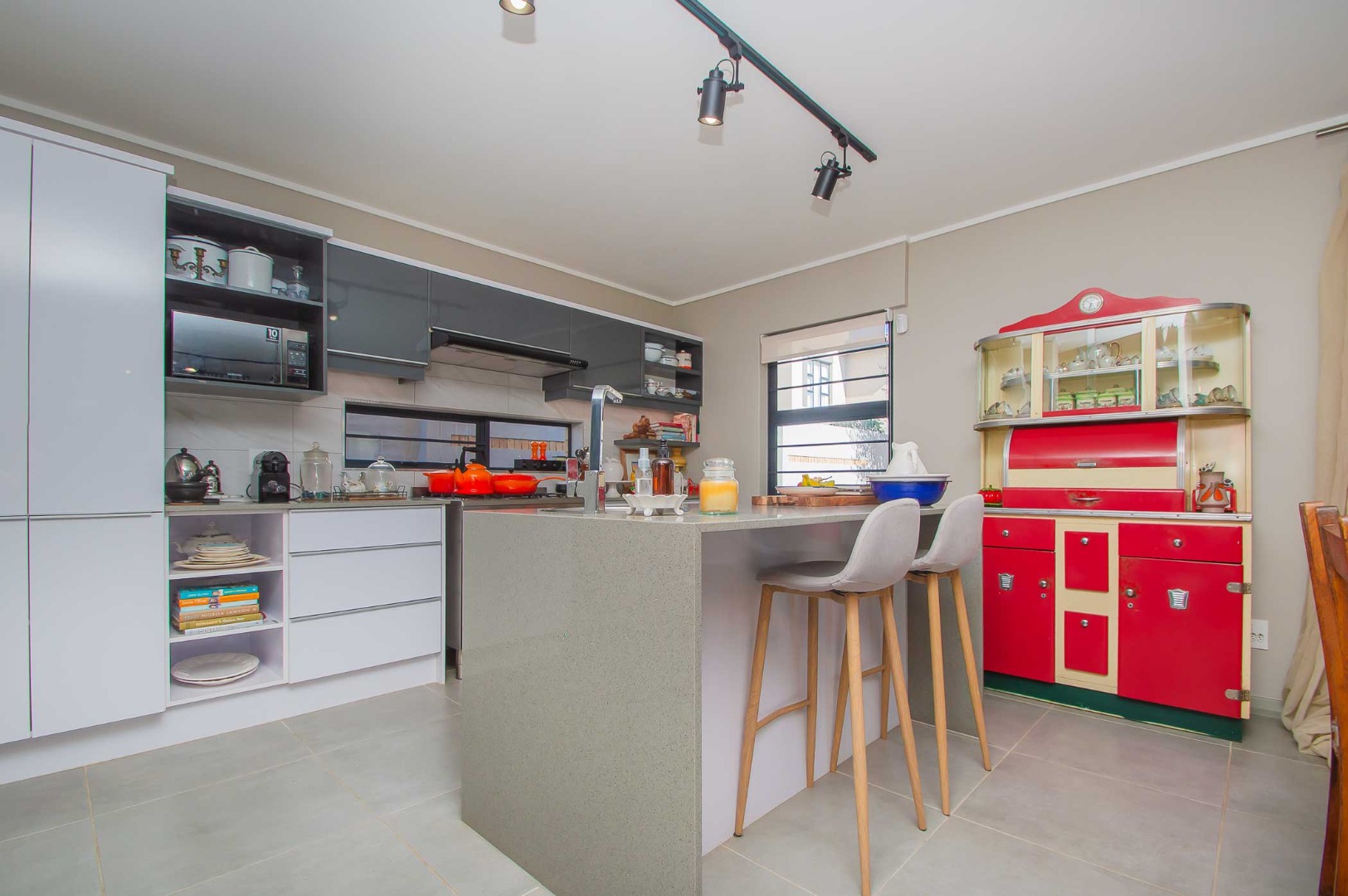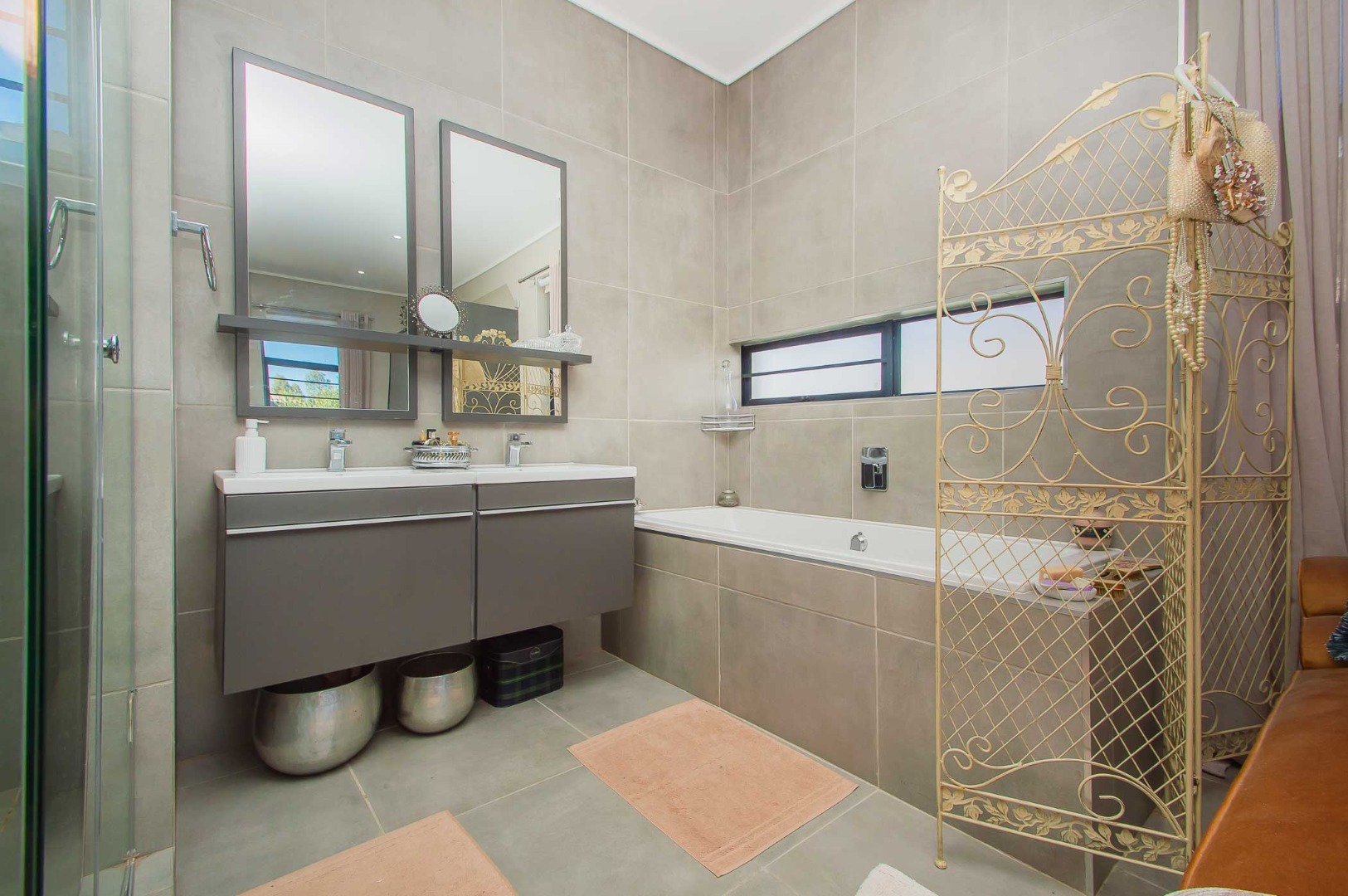 The spacious main bedroom boasts an open-plan en-suite bathroom, creating a luxurious and airy feel. Stacking doors open out onto a covered patio with a built-in braai, overlooking a pet-friendly garden—ideal for relaxed weekends or hosting friends and family.