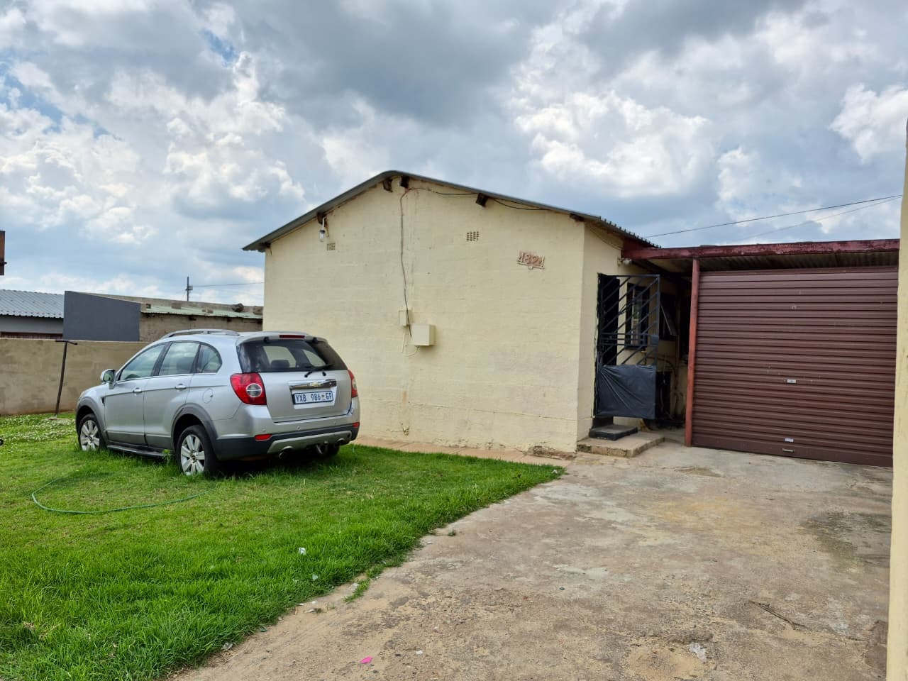 Discover this two-bedroom residential property located in the established suburb of Kagiso, Krugersdorp. Situated on a 368 sqm erf, this home offers a practical layout with potential for enhancement. The exterior features a high perimeter wall and a secure entrance gate, providing privacy and peace of mind. A single garage with a roll-up door and a paved driveway offer convenient off-street parking, complemented by a small lawn area and additional paved sections.
