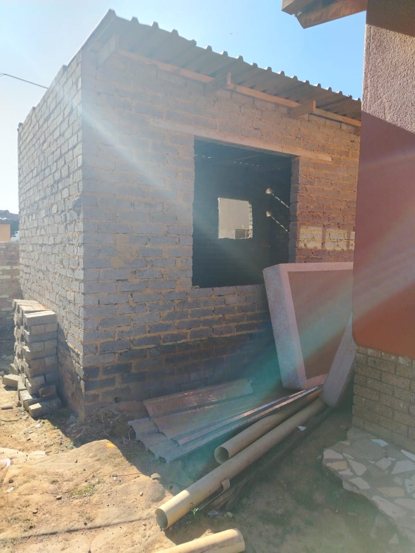 The houses features 3 beds, 1 bath, lounge and kitchen with 6 outside rooms for rental income. Perfectly situated next to the access road to Krugersdorp. Potential rental income of R20k or more when the project is fully completed.