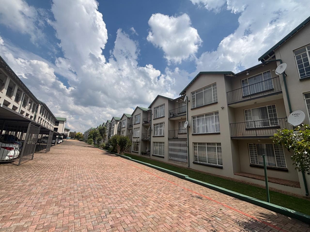 This inviting 2-bedroom apartment is situated within a well-maintained security estate in Krugersdorp Central, offering a blend of comfort and convenience. The complex features uniformly designed buildings with distinctive green pitched roofs, paved internal driveways, and well-kept green lawn areas, contributing to a pleasant living environment. Residents benefit from visible security features including a security post, access gate, and fencing, ensuring peace of mind. Spanning 79 square meters, this apartment boasts an open-plan layout encompassing a lounge, dining area, and a functional kitchen. Tiled flooring throughout ensures easy maintenance and a cohesive flow. The kitchen is equipped with ample storage in upper and lower cabinets, functional countertop space, and a breakfast bar, ideal for casual dining. Natural light filters through the windows, enhancing the living experience. The property offers two comfortable bedrooms, each featuring practical tiled floors. These spaces are versatile, accommodating various furniture arrangements. The single bathroom is fully tiled and includes a bathtub, sink, and toilet, with convenient space for a washing machine, catering to daily needs. Step out onto your private balcony, offering a dedicated outdoor space to relax. The complex provides a communal swimming pool and garden areas for leisure, along with a communal braai area perfect for social gatherings. Dedicated covered parking is available, adding to the convenience for residents. Beyond the secure access gate and perimeter fencing, the estate benefits from a security post and a sprinkler system for added safety. The property is also fibre-ready, ensuring high-speed internet connectivity for work and entertainment. Located in a suburban setting within Krugersdorp Central, this property offers a tranquil cul-de-sac environment. The area provides accessibility to local amenities and services, making it a practical choice for residents. Key Features: * 2 Bedrooms, 1 Bathroom * Open-plan living and dining area * Functional kitchen with breakfast bar * Private balcony * Communal swimming pool and garden * Communal braai area * Dedicated covered parking * Security estate with access control * Fibre-ready connectivity