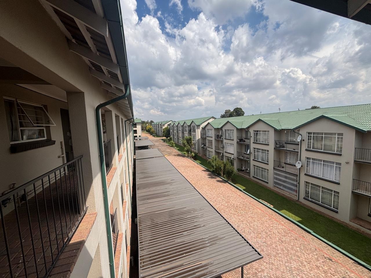 This inviting 2-bedroom apartment is situated within a well-maintained security estate in Krugersdorp Central, offering a blend of comfort and convenience. The complex features uniformly designed buildings with distinctive green pitched roofs, paved internal driveways, and well-kept green lawn areas, contributing to a pleasant living environment. Residents benefit from visible security features including a security post, access gate, and fencing, ensuring peace of mind. Spanning 79 square meters, this apartment boasts an open-plan layout encompassing a lounge, dining area, and a functional kitchen. Tiled flooring throughout ensures easy maintenance and a cohesive flow. The kitchen is equipped with ample storage in upper and lower cabinets, functional countertop space, and a breakfast bar, ideal for casual dining. Natural light filters through the windows, enhancing the living experience. The property offers two comfortable bedrooms, each featuring practical tiled floors. These spaces are versatile, accommodating various furniture arrangements. The single bathroom is fully tiled and includes a bathtub, sink, and toilet, with convenient space for a washing machine, catering to daily needs. Step out onto your private balcony, offering a dedicated outdoor space to relax. The complex provides a communal swimming pool and garden areas for leisure, along with a communal braai area perfect for social gatherings. Dedicated covered parking is available, adding to the convenience for residents. Beyond the secure access gate and perimeter fencing, the estate benefits from a security post and a sprinkler system for added safety. The property is also fibre-ready, ensuring high-speed internet connectivity for work and entertainment. Located in a suburban setting within Krugersdorp Central, this property offers a tranquil cul-de-sac environment. The area provides accessibility to local amenities and services, making it a practical choice for residents. Key Features: * 2 Bedrooms, 1 Bathroom * Open-plan living and dining area * Functional kitchen with breakfast bar * Private balcony * Communal swimming pool and garden * Communal braai area * Dedicated covered parking * Security estate with access control * Fibre-ready connectivity