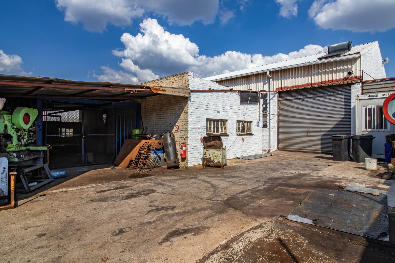 The outdoor area is fully concreted, ensuring durability and easy maintenance for heavy vehicle traffic.