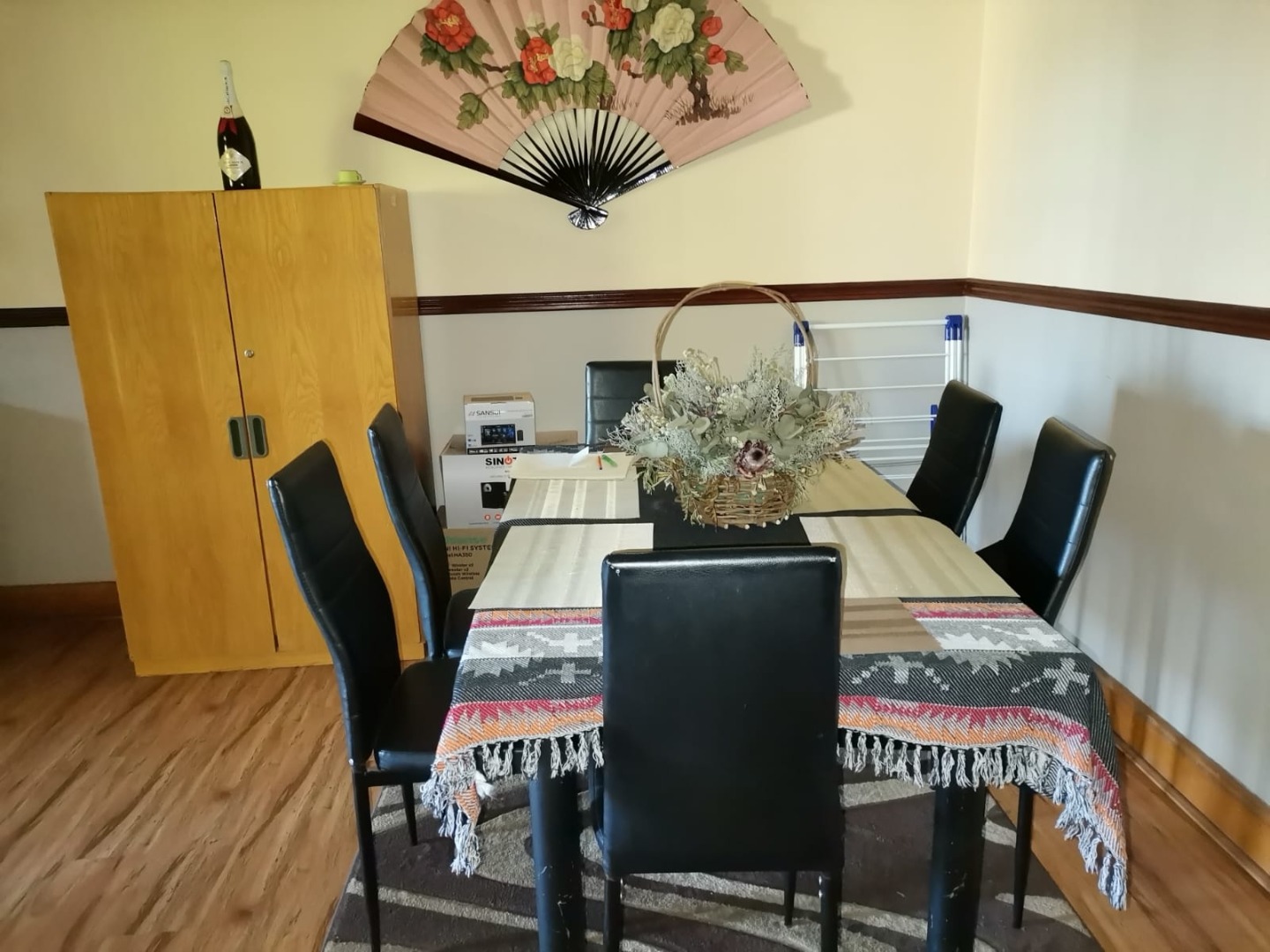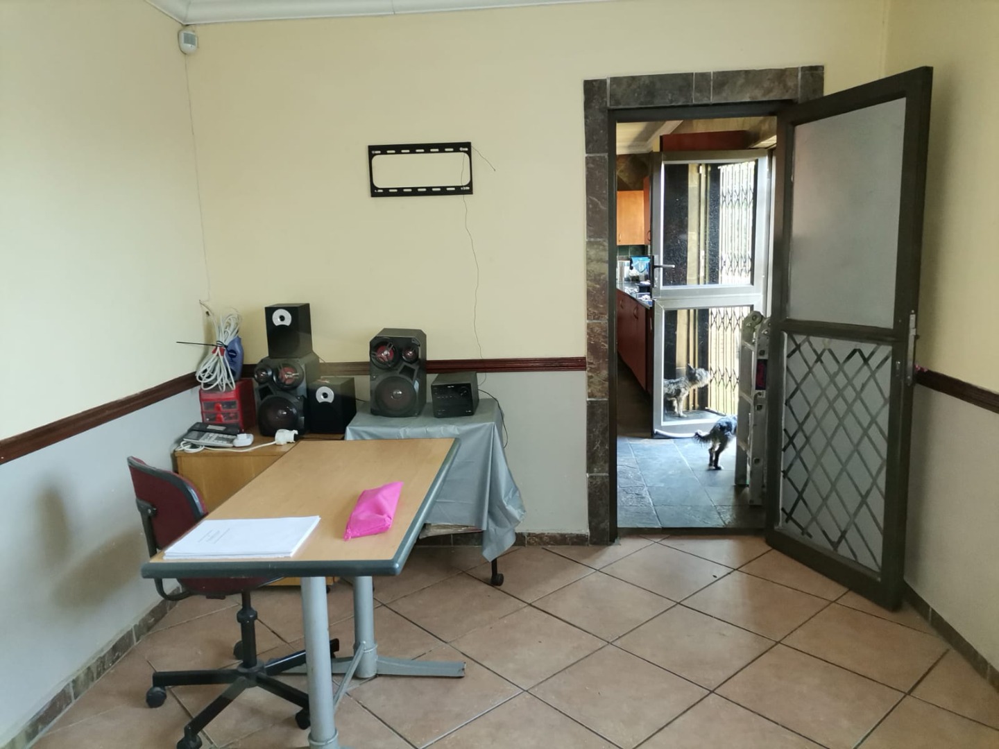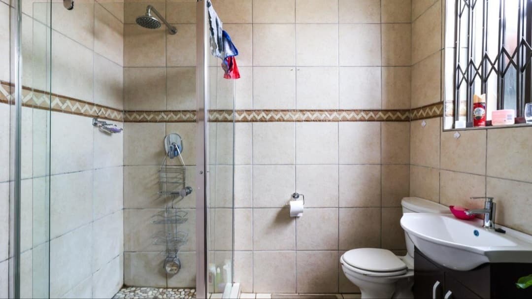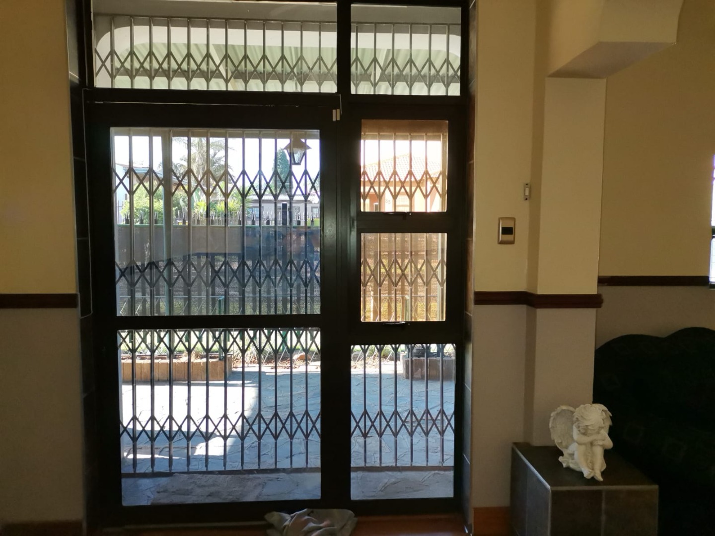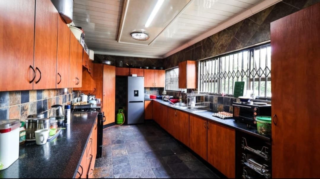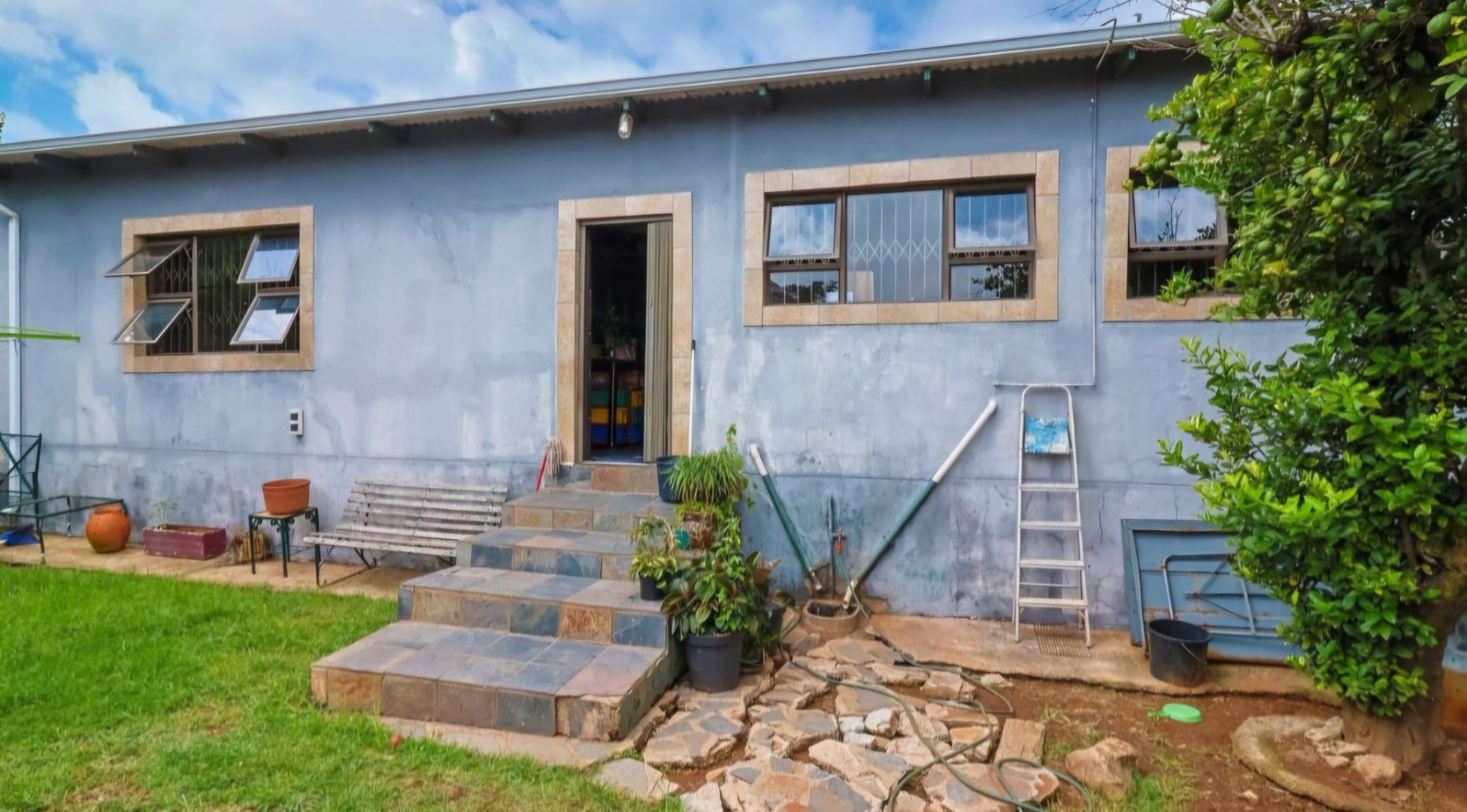 Step into comfort and style the moment you walk through the front door. You're welcomed by a spacious entrance that flows effortlessly into a bright, airy living room, where large windows flood the space with natural light. To your right, a generous hallway leads to three inviting bedrooms. Two of the bedrooms feature their own private en-suite bathrooms—one with a luxurious soaking tub, the other with a modern walk-in shower. Each bedroom offers expansive built-in closets, and a linen closet in the hallway provides even more storage. The heart of the home is the kitchen—a chef’s delight—boasting elegant stone tile flooring and ample built-in cupboards. Adjacent to it, the spacious dining room is perfect for large family gatherings. Beyond the kitchen, a versatile sunroom awaits—ideal as an extra lounge, a playroom, or a creative workspace. Outside, the lush green backyard offers a peaceful retreat, complete with a charming flatlet—perfect as a home office or rental for extra income. Enjoy unforgettable braais under the thatched lapa, designed for relaxed outdoor entertaining. A spacious four-car garage provides secure parking, and the home has been upgraded with modern window frames. For your peace of mind, the property is fully fitted with Trellidor burglar bars and gates.